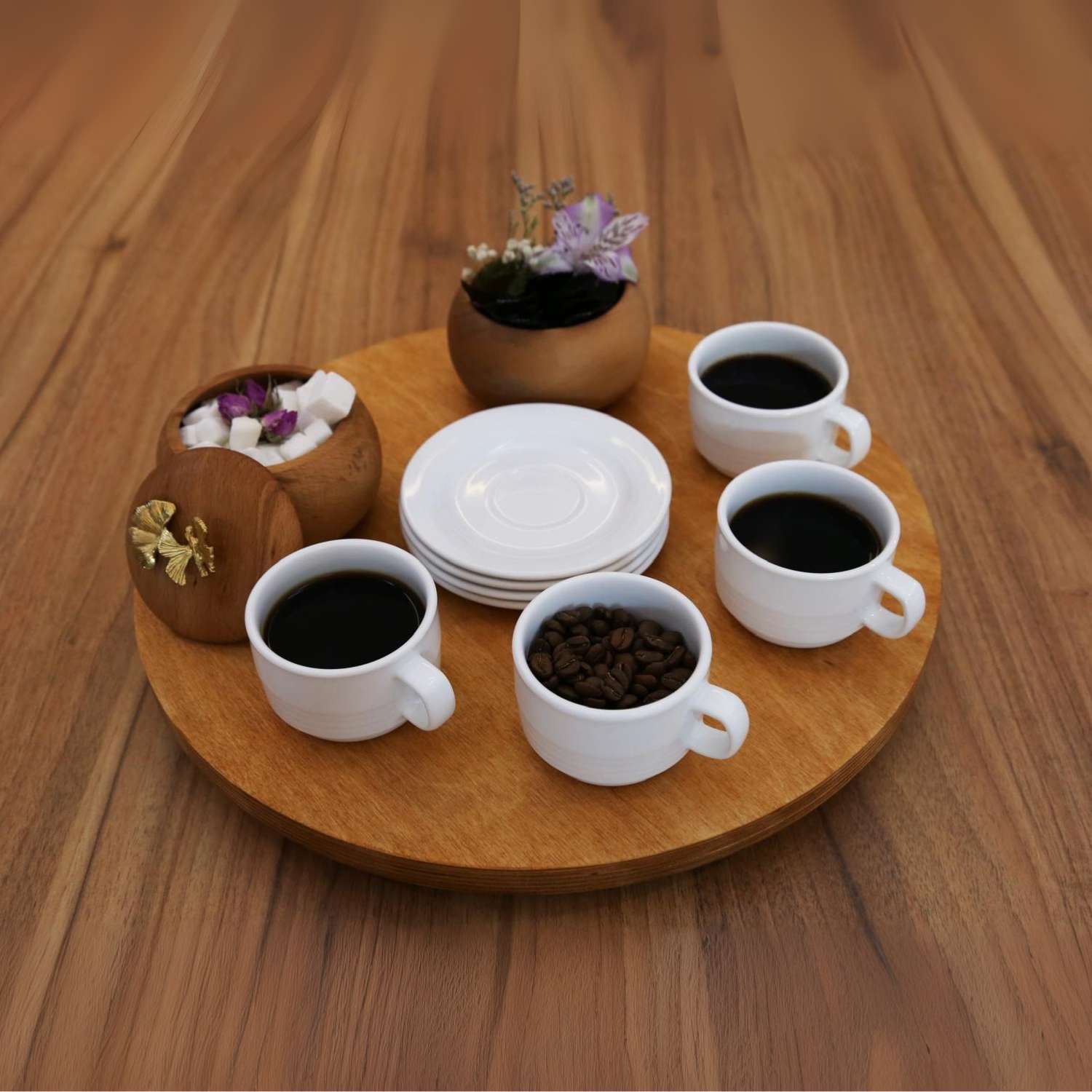 Serve in style with this four-person porcelain tea set displayed on a refined wooden tray. A perfect blend of elegance and functionality, ideal for gatherings, gifting, or everyday tea moments.