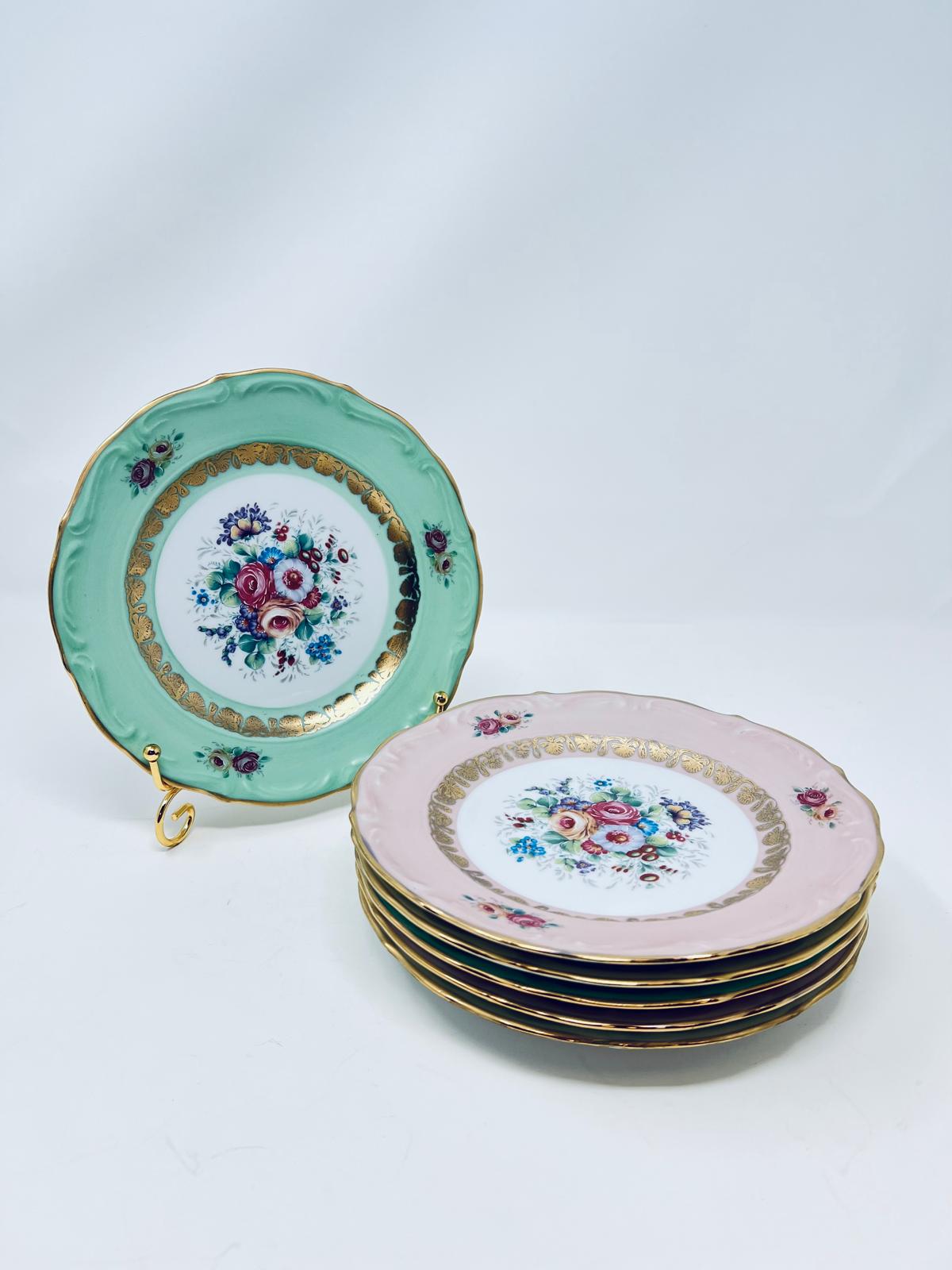 6 plates ( 2 Green, 2 Pink, 2 Cream )
