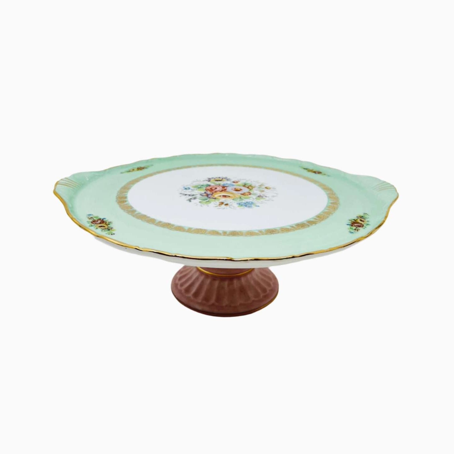 This Beautiful And Colourful  Plate on Foot, makes a lovely addition to any gathering. This piece can be used to display cakes, pastries, or can be used as a decorative item. Add candles or fruit on top for an elegant look.