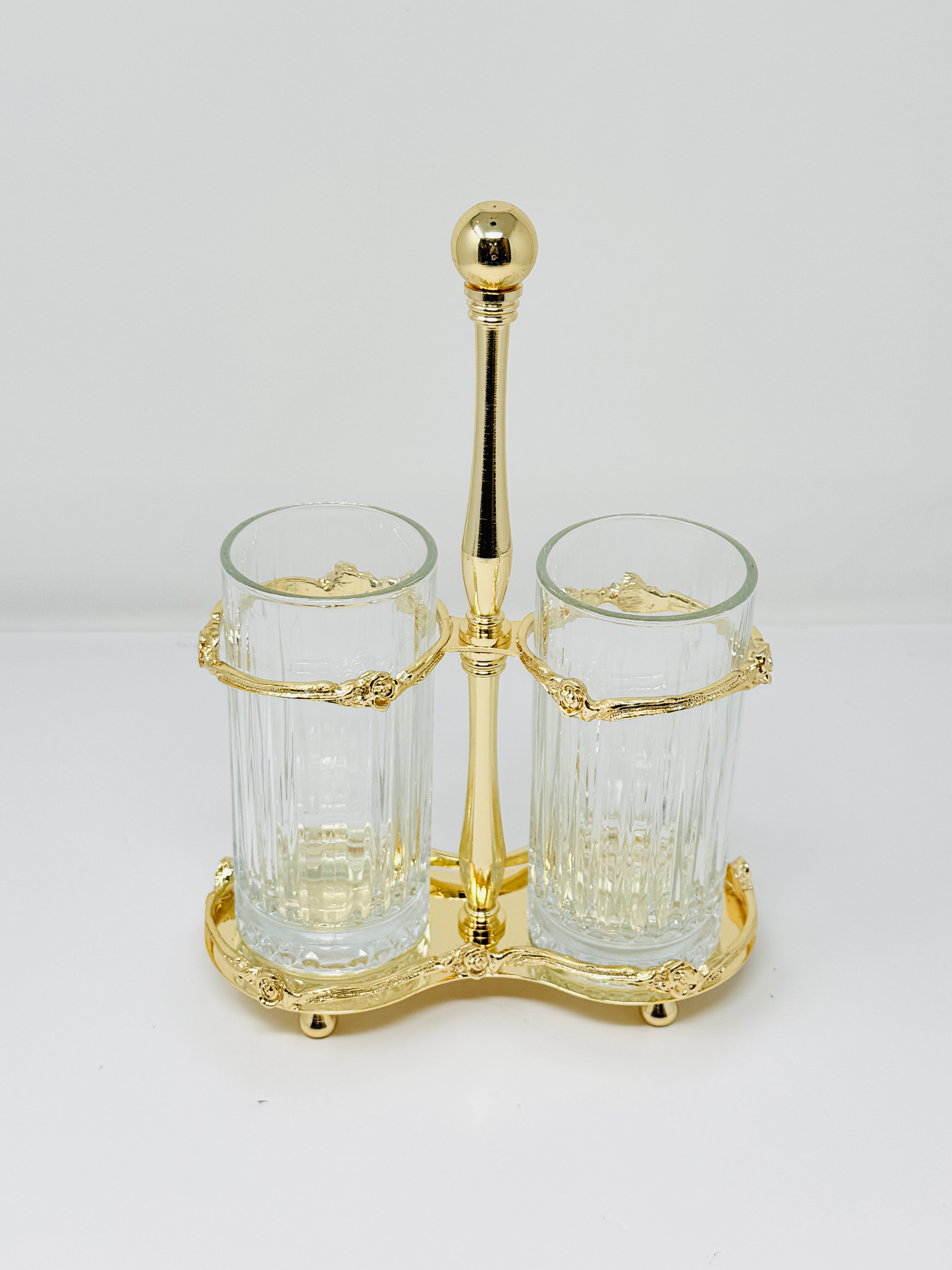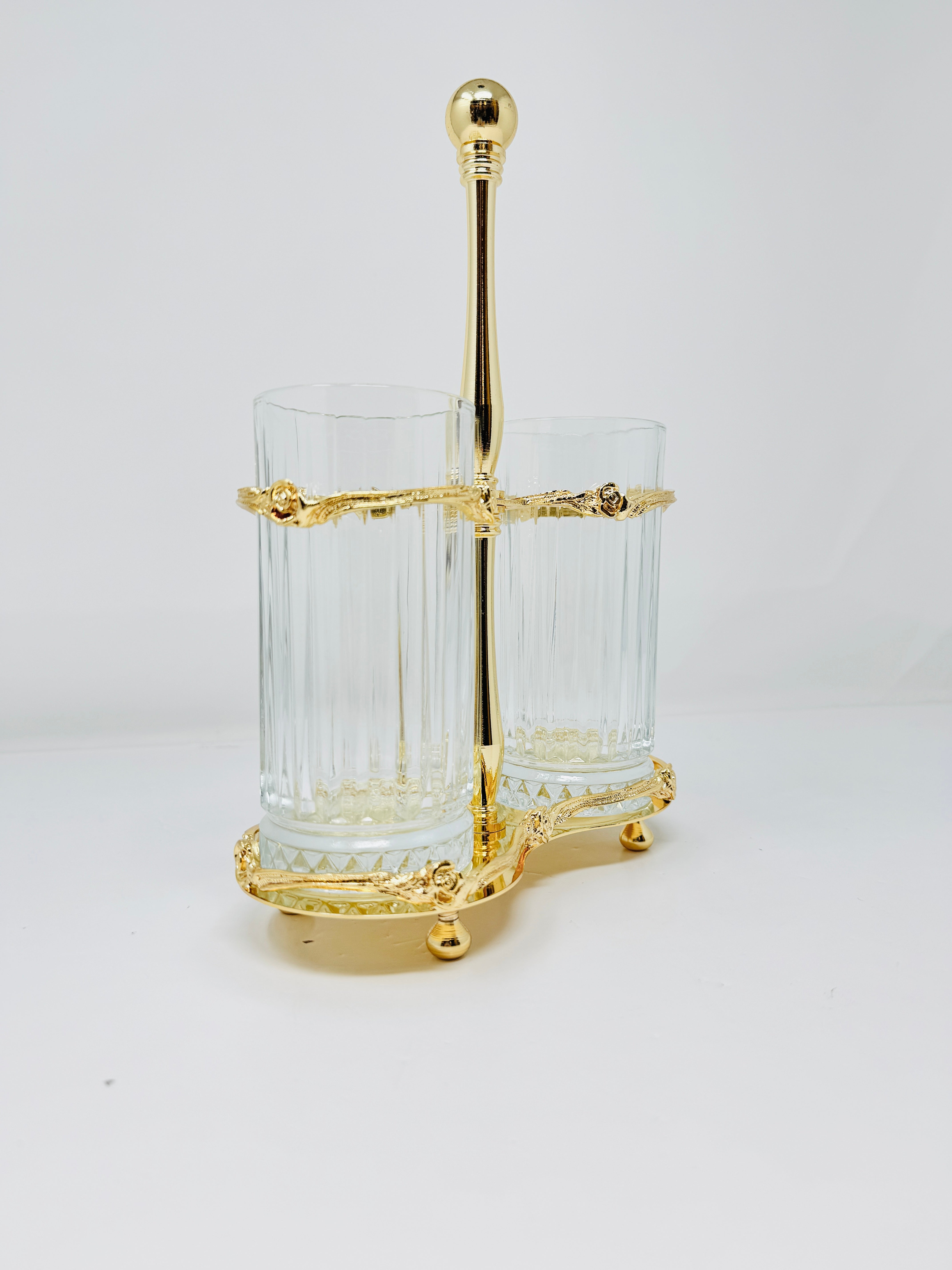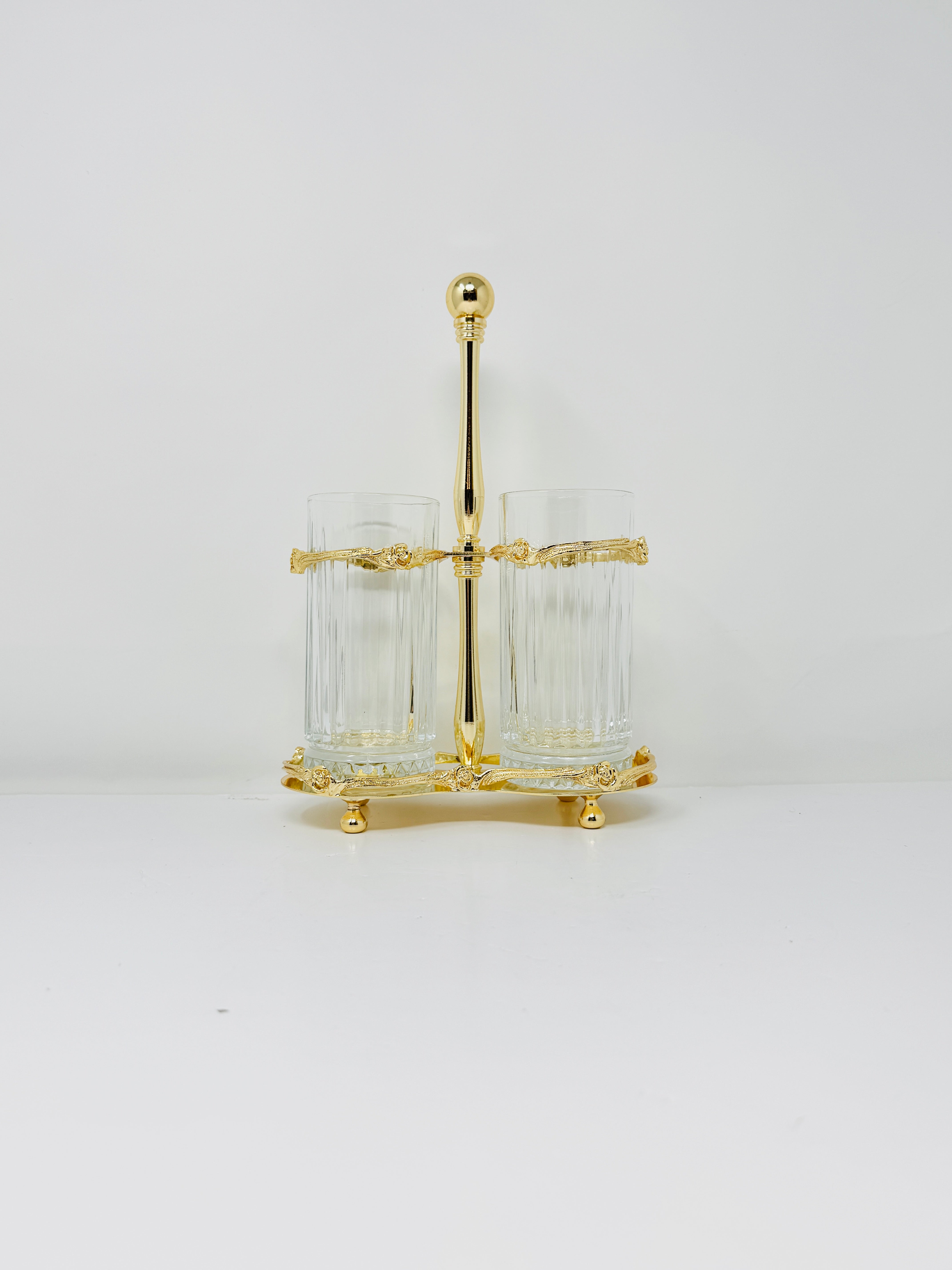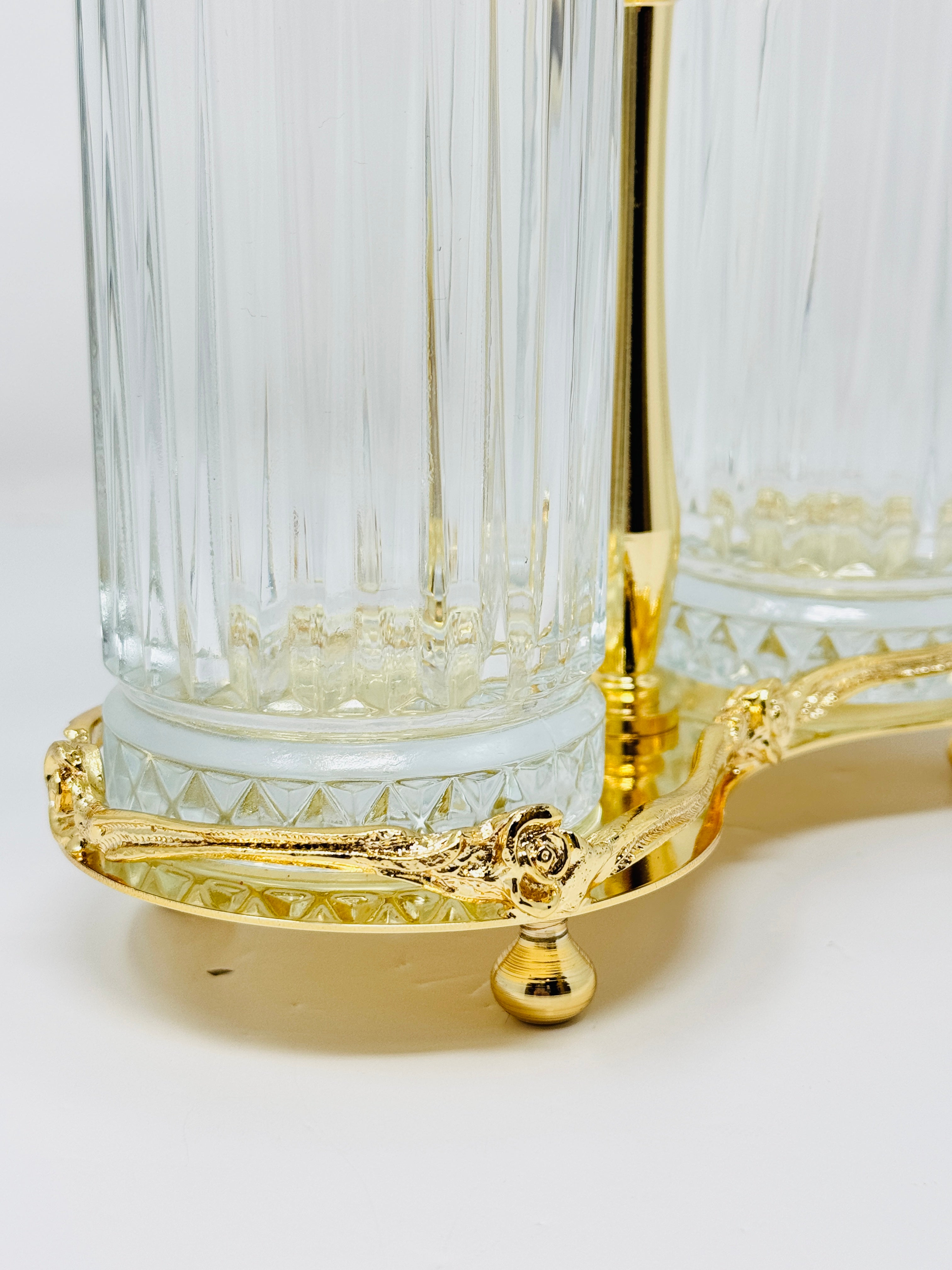 TWO-SECTION GLASS CUTLERY HOLDER ON STAND