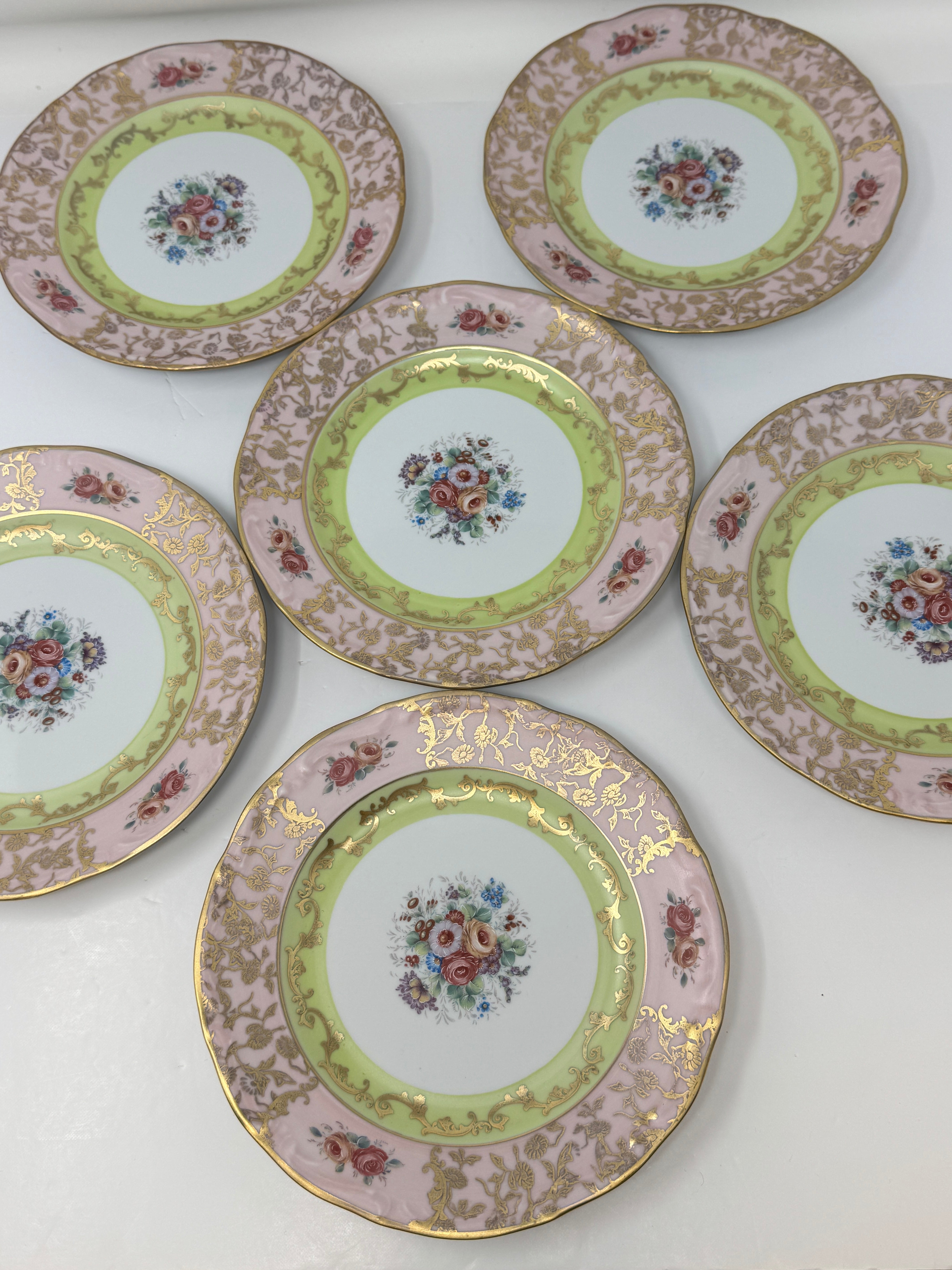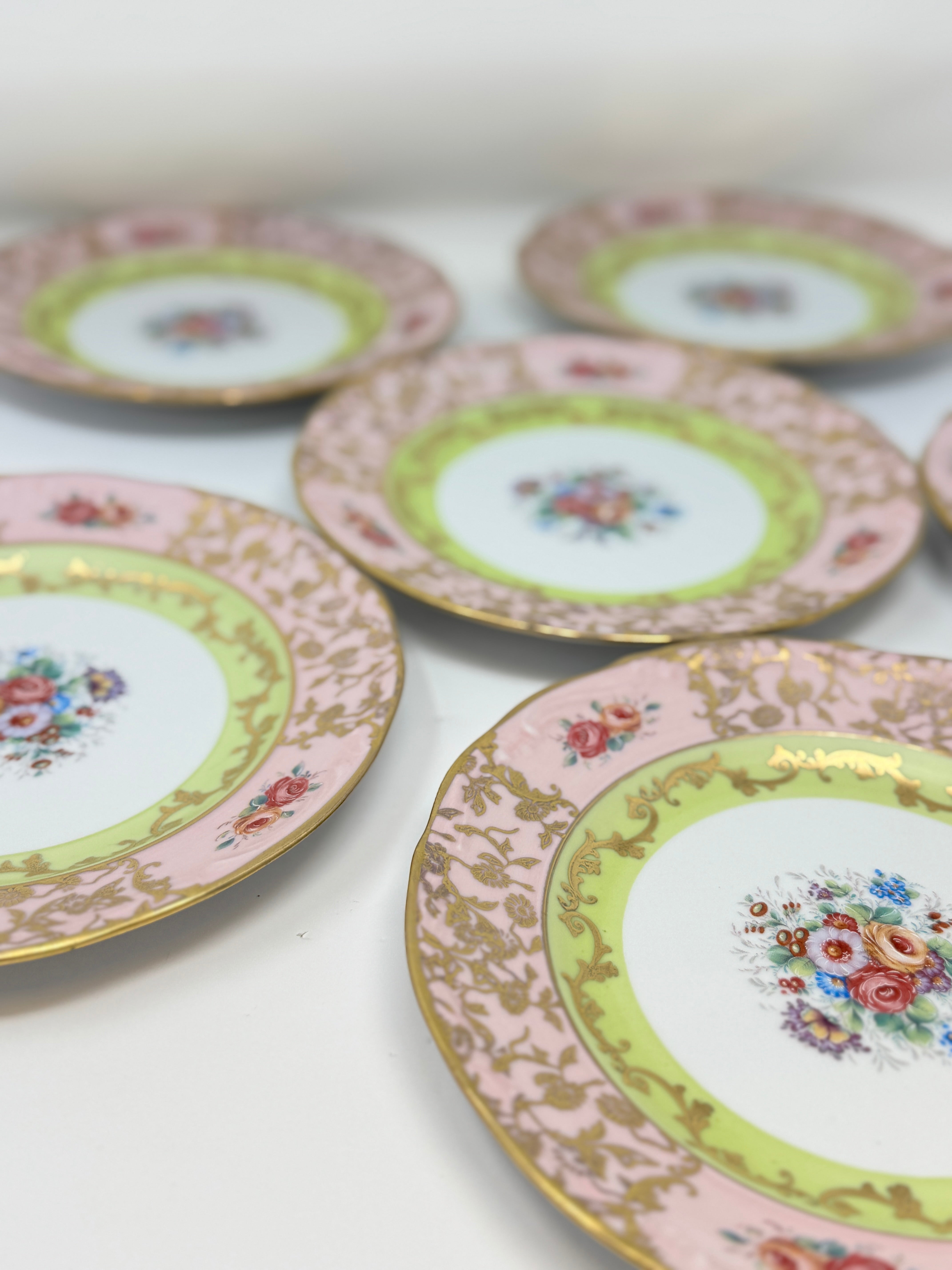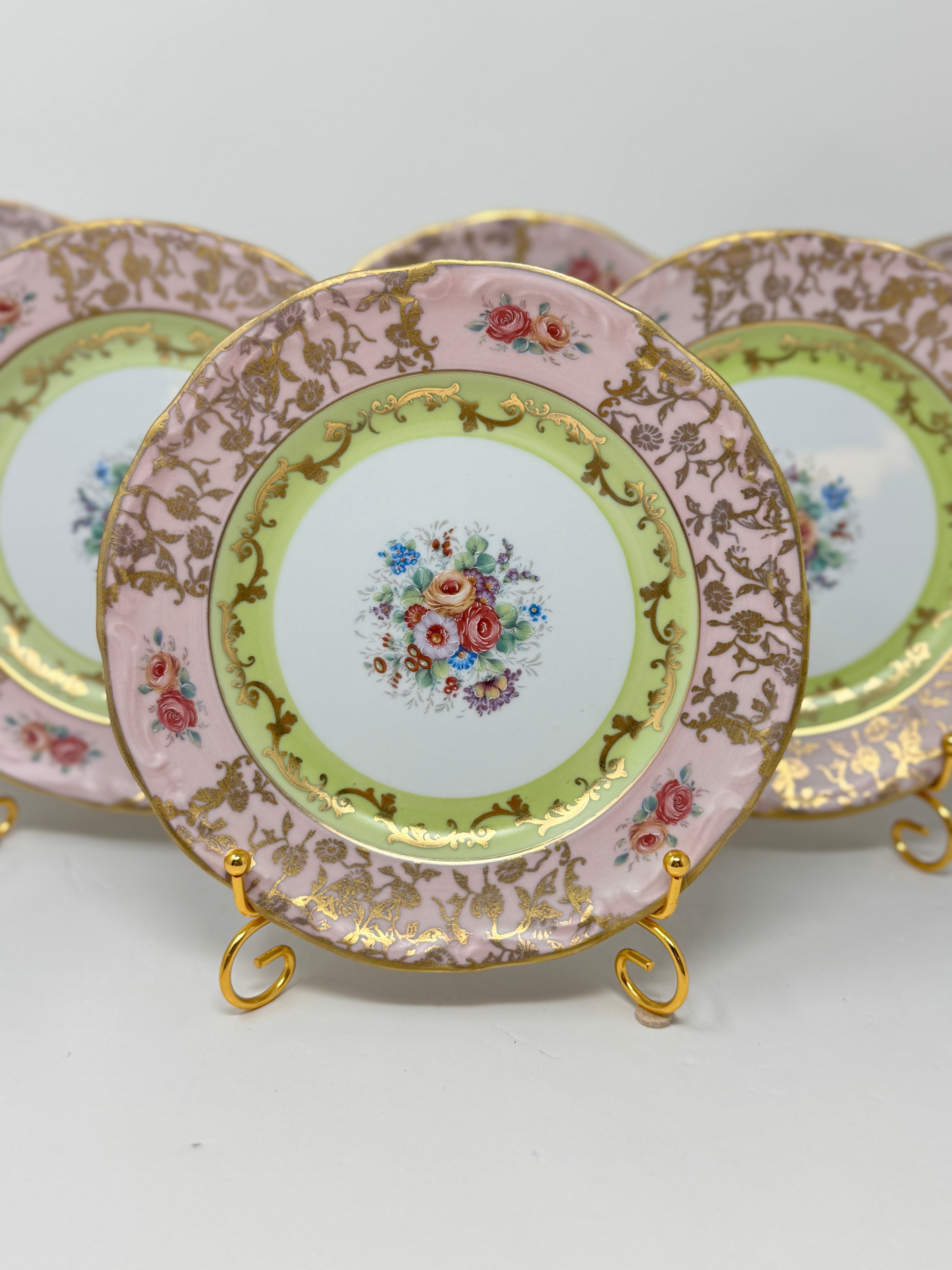 6 PCS ITALIAN APPLE GREEN AND PINK DESSERT PLATE SET