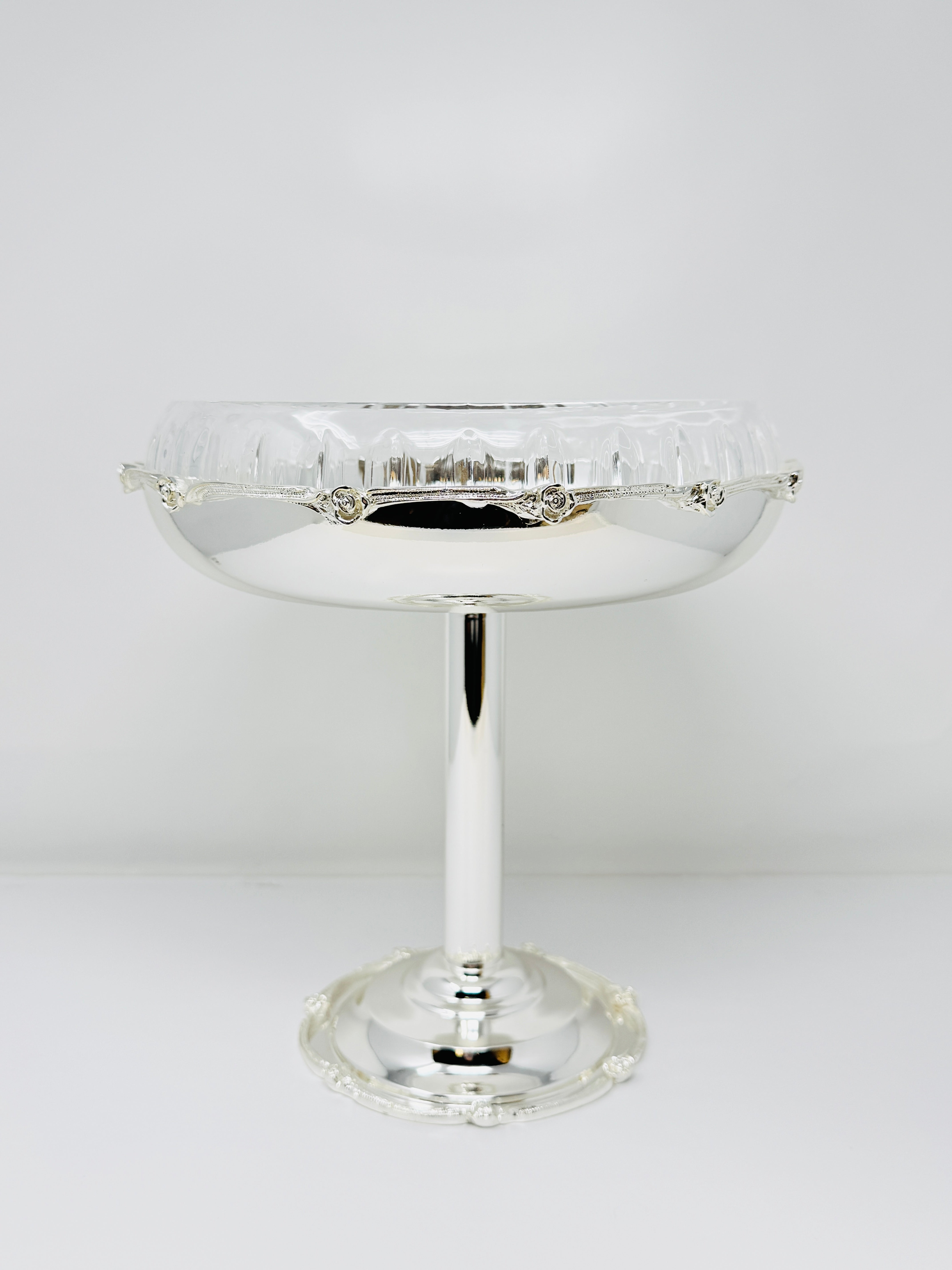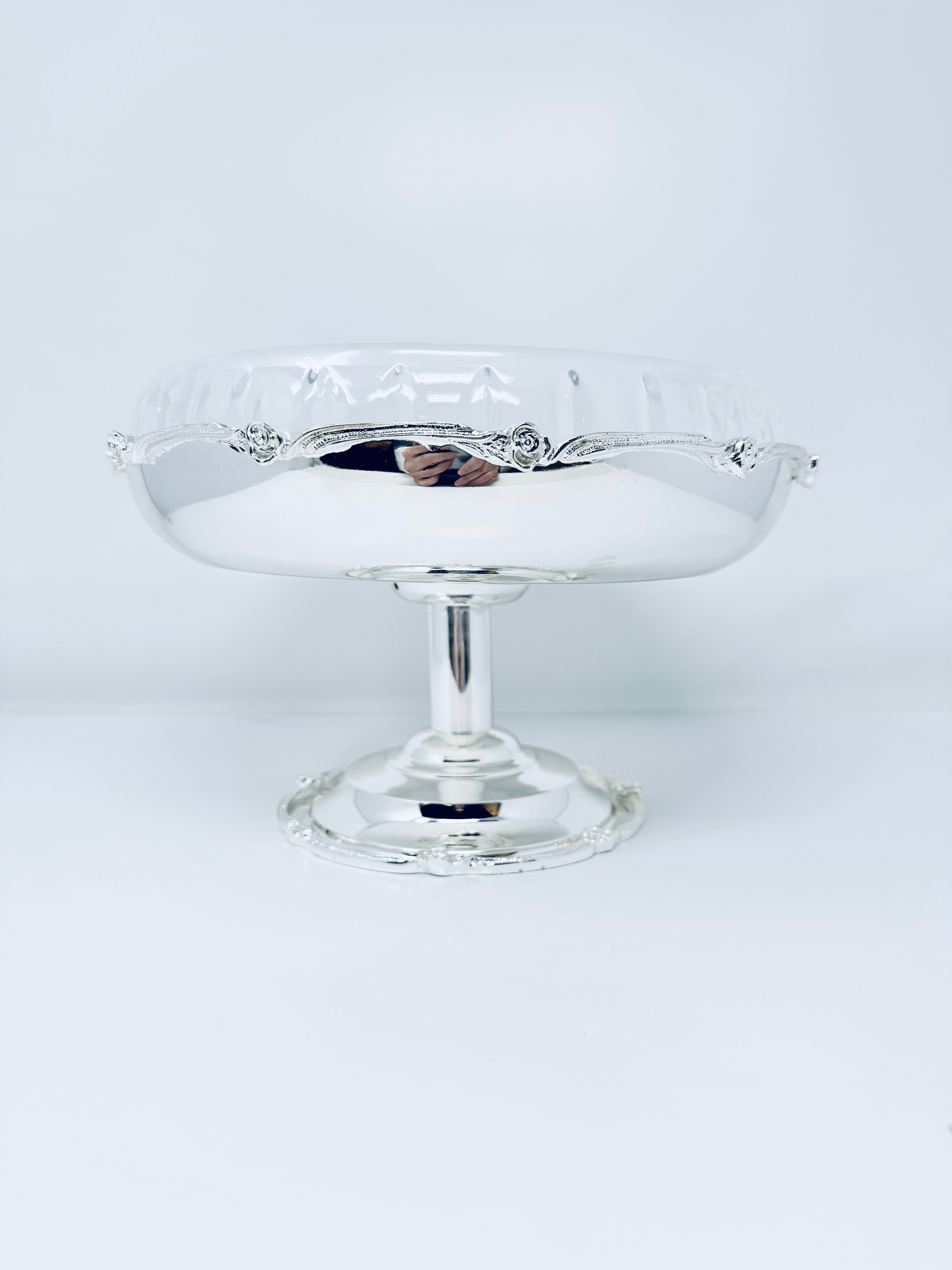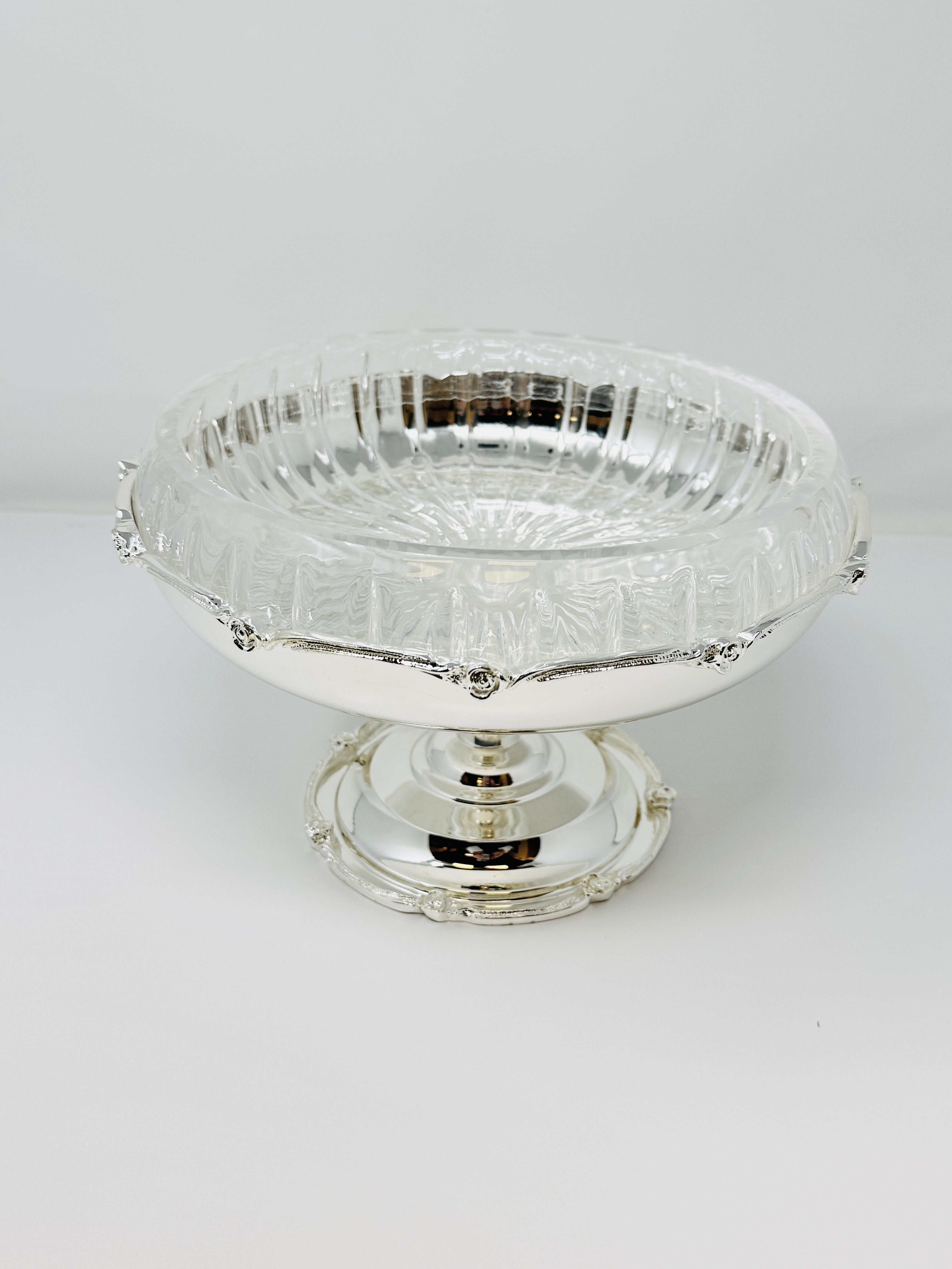 This beautifully crafted Silver Tone Snack bowl on Foot is a perfect way to serve sweets, Fruits and snacks. This piece is also a great addition to any kitchen counter or dining room table. Fill it with fruit or potpourri for an elegant look.