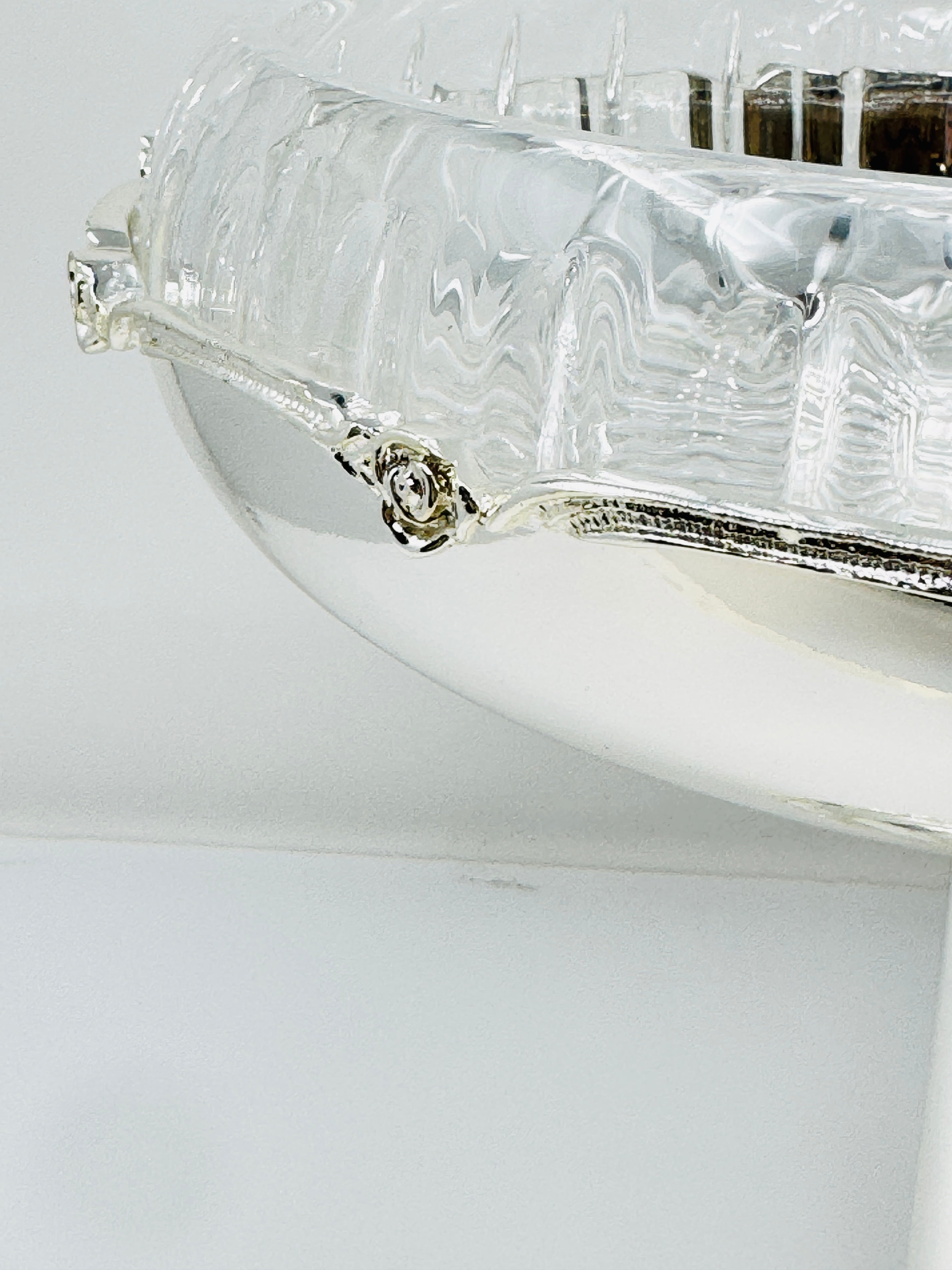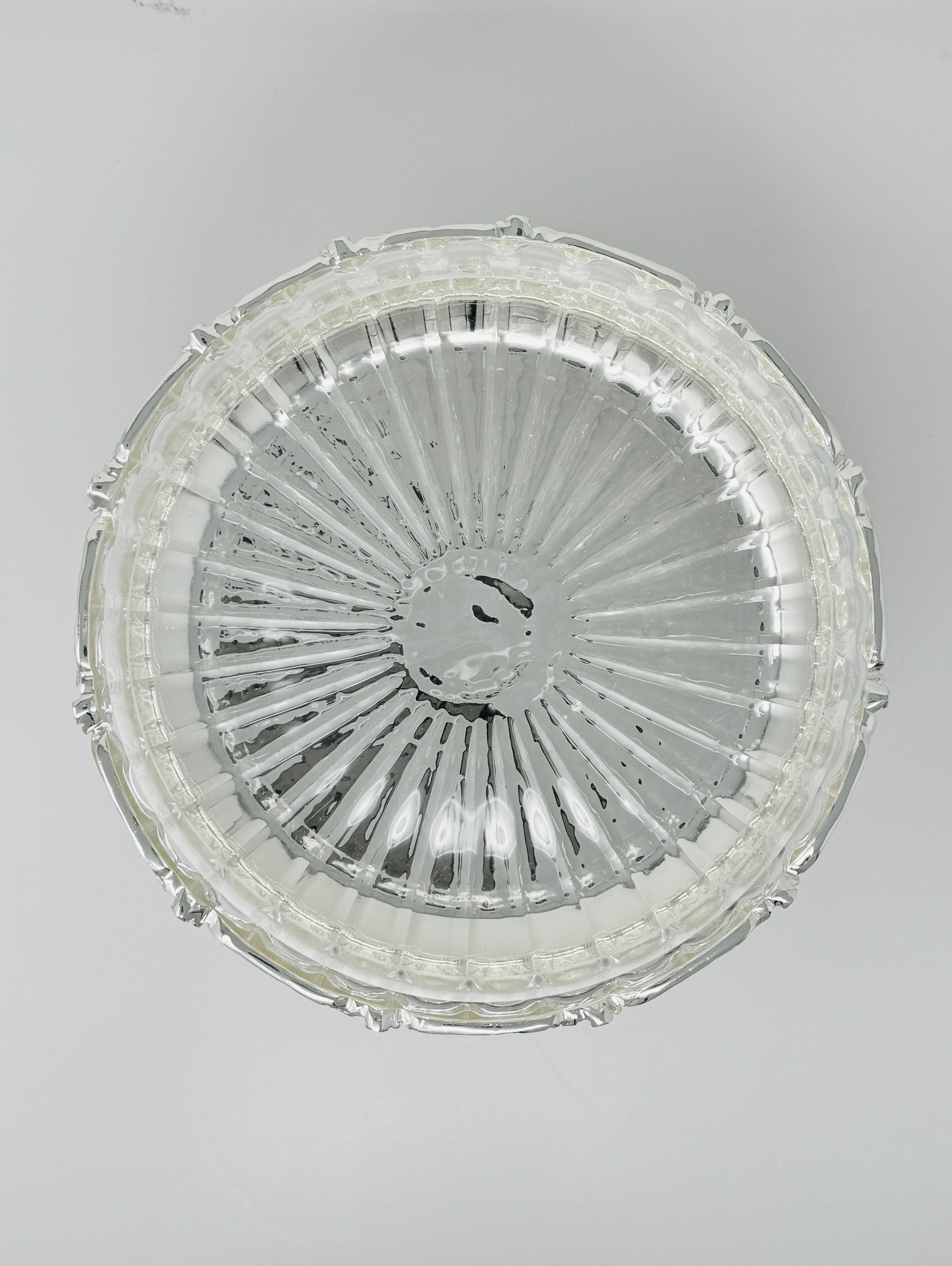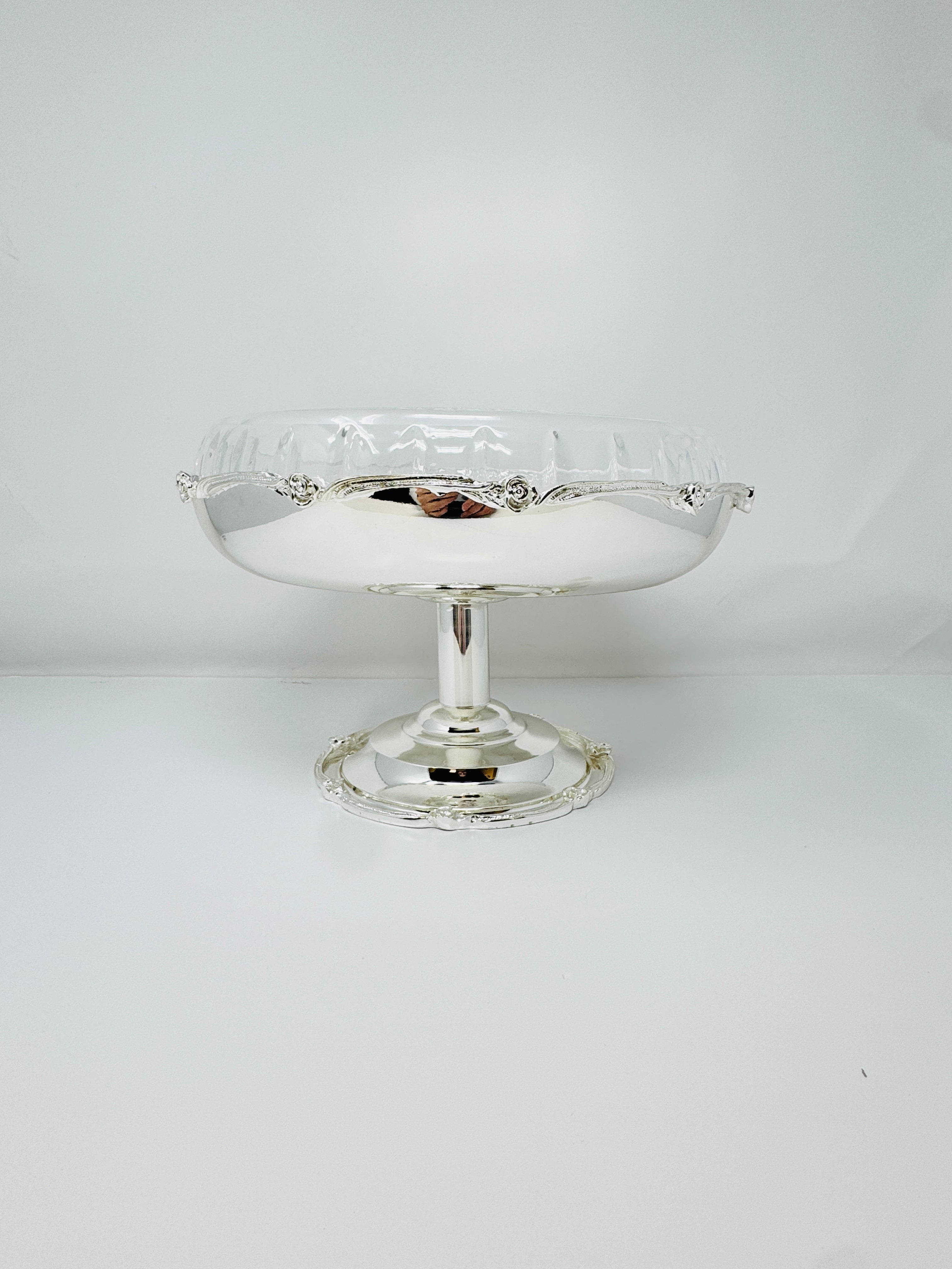 GLASS FRUIT BOWL ON SILVER TONE FOOT STAND