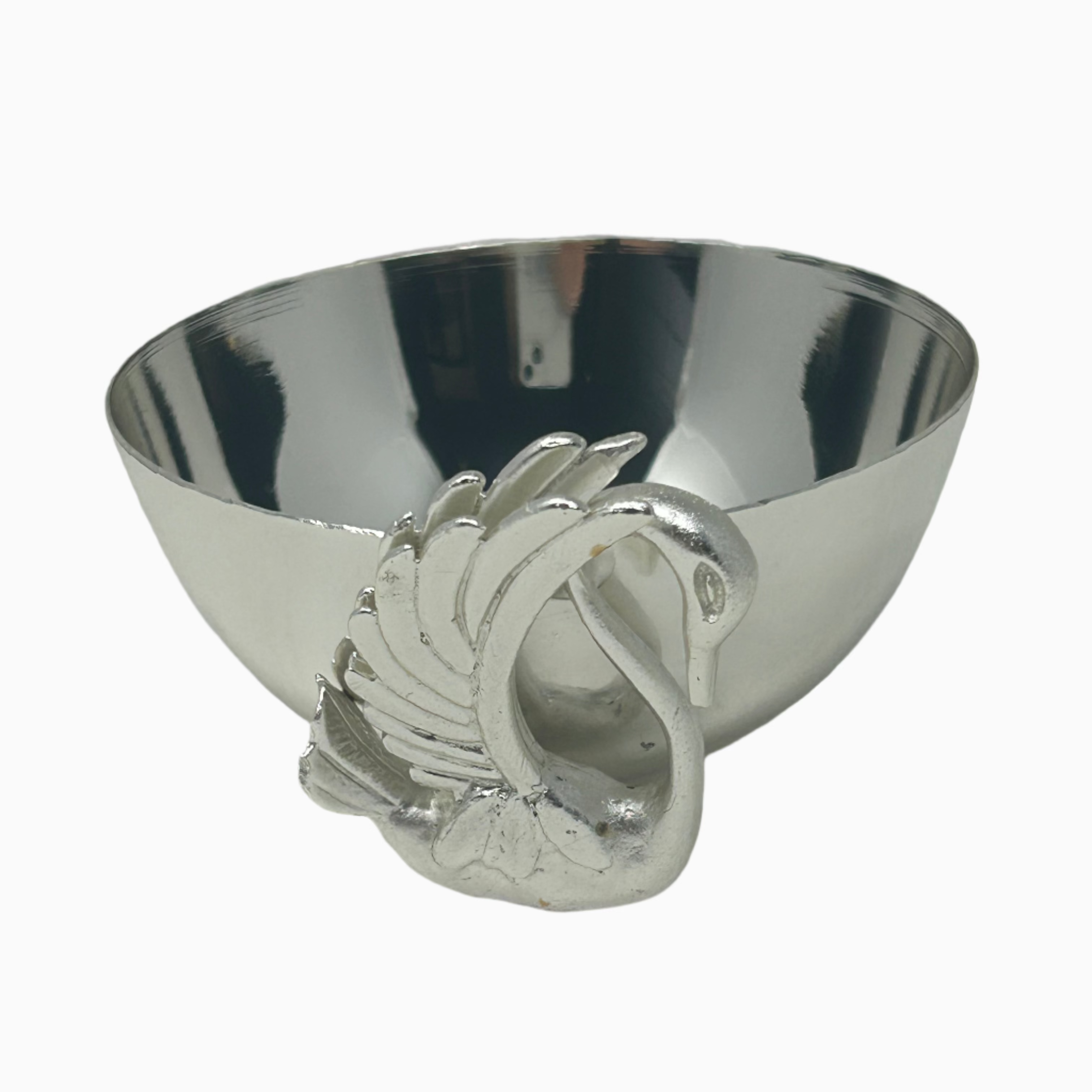 SILVER TONE CANDY BOWL ON SWAN STAND