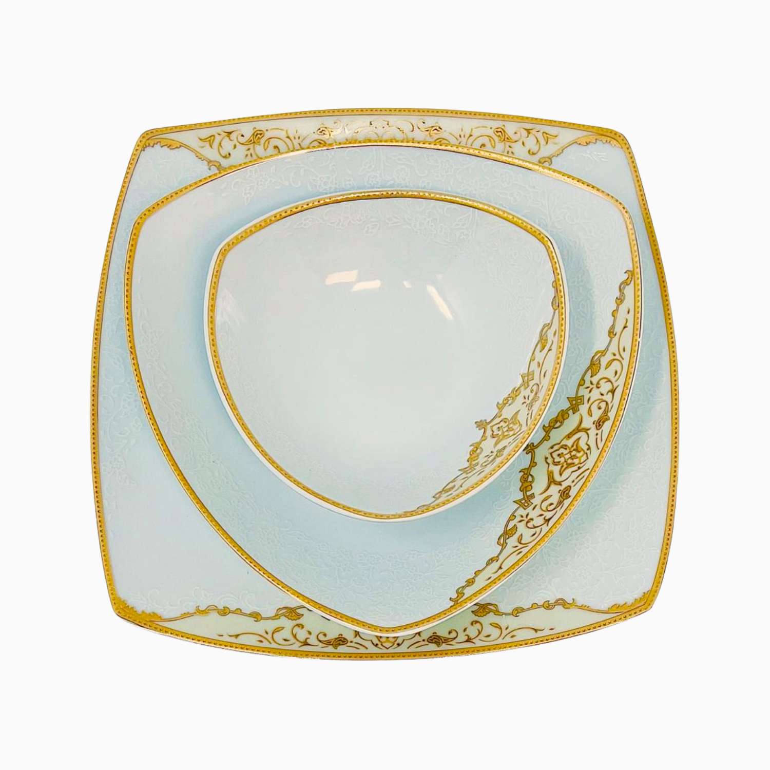 Elevate your dining experience with this exquisite 30-piece porcelain dinnerware set. Featuring a classic design accented with a striking gold rim, this set combines timeless elegance with modern style. Whether you're hosting a formal dinner or a casual family meal, this set will add a touch of luxury to your table.