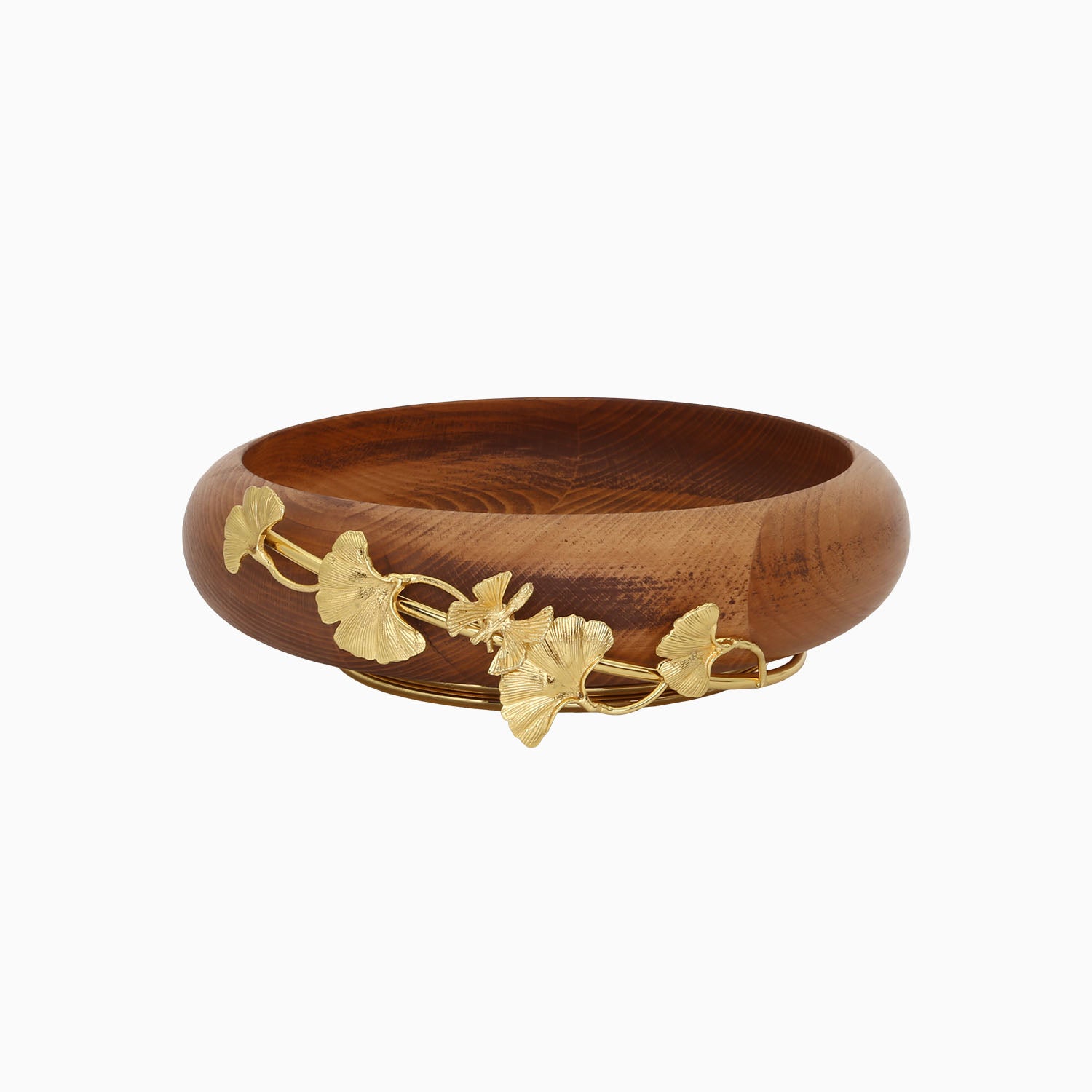 WOODEN SNACK BOWL WITH GOLDEN BUTTERFLY
