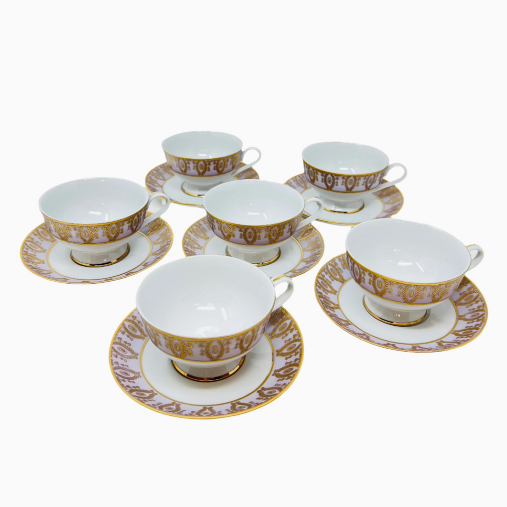 SIX PERSON GOLD RIMMED TEA SET. NOBLE HOME GIFTS