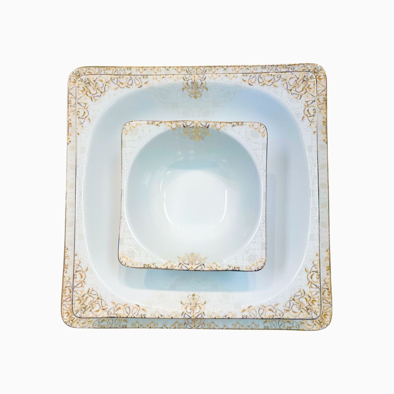 This exquisite 101-piece dinnerware set is a statement of modern sophistication. Crafted from elegant Bone China, each piece features a captivating white and gold design that will leave a lasting impression on your guests. Whether you're hosting a grand celebration or an intimate gathering, this set will transform your dining experience.