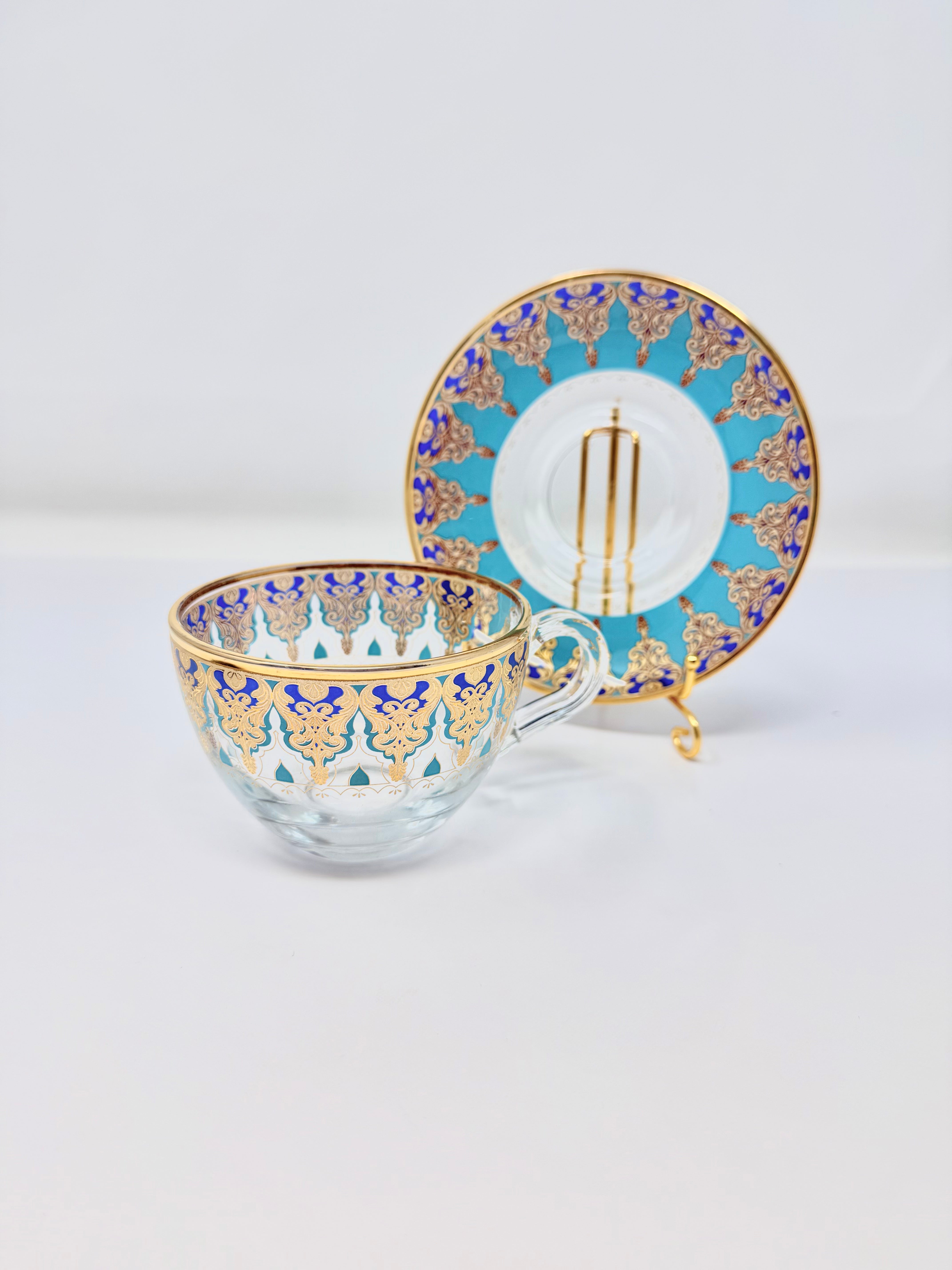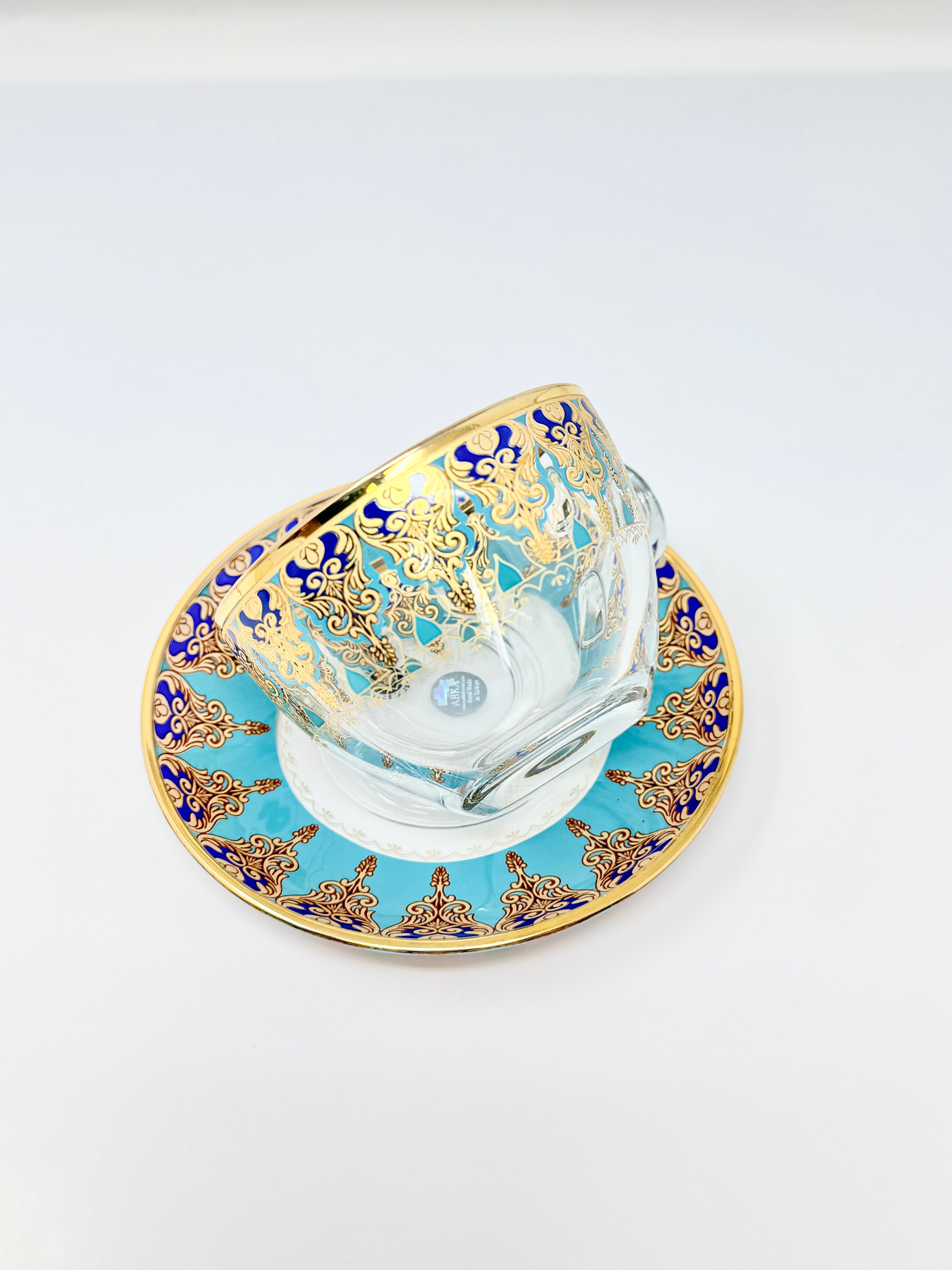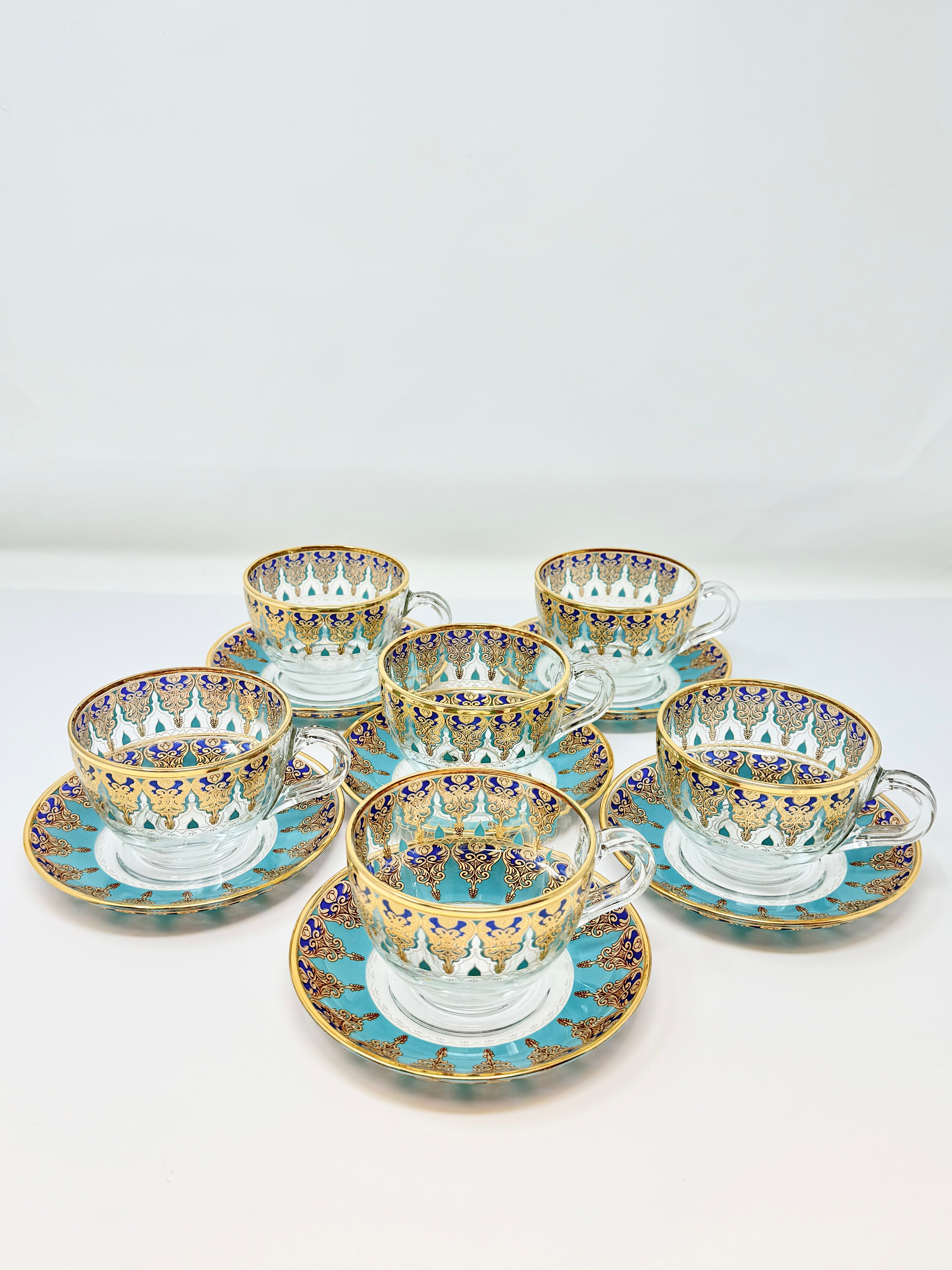 12 PCS LUXRY GOLD AND BLUE TEA SET