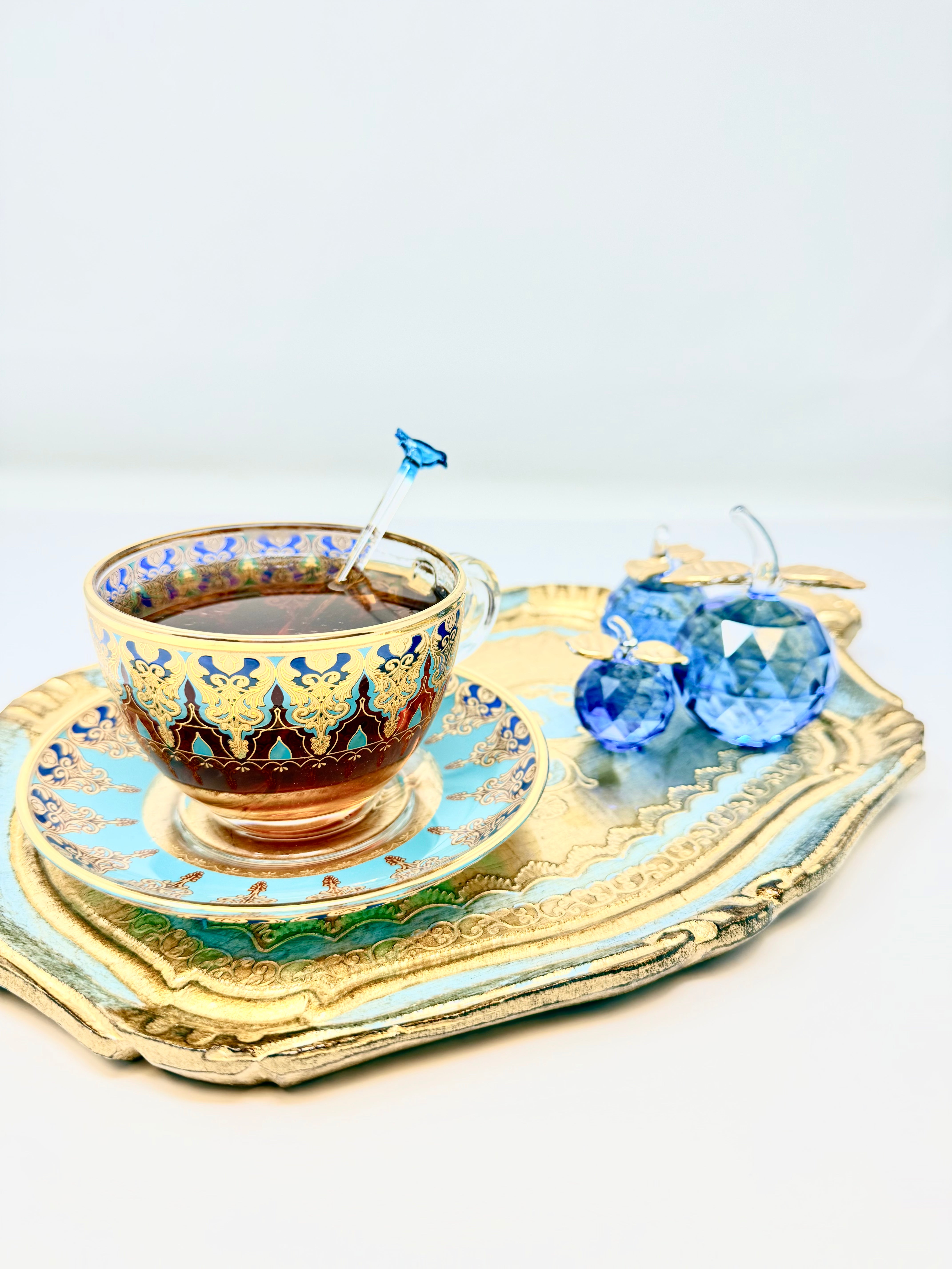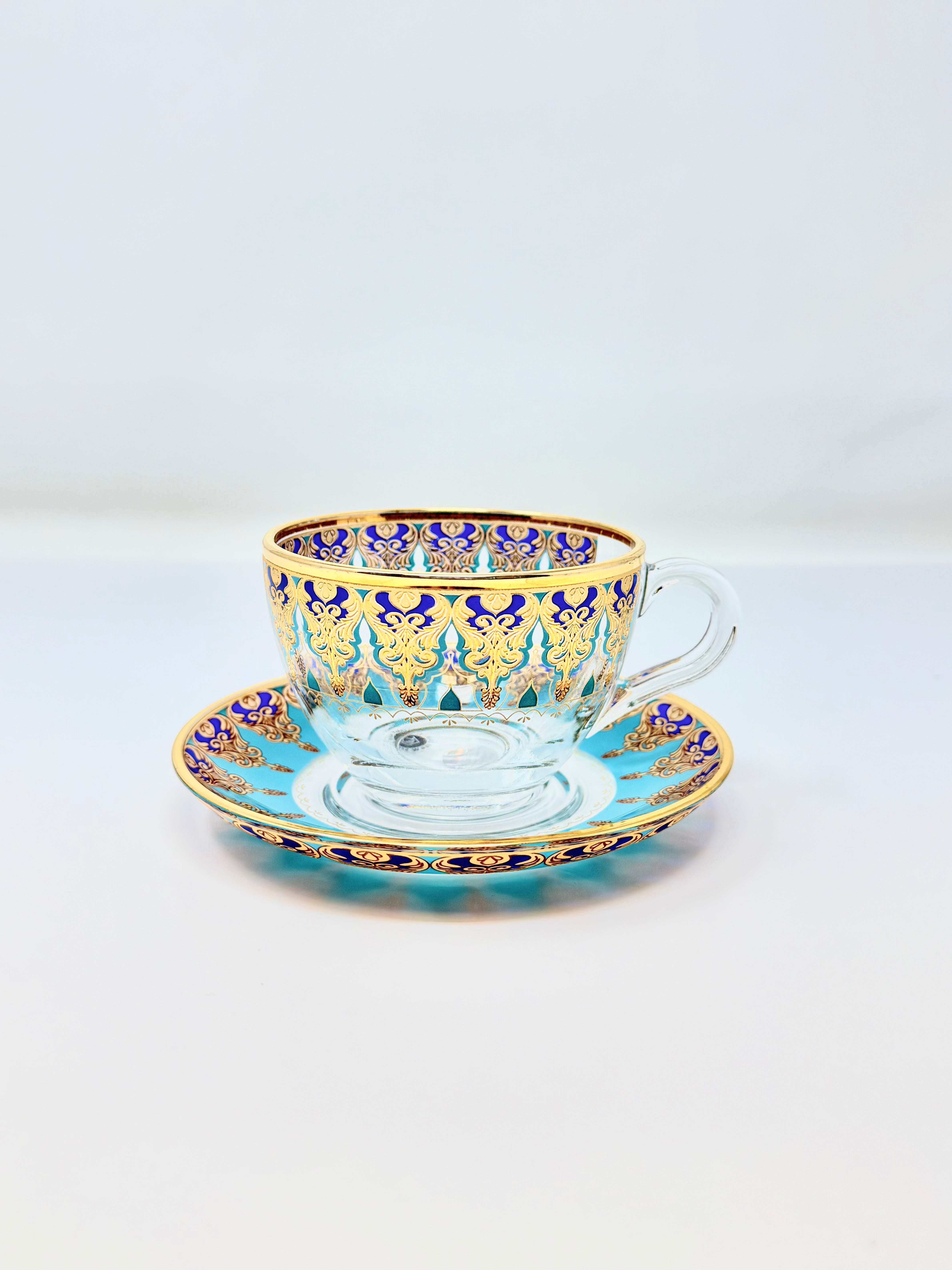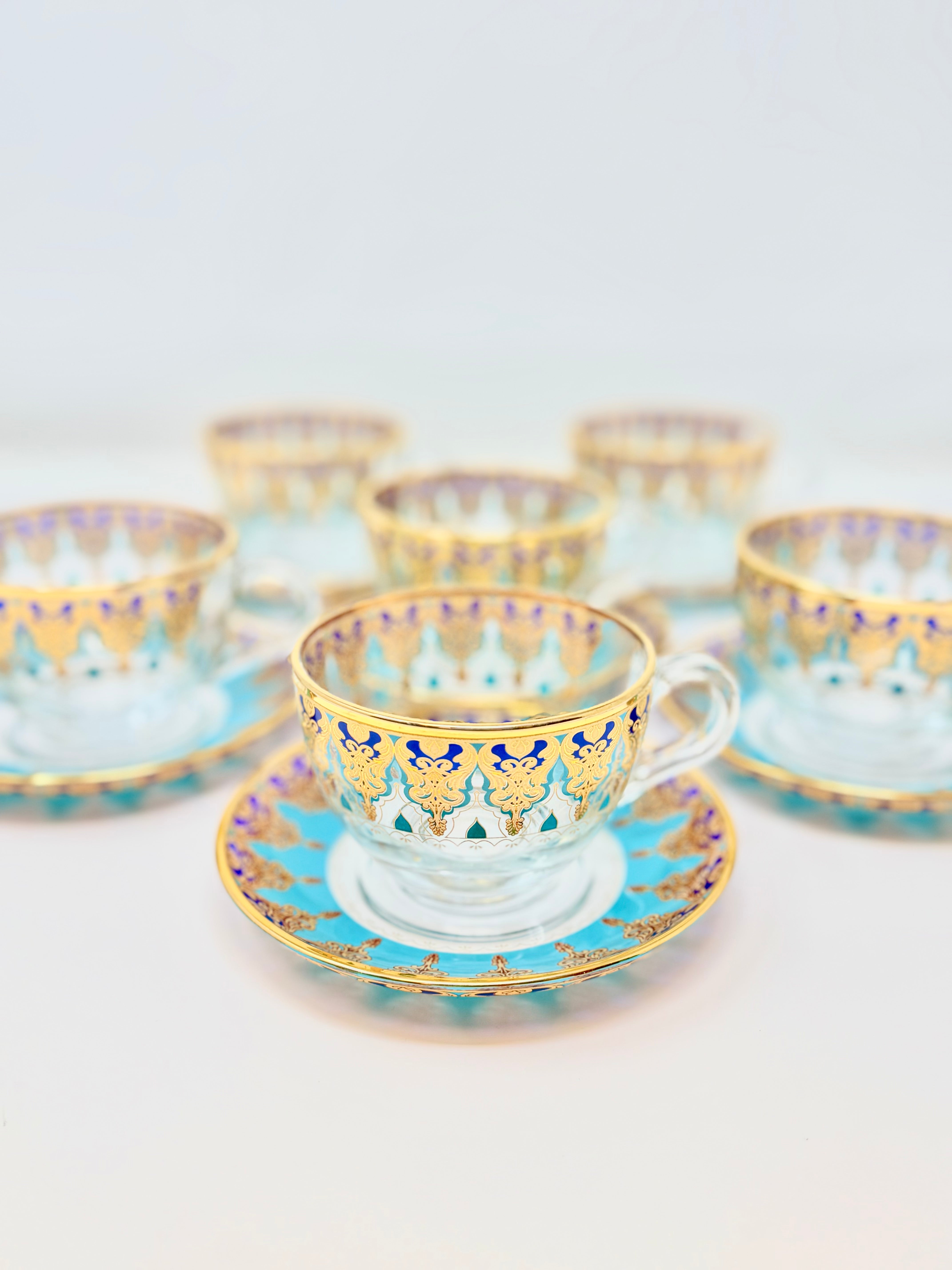 12 PCS LUXRY GOLD AND BLUE TEA SET