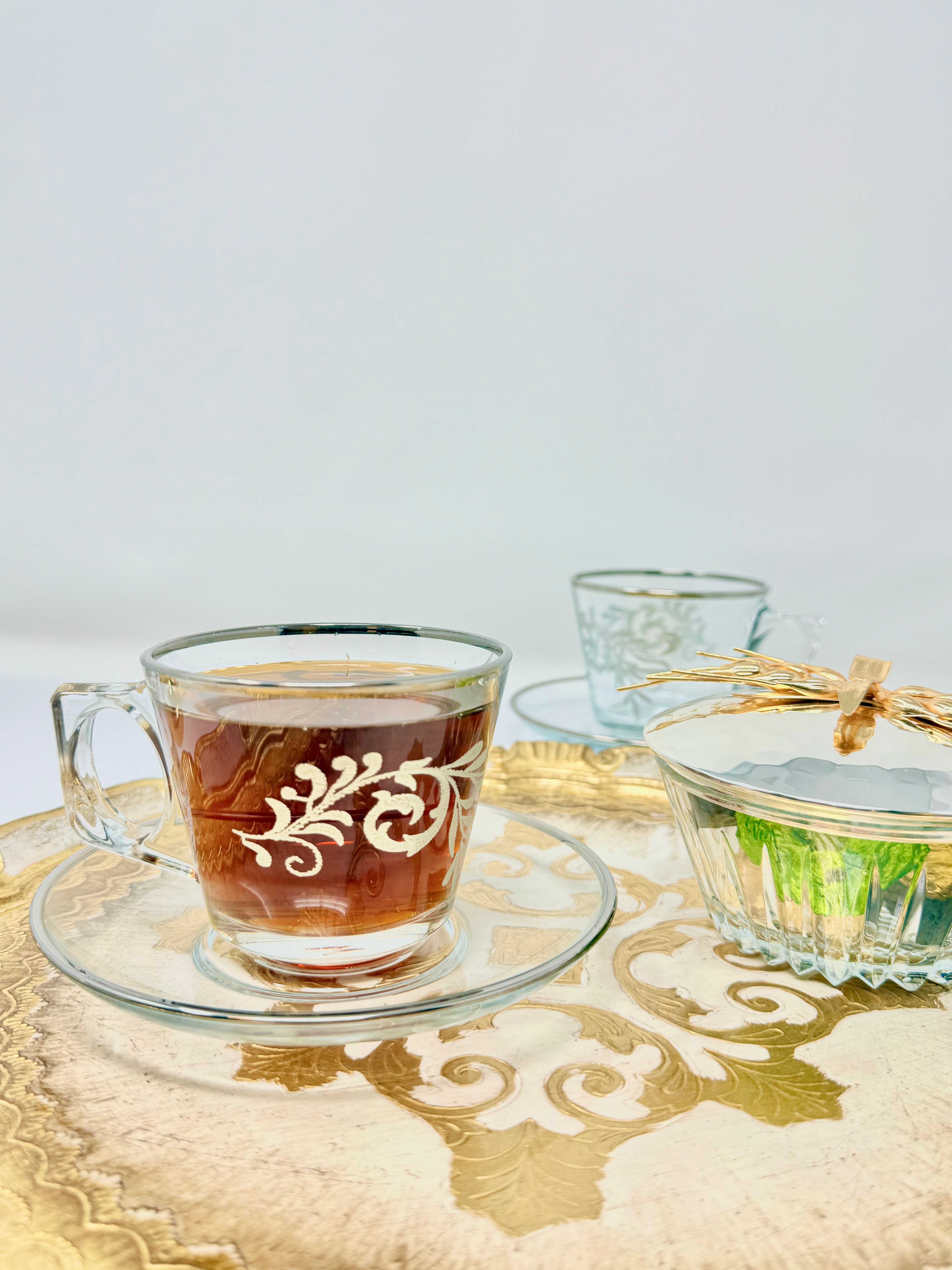 12 PCS LUXURY SILVER LEAF TEA SET