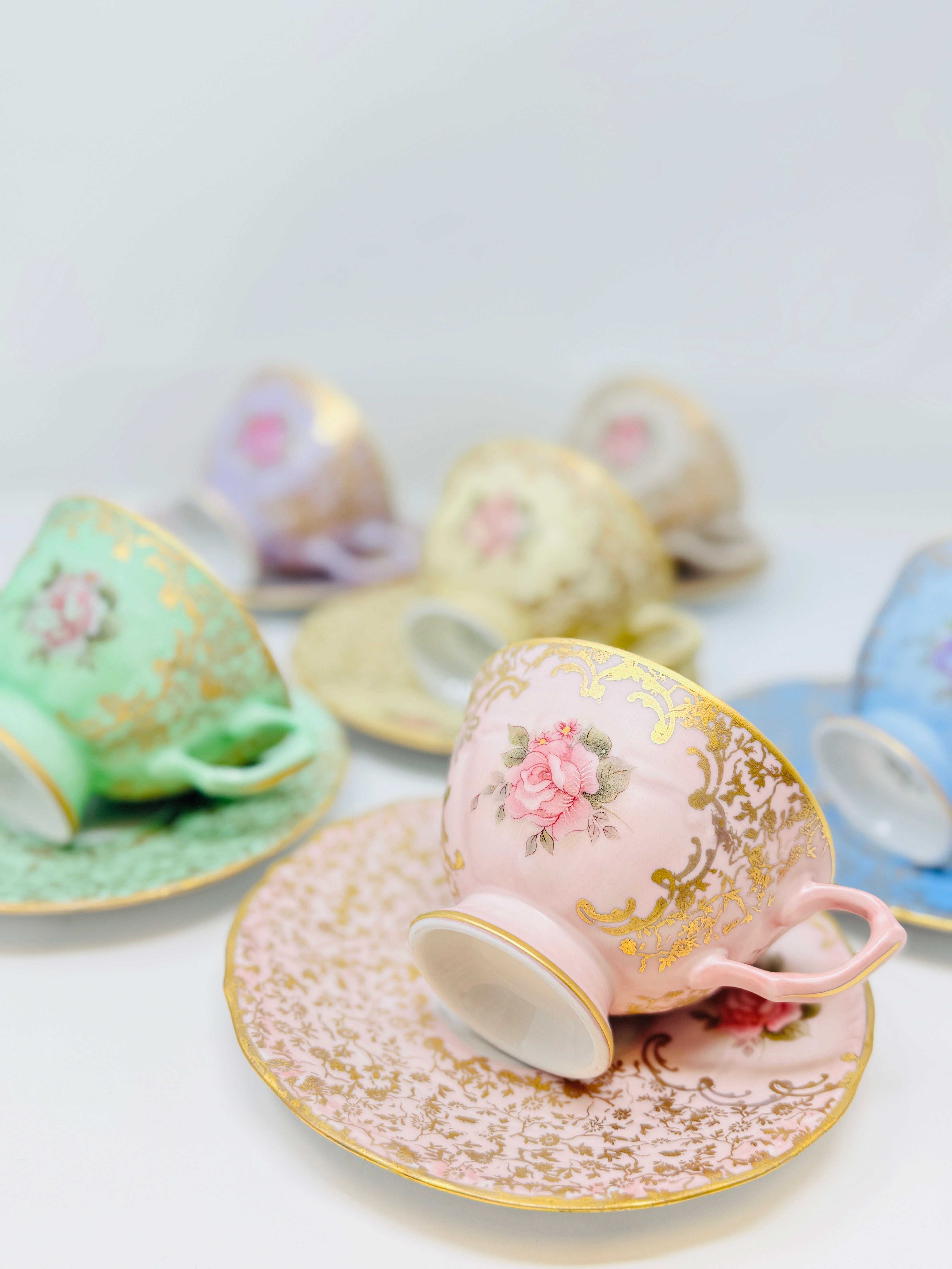 12-PIECE ITALIAN COLORFUL TEA SET FOR 6-PERSON, VIENNA ROSE