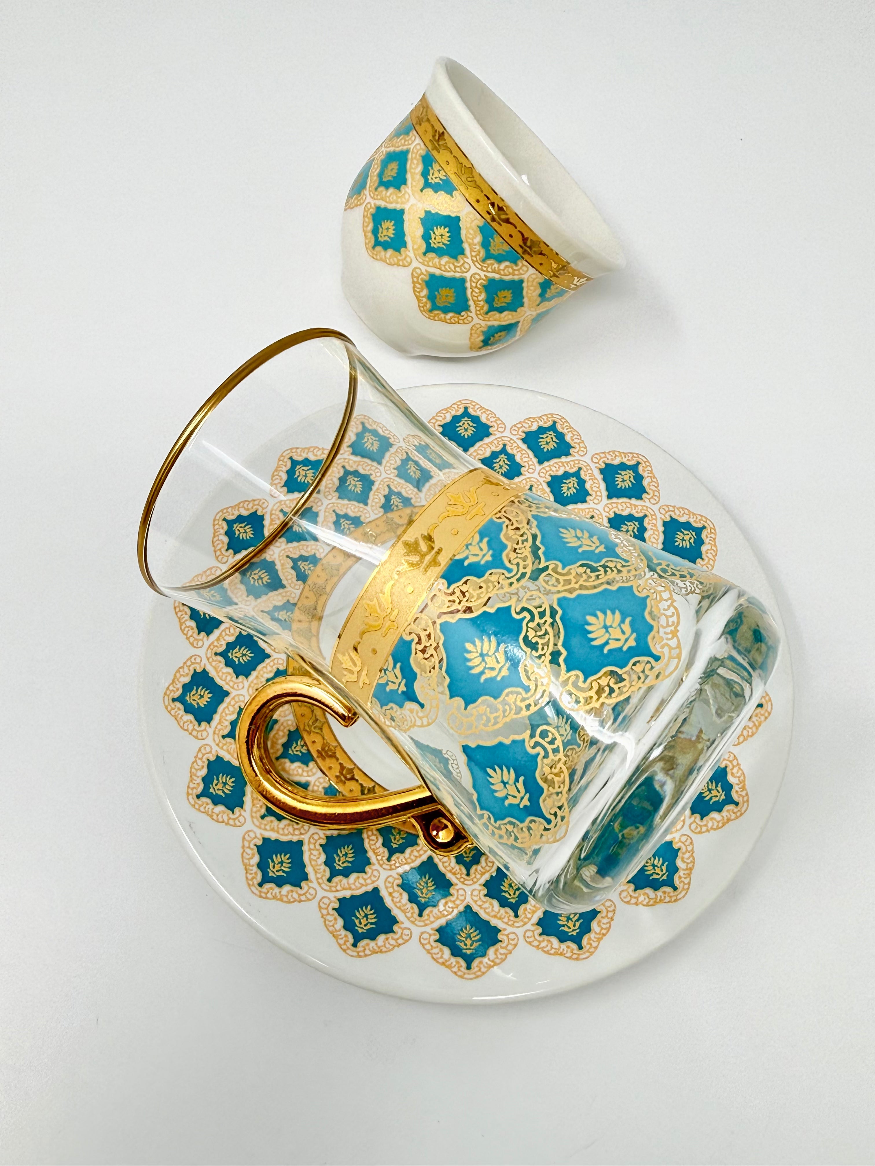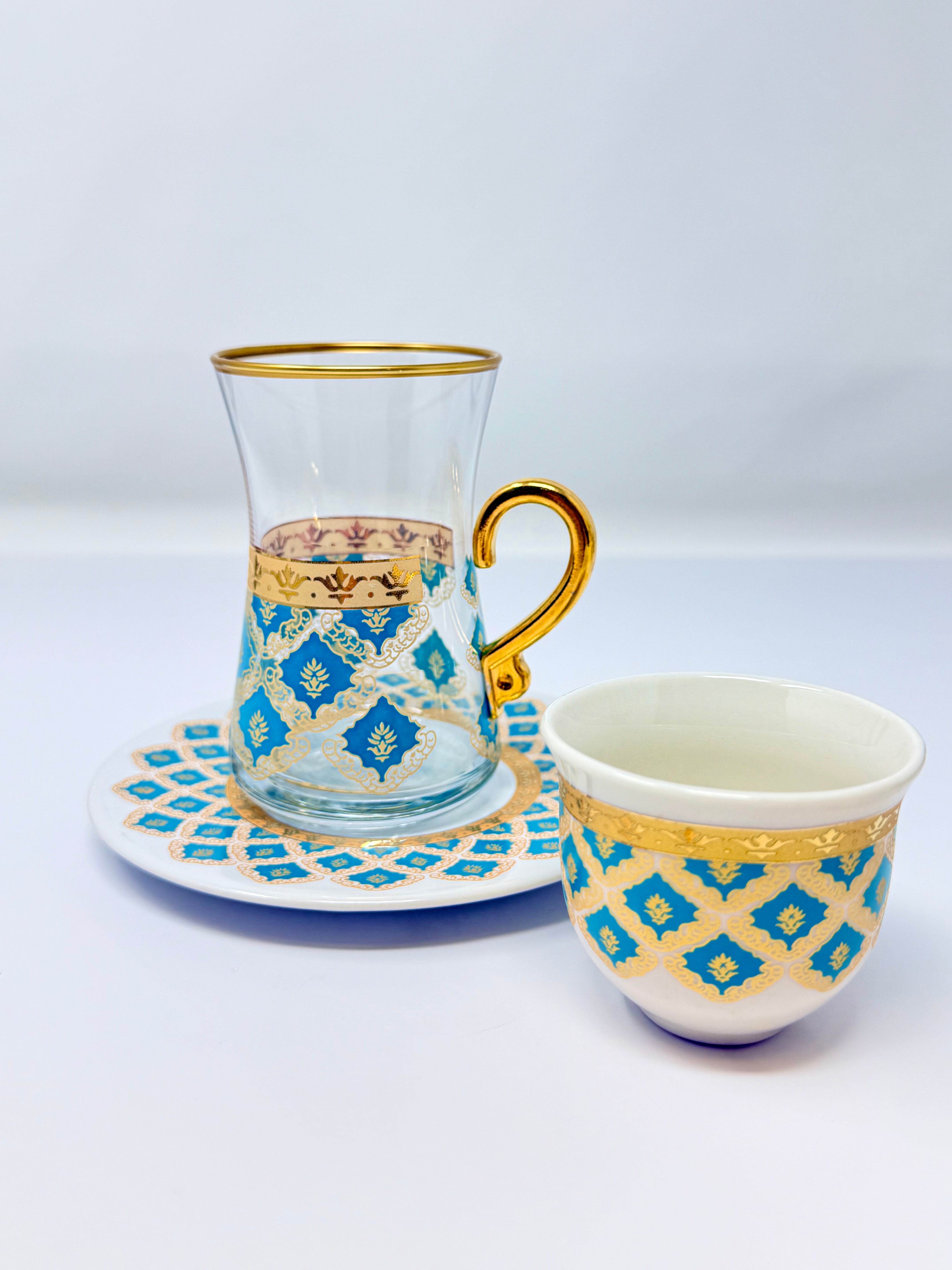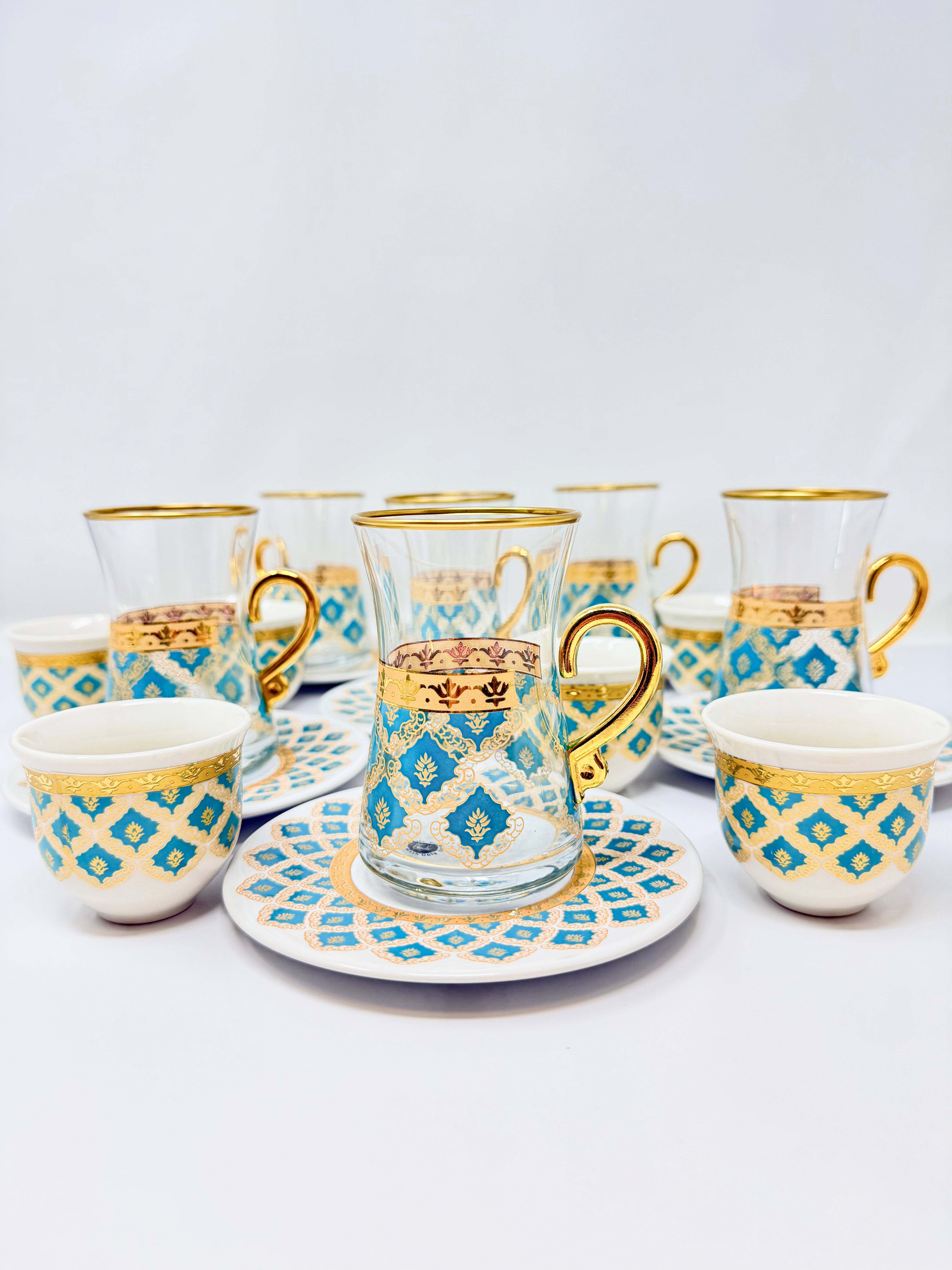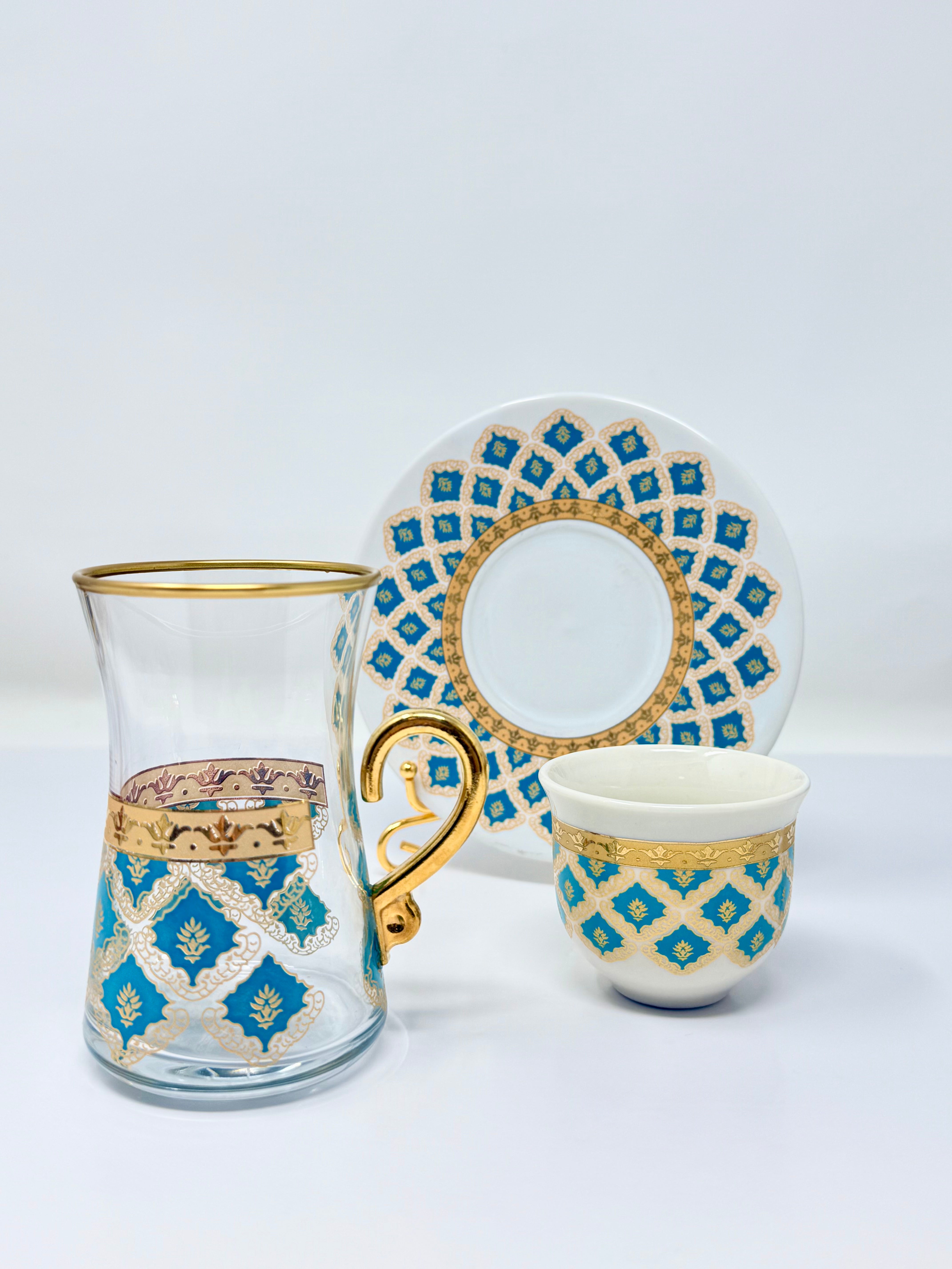 18 PCS BLUE AND WHITE TEA AND COFFEE SET