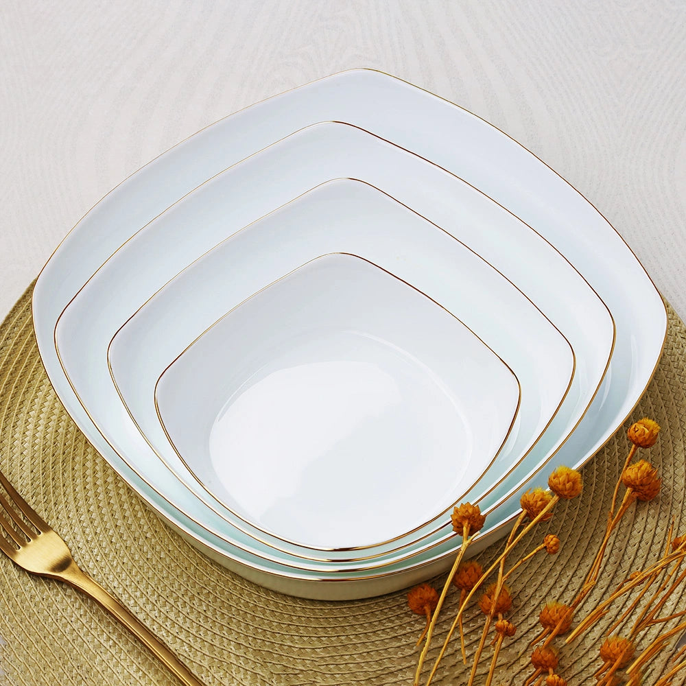 Bring a touch of modern luxury to your home with this beautiful 4-piece square serving set. Crafted from smooth, high-quality opal glass and finished with a refined gold rim, these bowls offer a versatile and sophisticated way to serve. The clean, geometric design is a perfect fit for Canadian homes that value contemporary, minimalist aesthetics.
