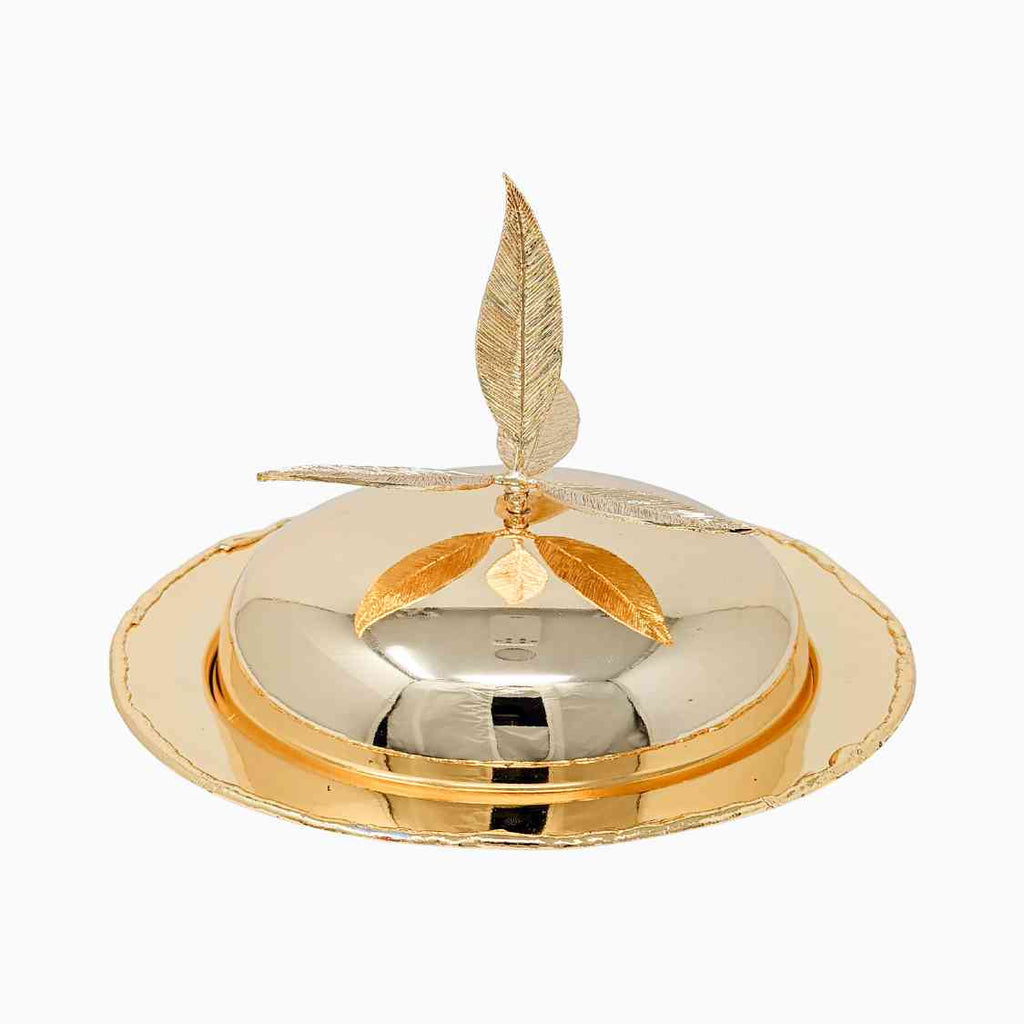 MEDIUM GOLD SERVING PLATE WITH LEAF