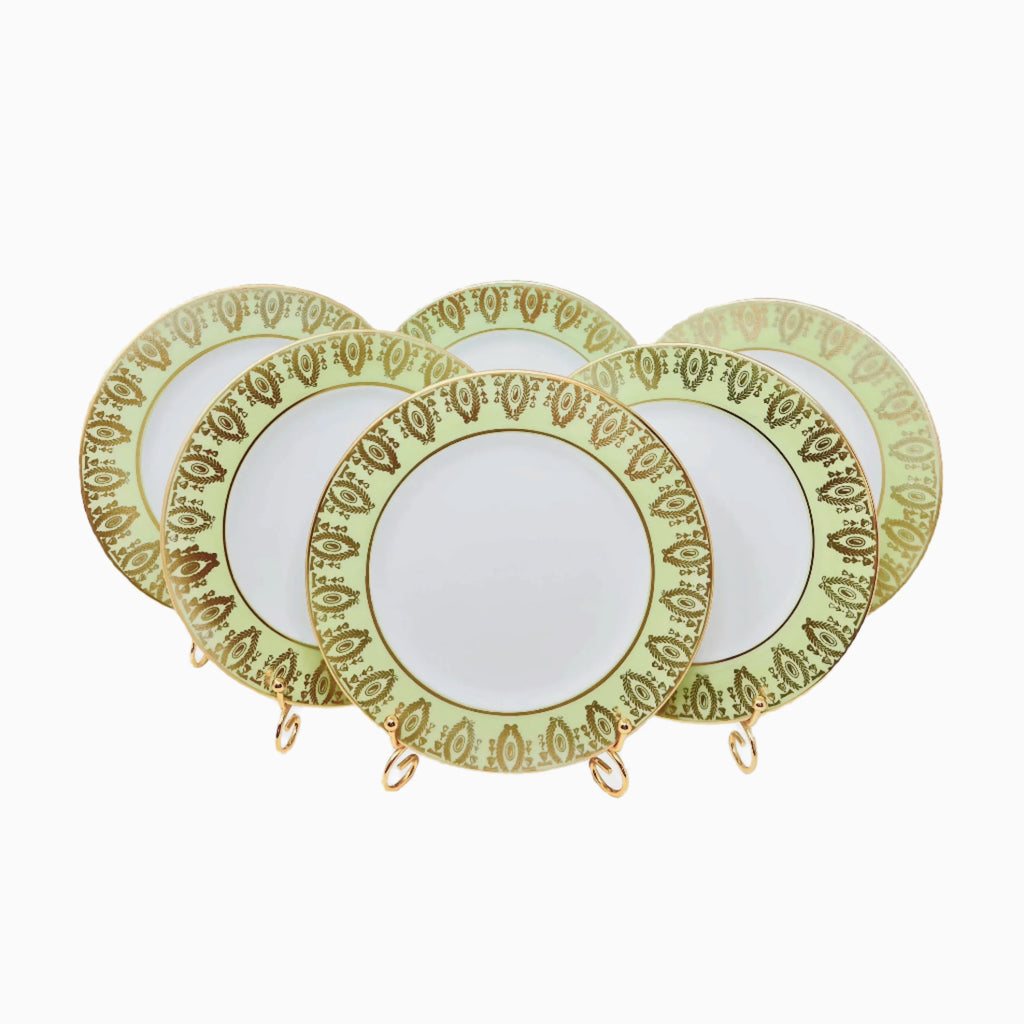 6-PIECE ITALIAN CORONA GREEN DESSERT PLATE SET