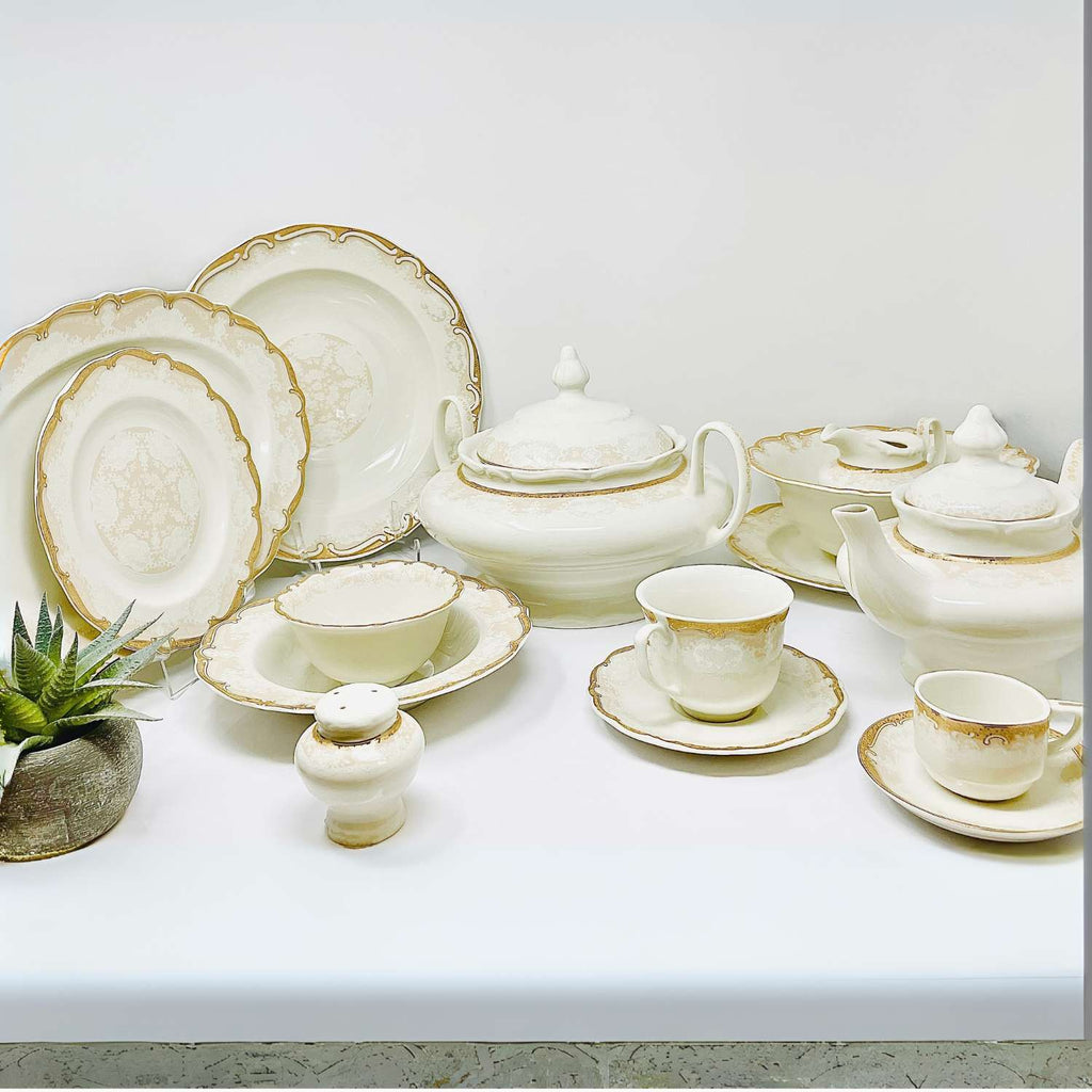This exquisite 98-piece dinnerware set is a celebration of classic elegance with a modern twist. Crafted from fine Bone China, each piece is adorned with a delicate rose gold accent, adding a touch of luxury to your table. Whether you're hosting a formal dinner or a casual gathering, this set will impress your guests and elevate your dining experience.