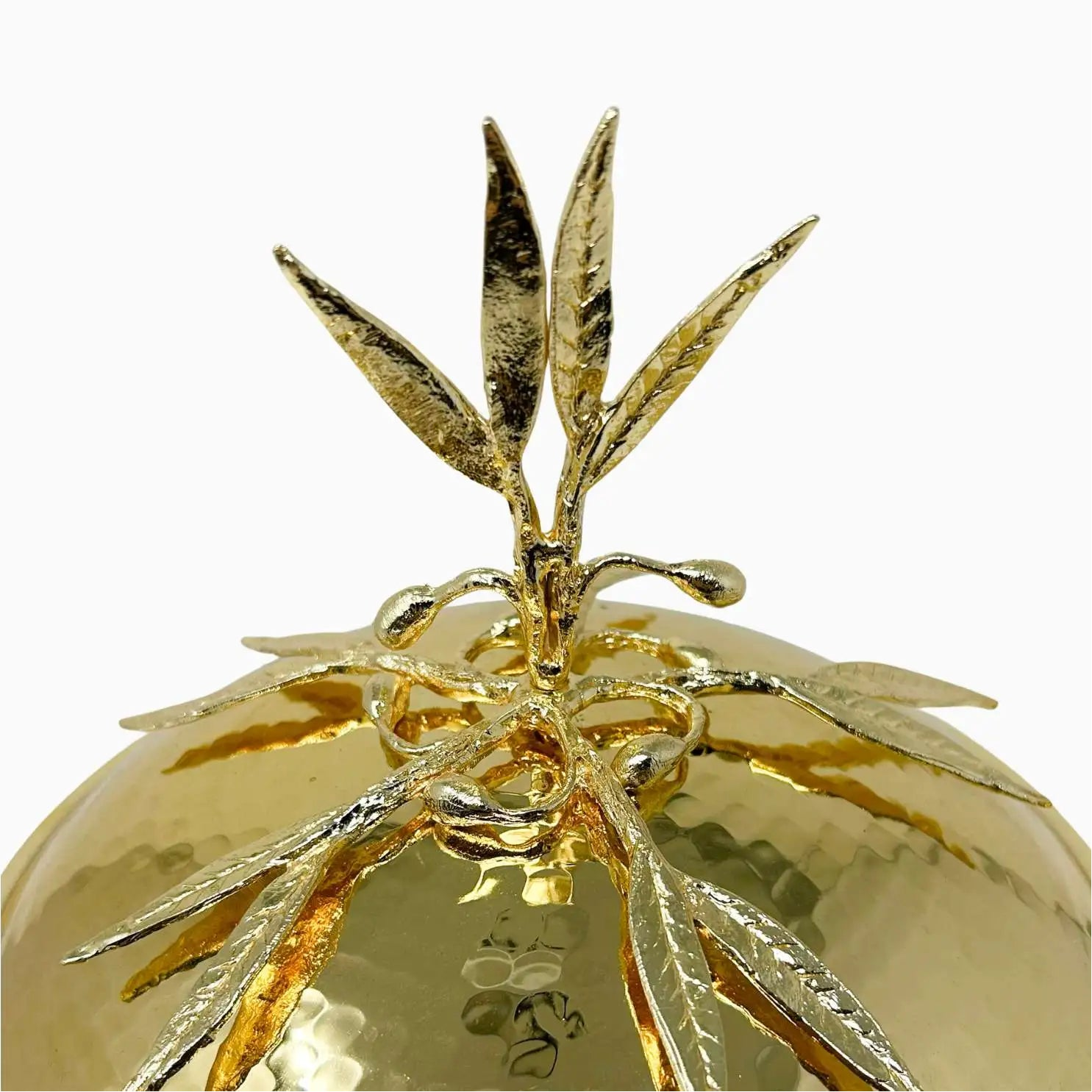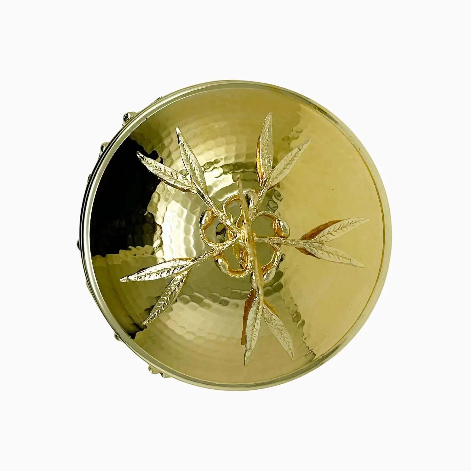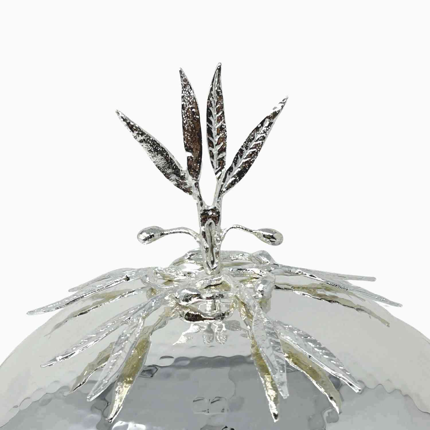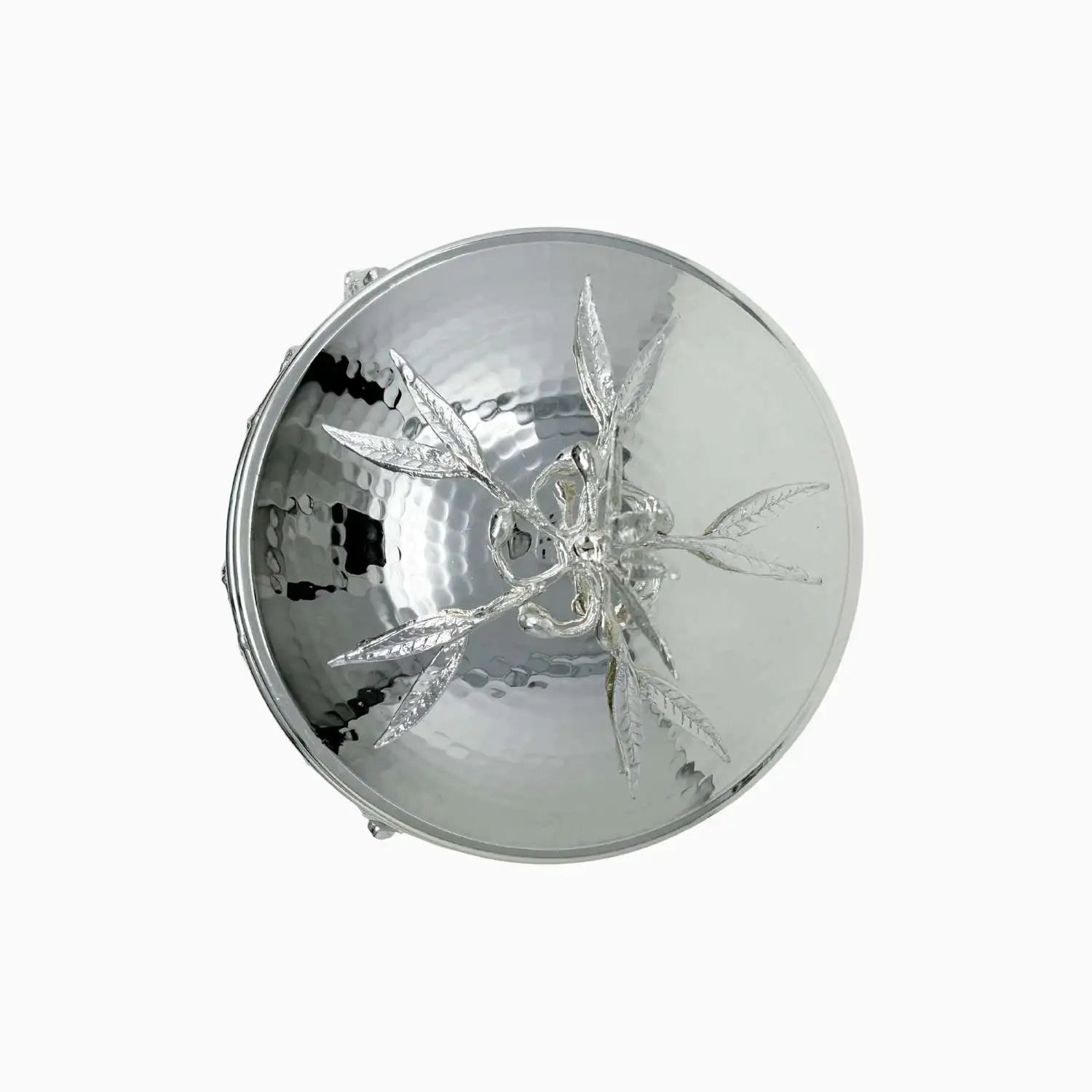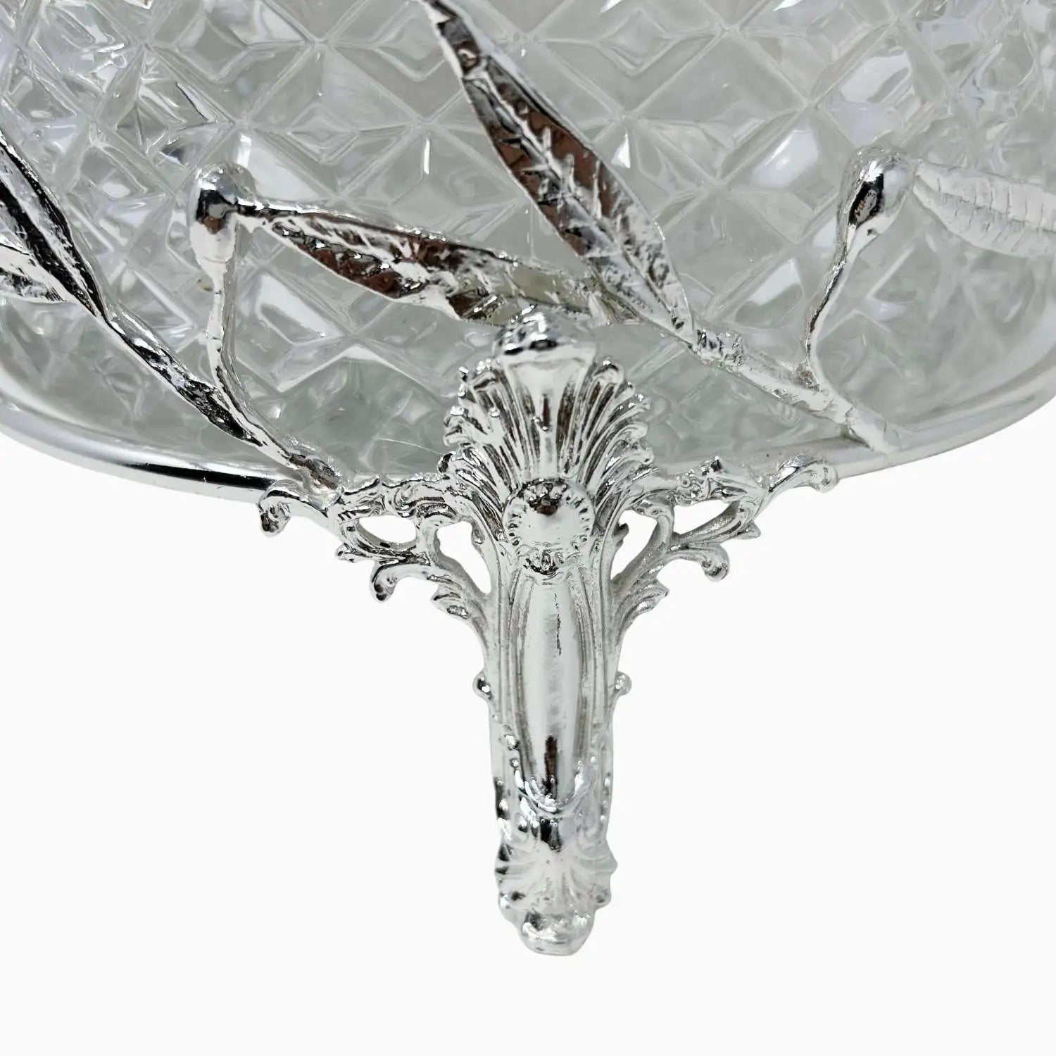 GLASS SNACK BOWL ON SILVER TONE STAND, OLIVE LEAF COLLECTION