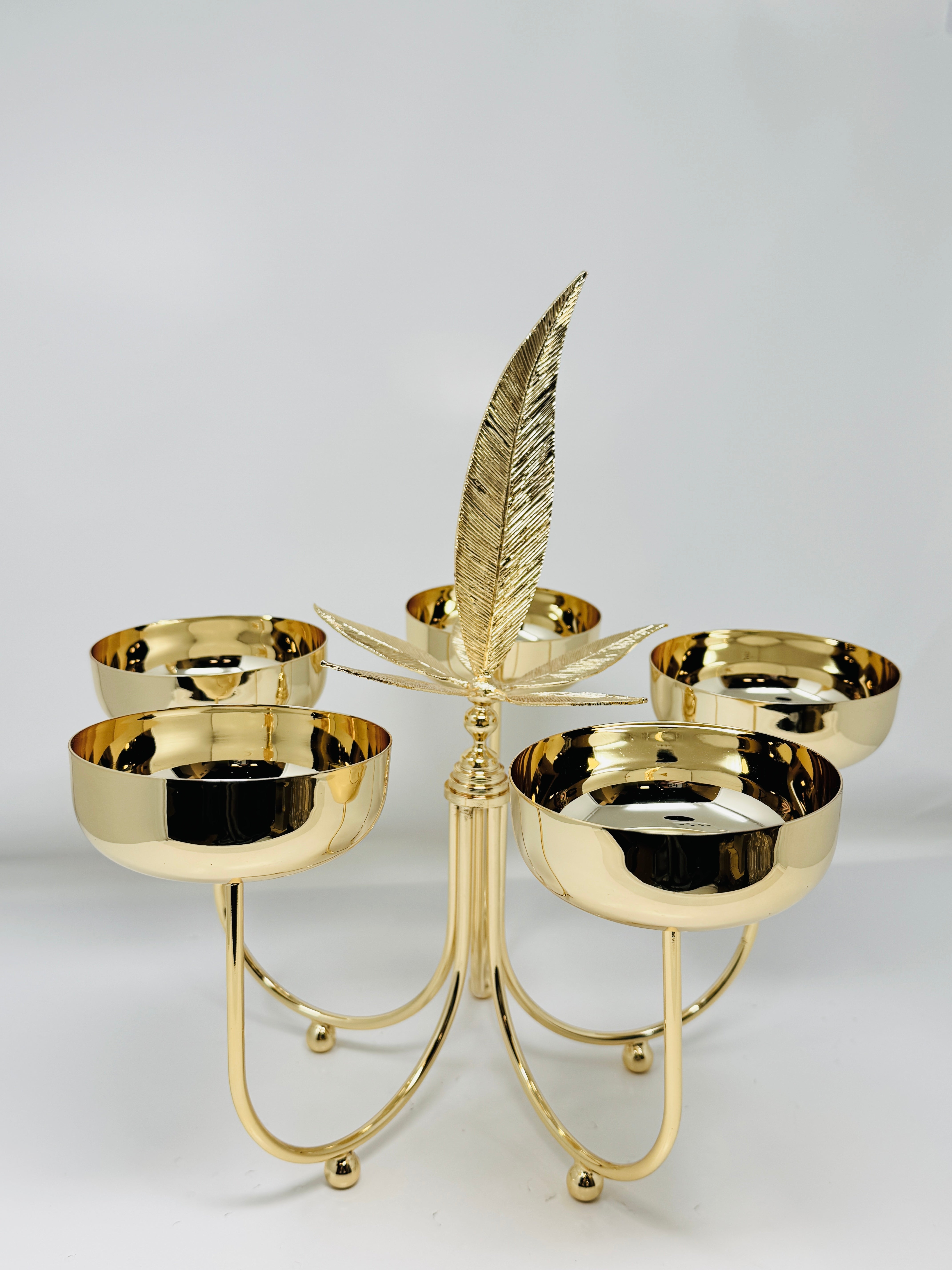 FIVE SECTION GOLD TONE SNACK BOWL ON STAND