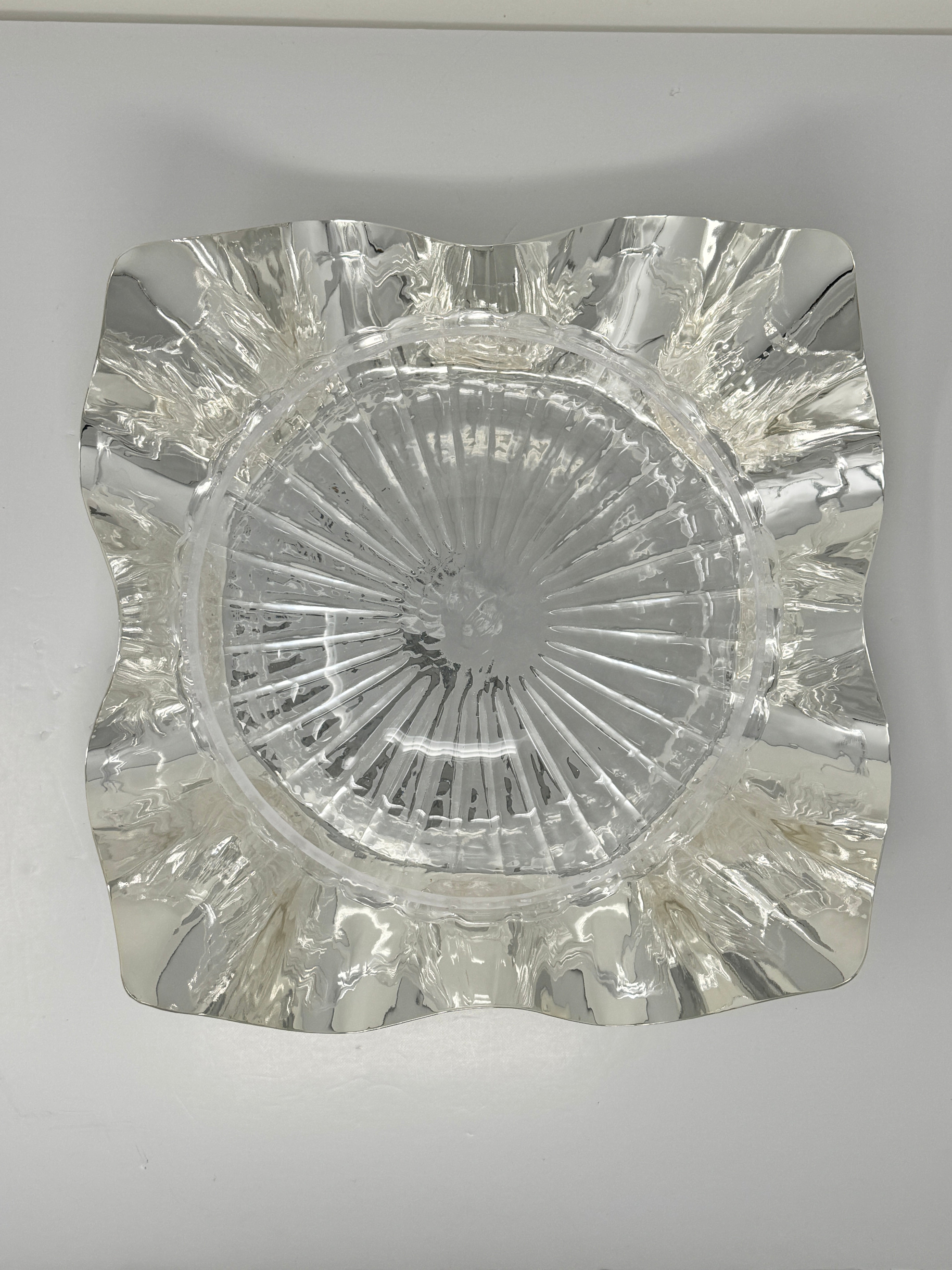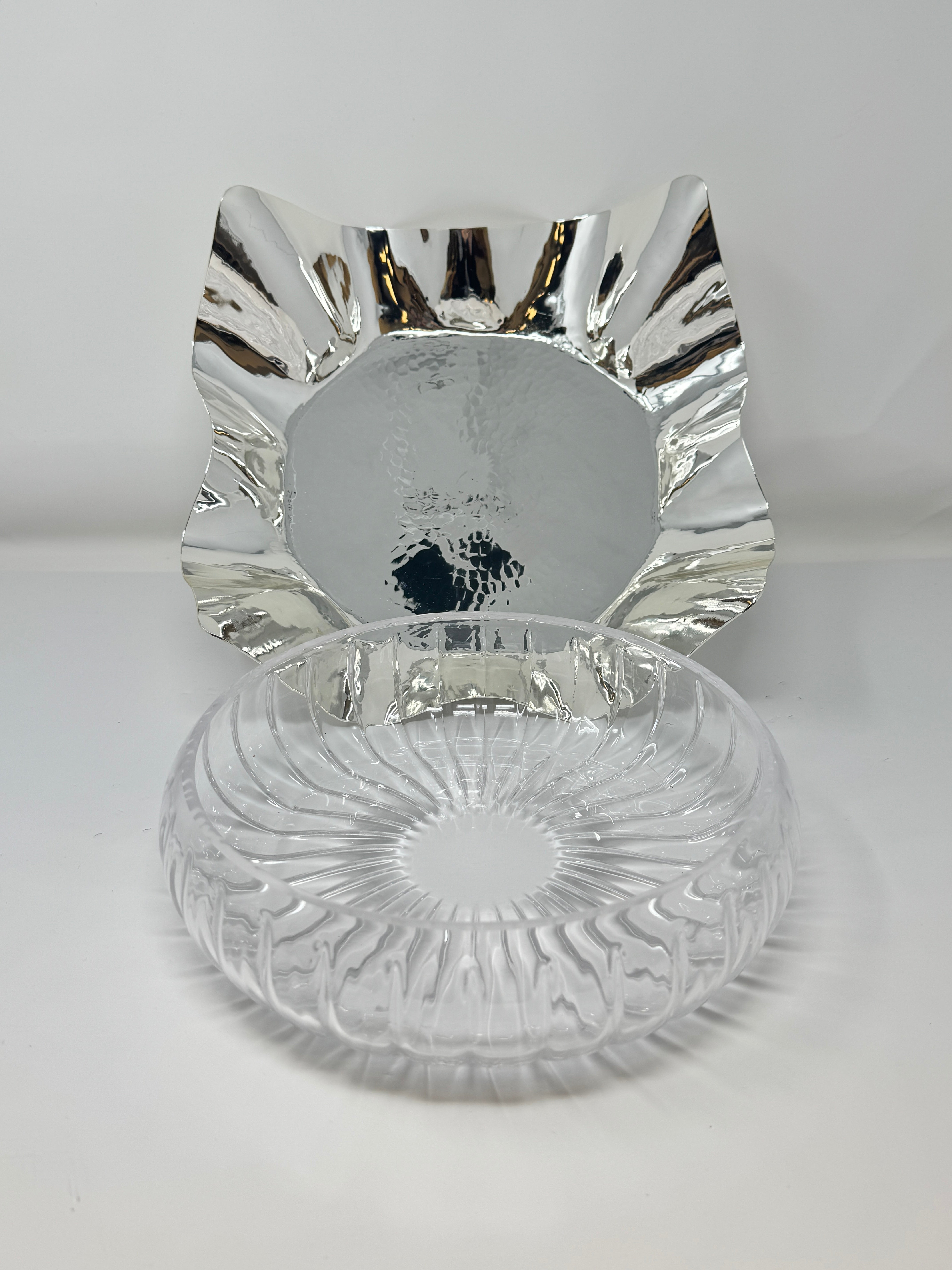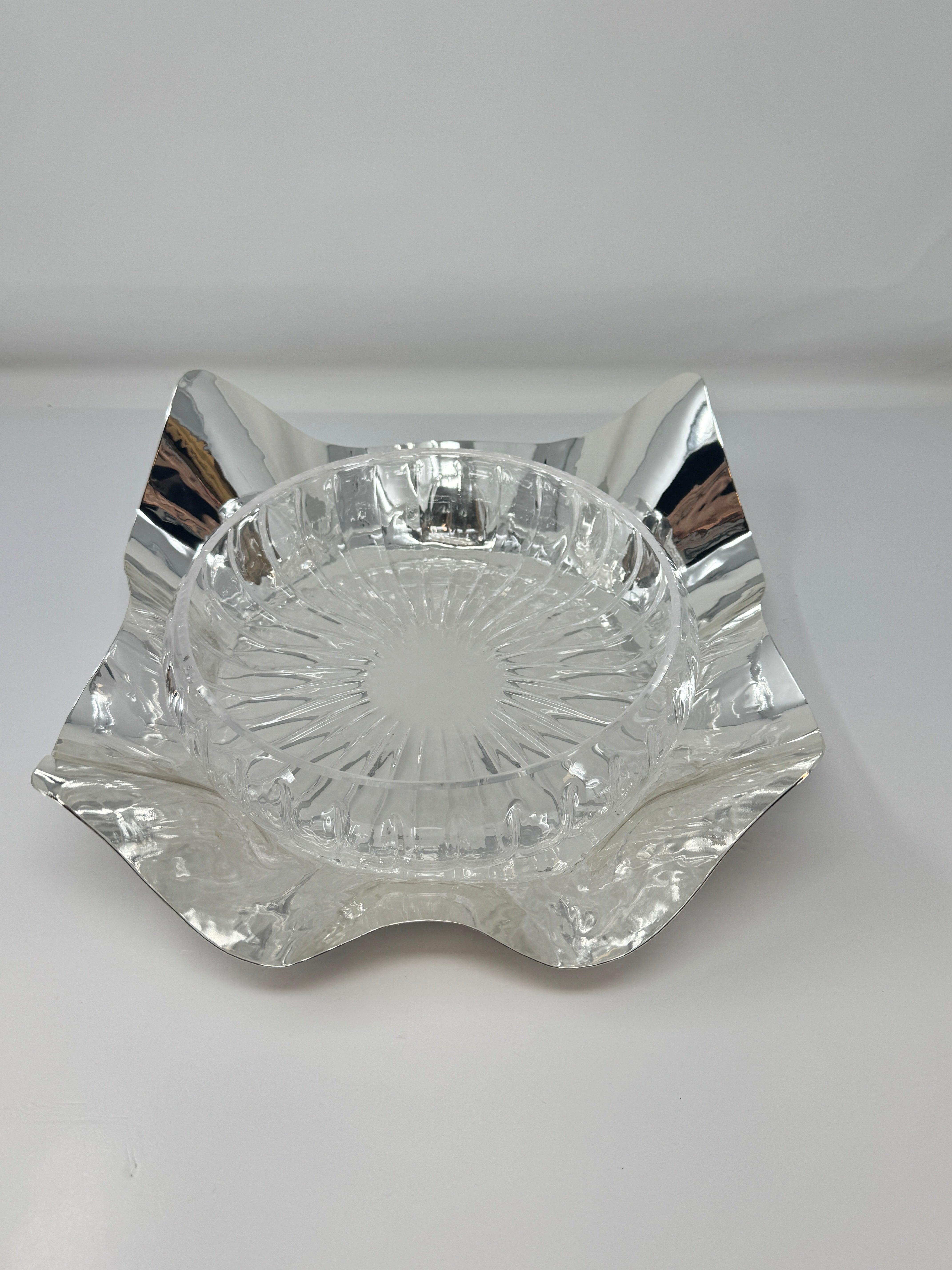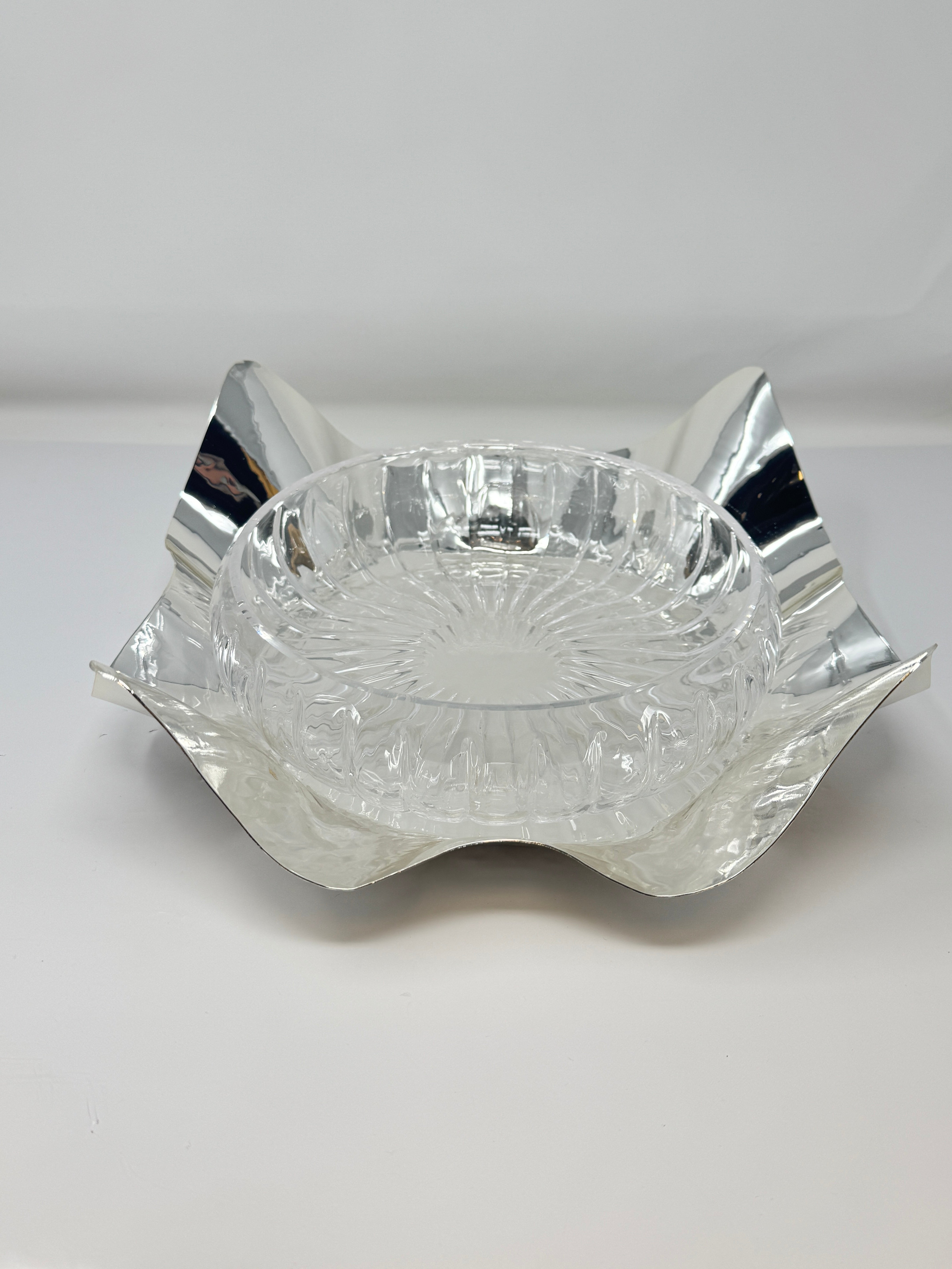 MEDIUM GLASS FRUIT BOWL ON SILVER TONE STAND