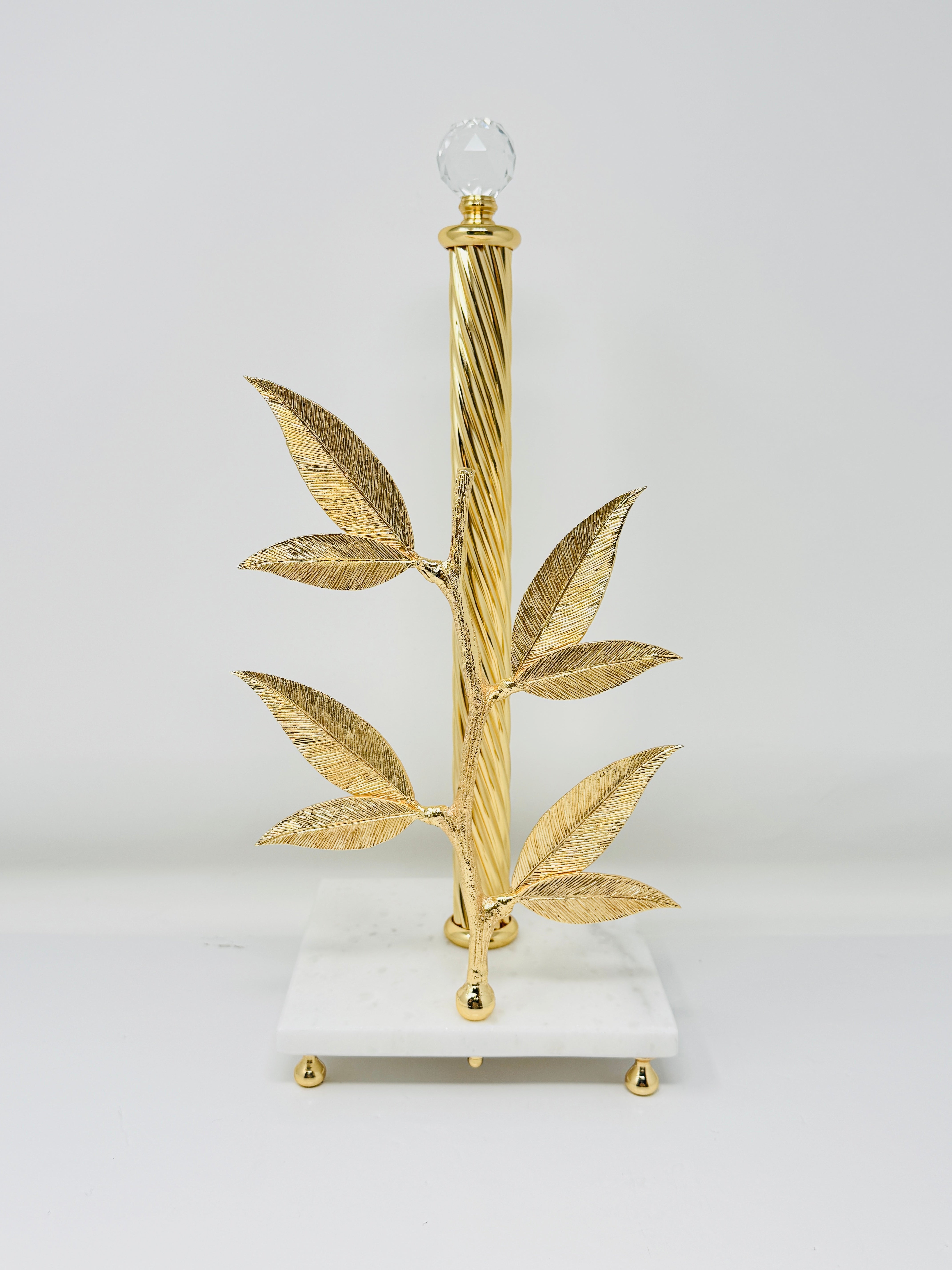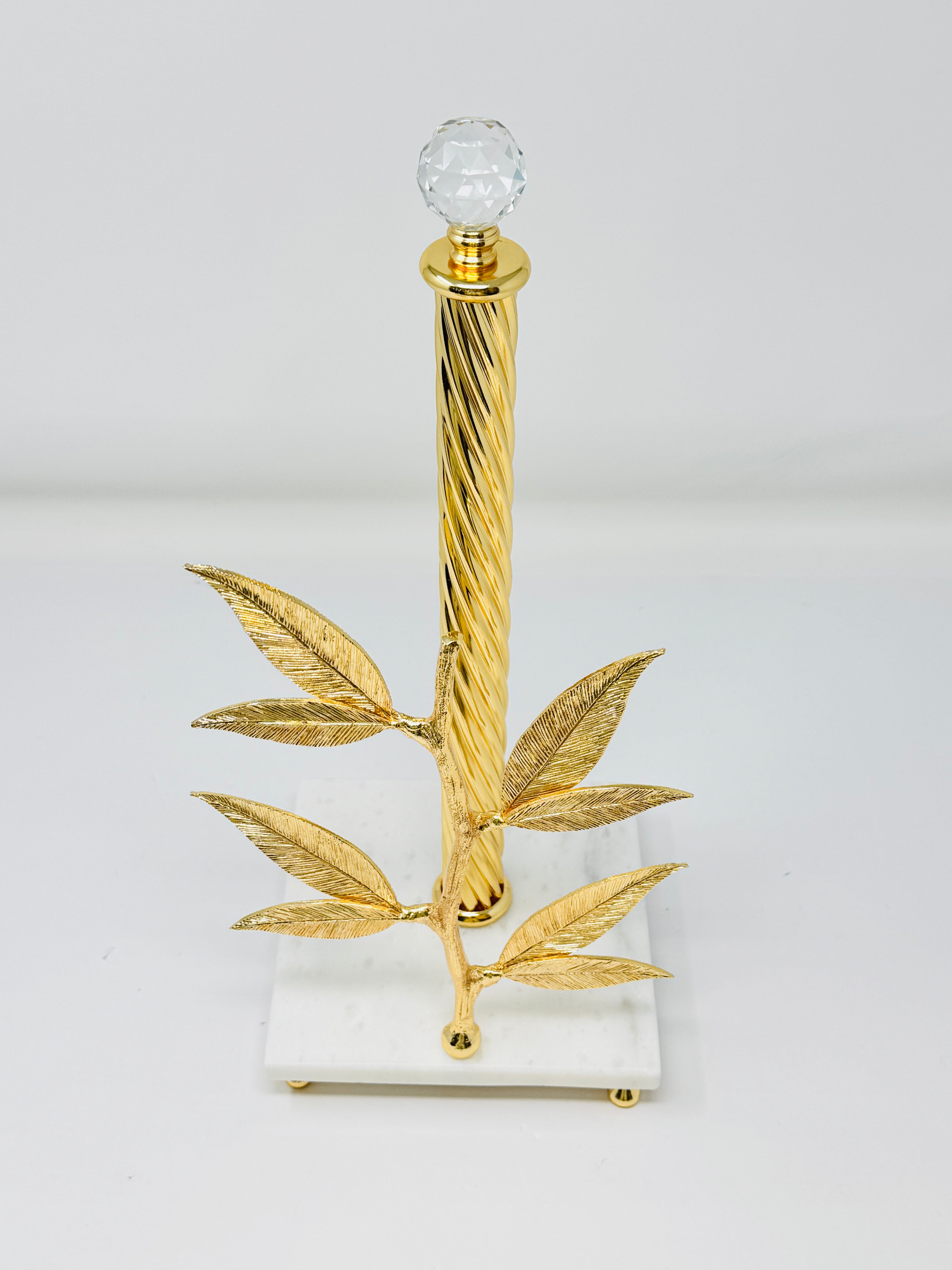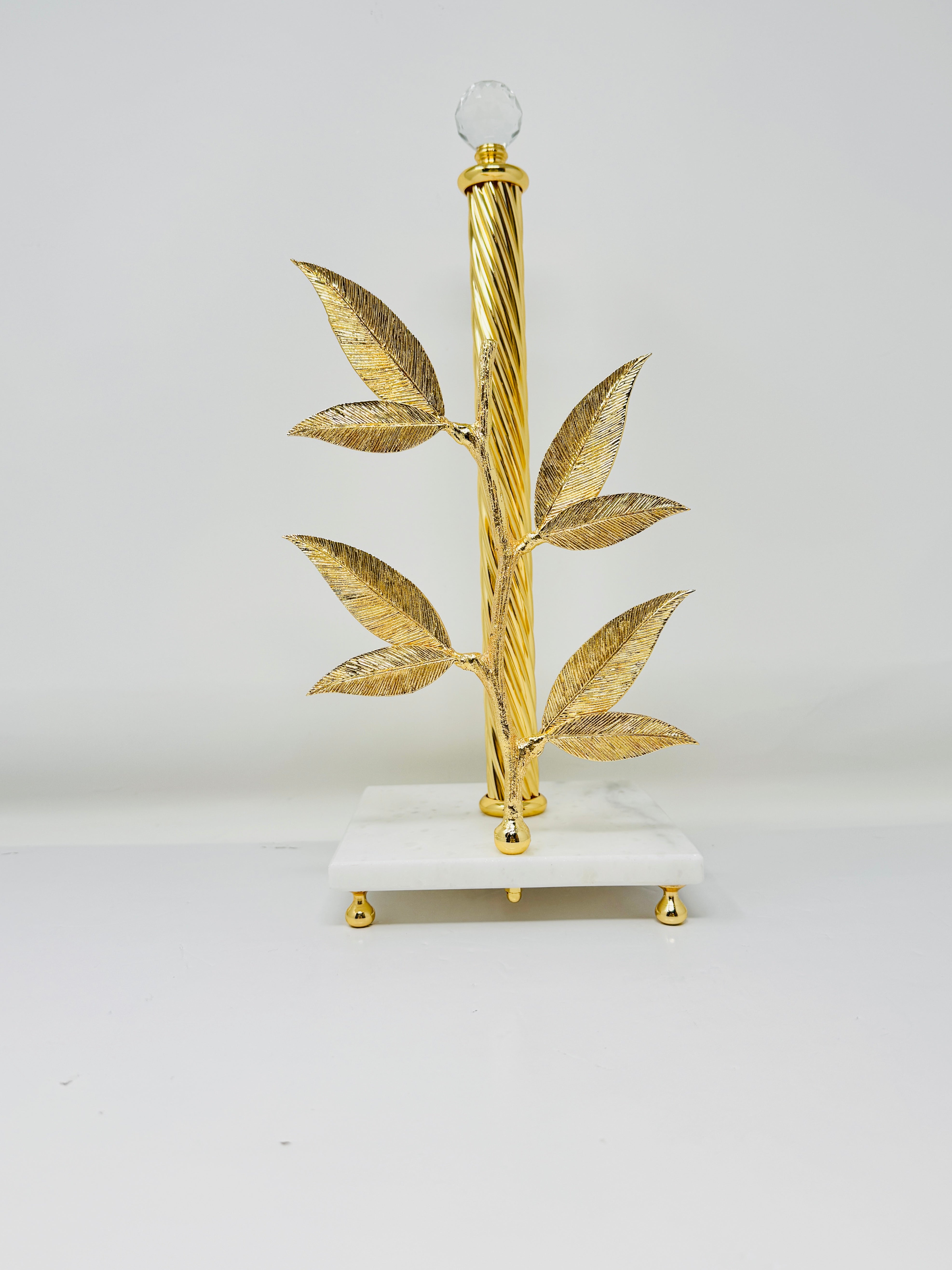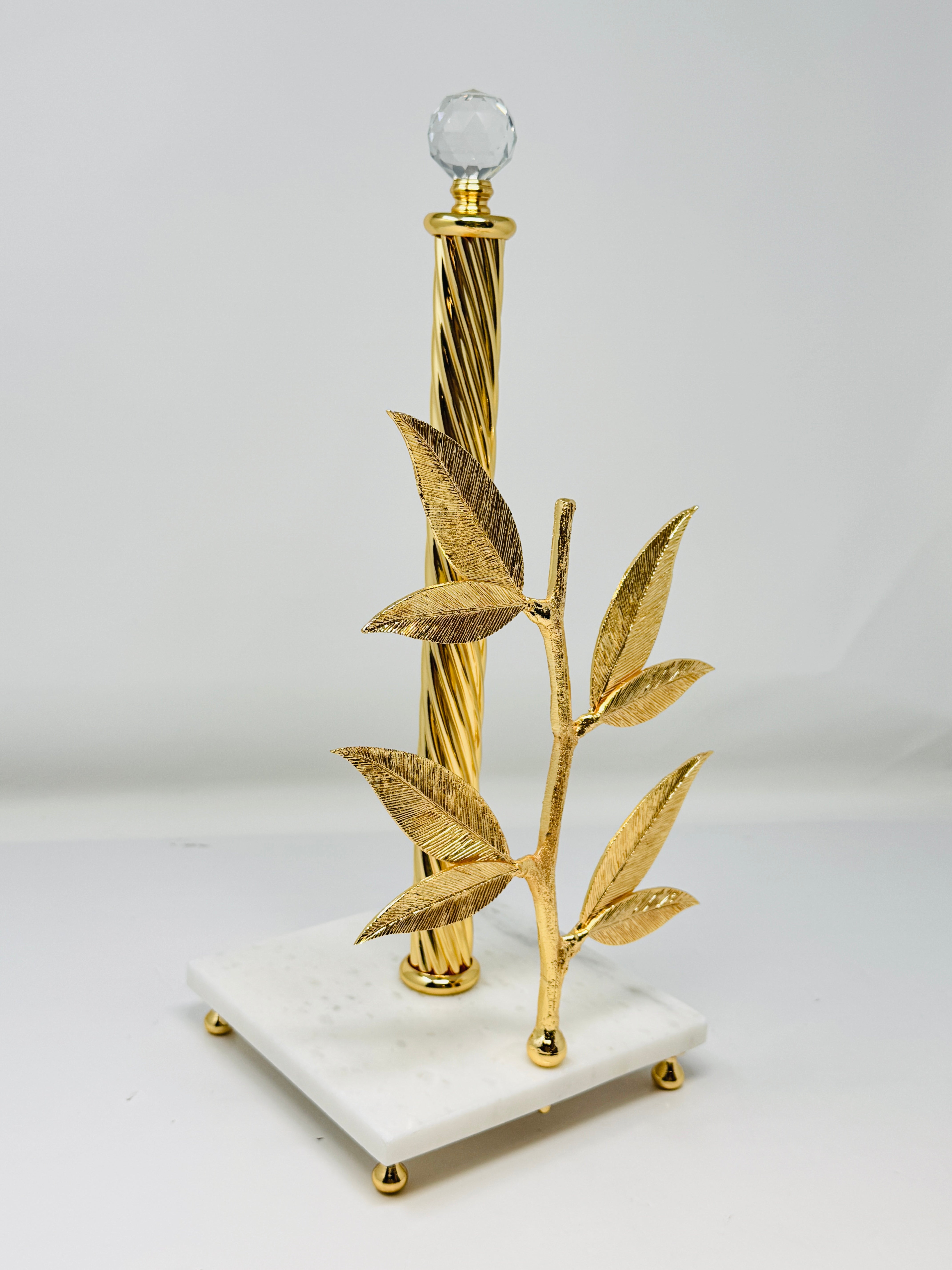 GOLDEN TONE PAPER TOWEL HOLDER ON MARBLE STAND, FLAT LEAF COLLECTION