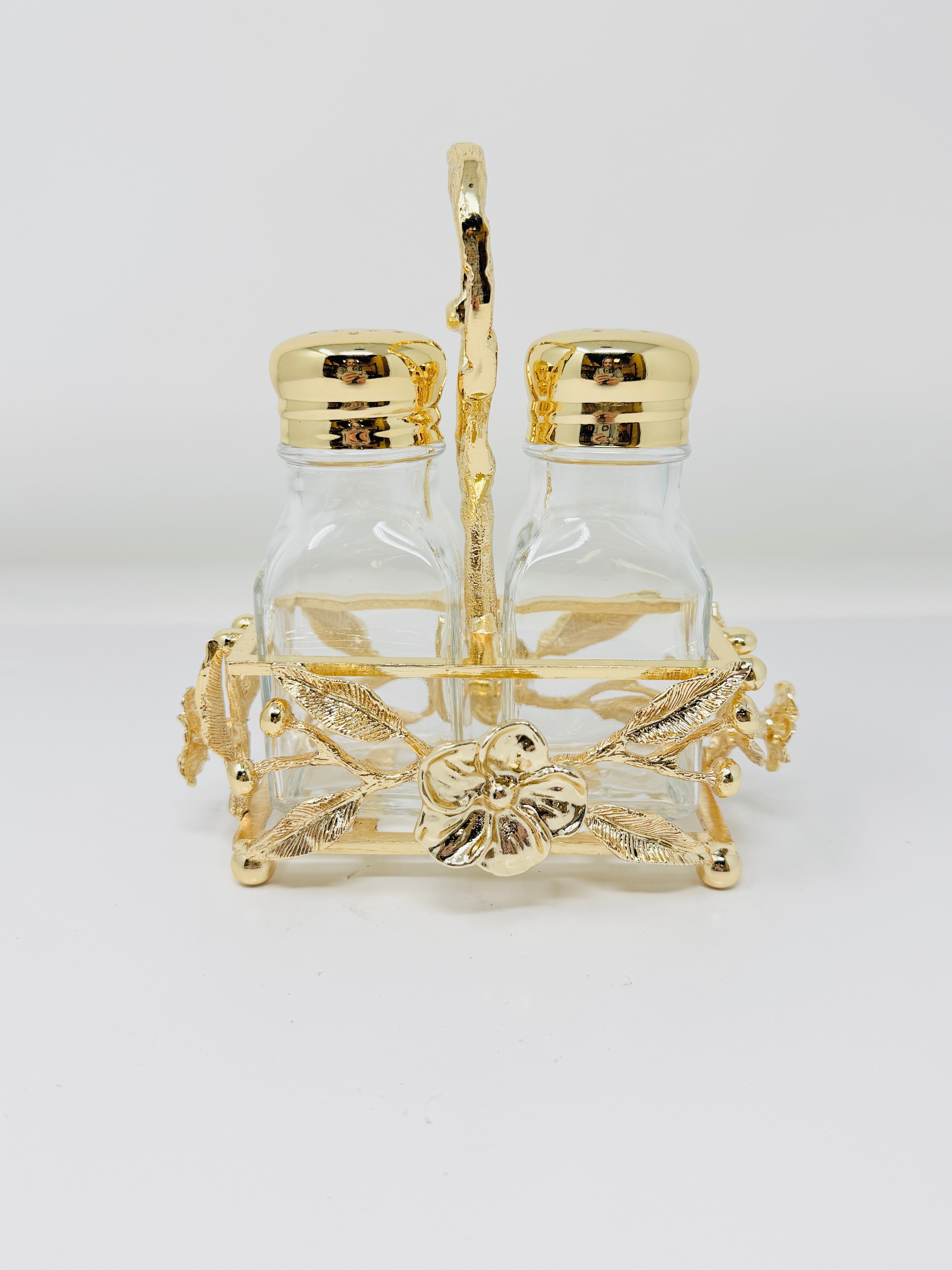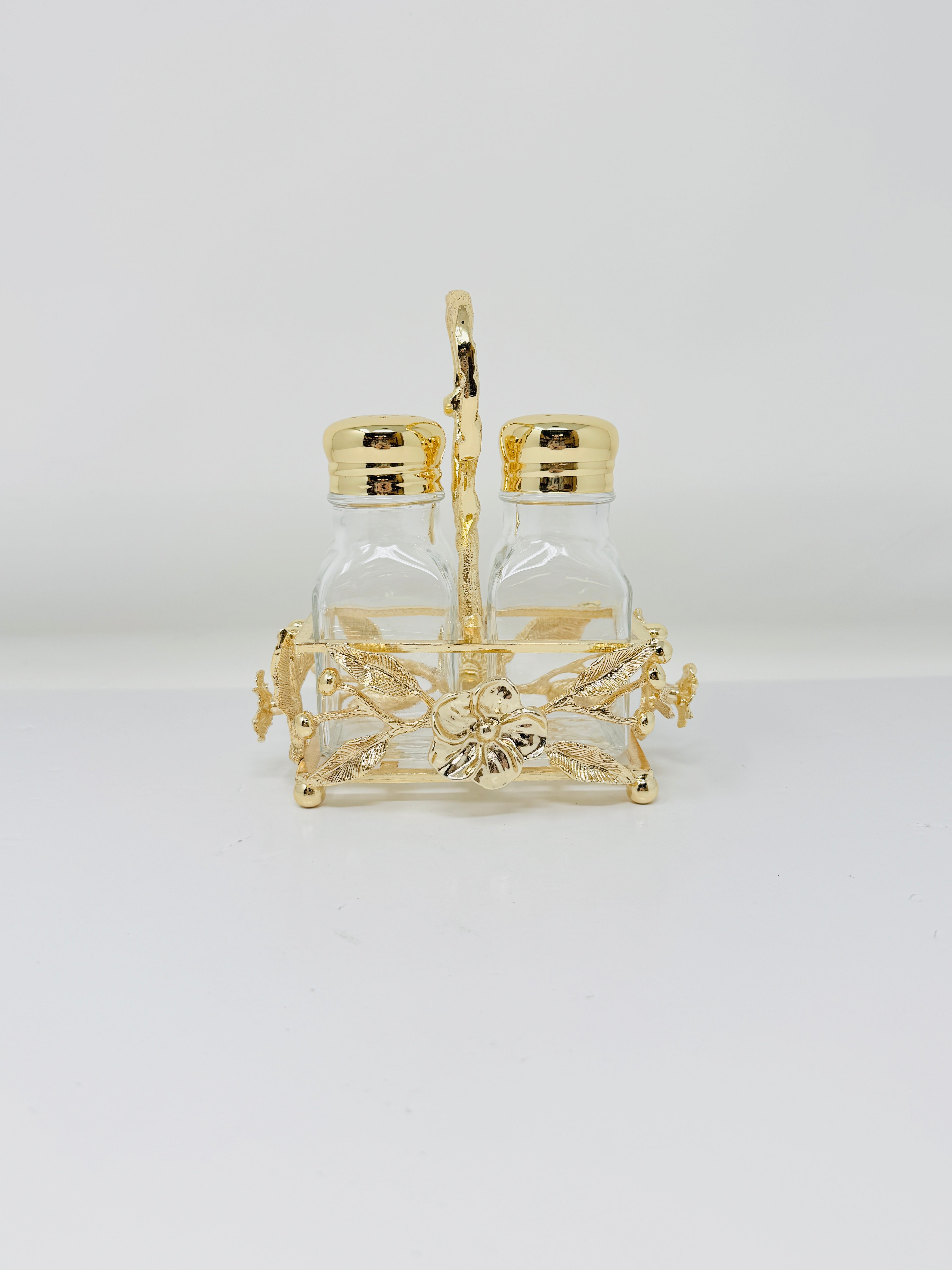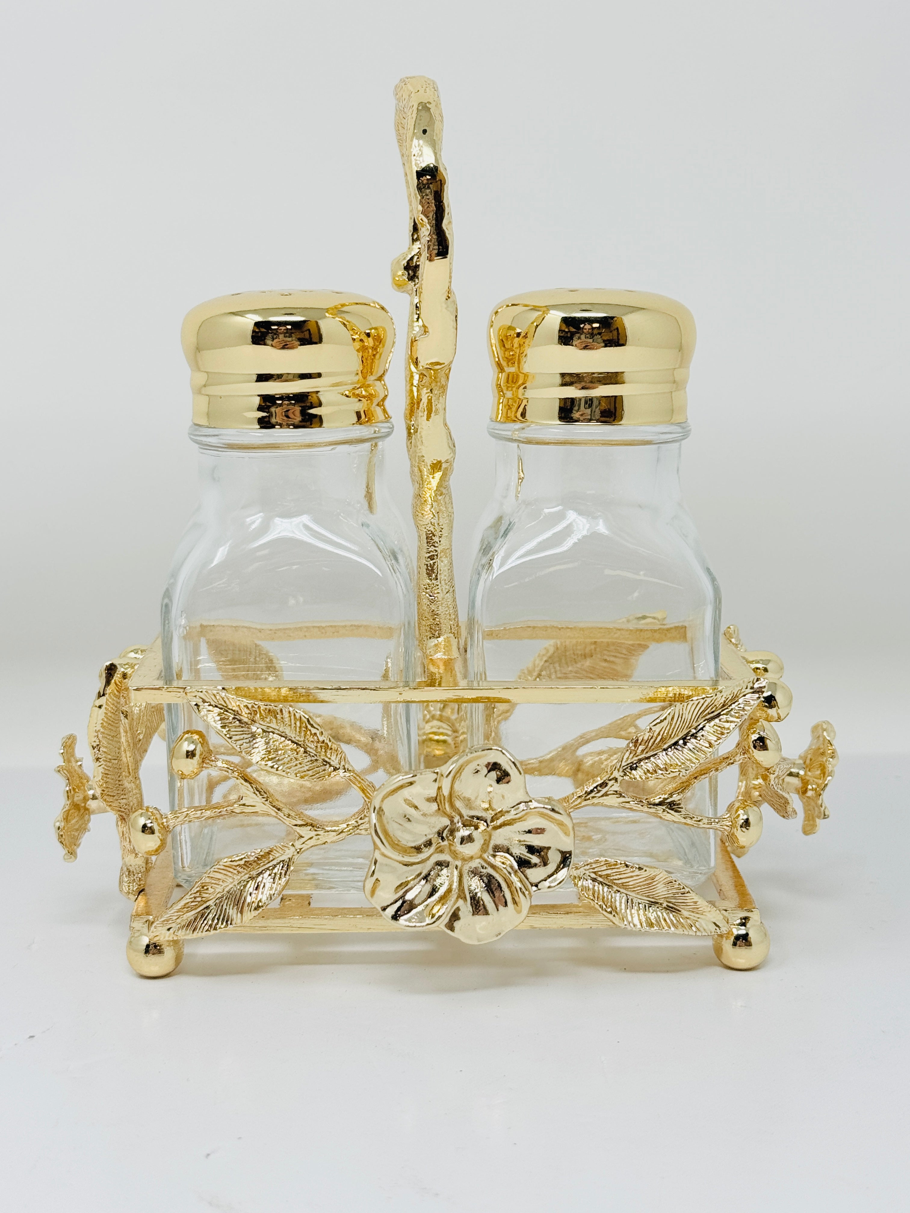 Whether you're entertaining guests or enjoying a quiet family dinner, these Golden Tone Salt and Pepper Shakers accented with Flowers are the perfect addition to your table. Elevate your dining experience with every sprinkle.