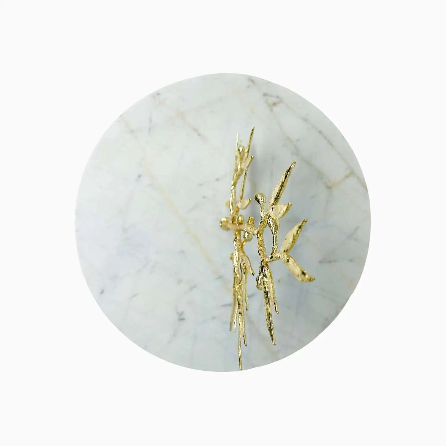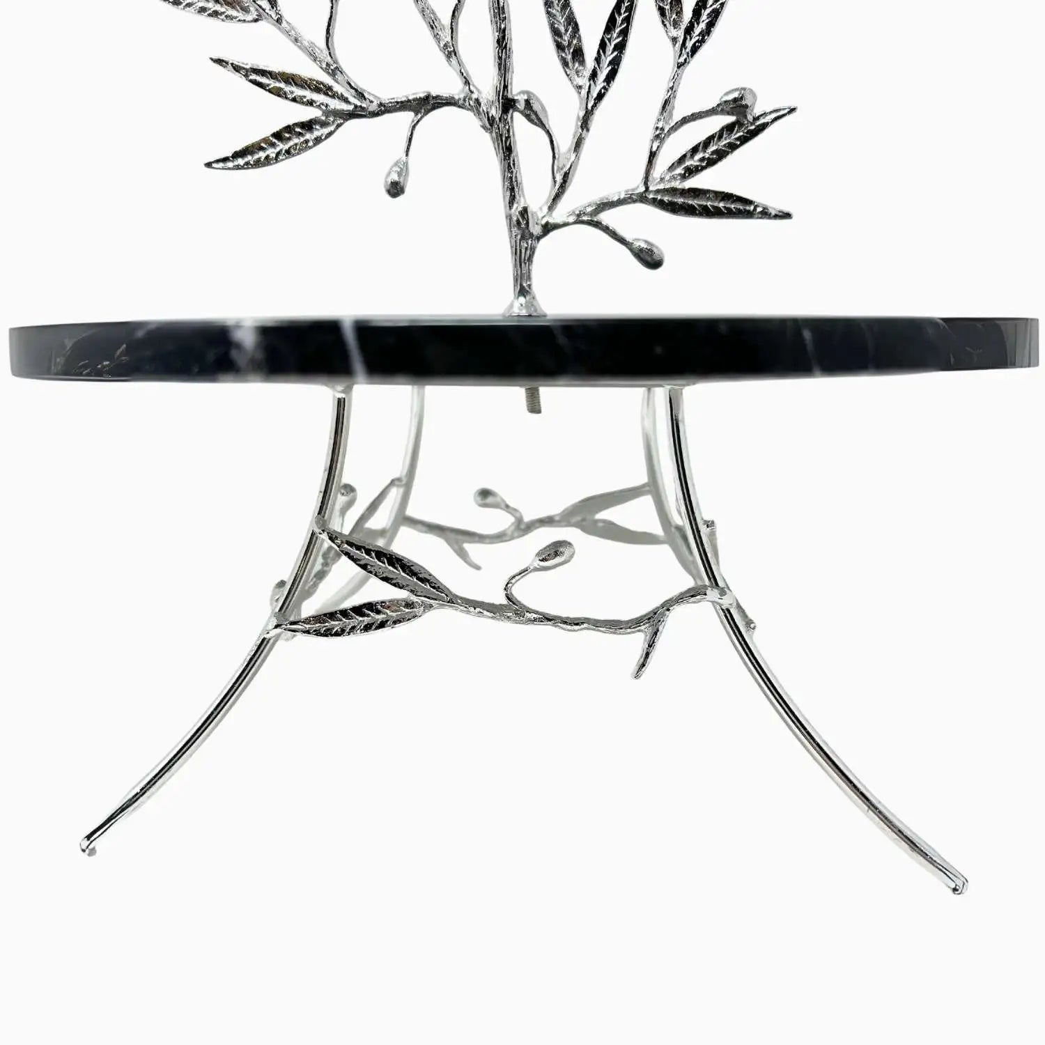 MARBLE SERVING DISH ON STAND, OLIVE LEAF COLLECTION