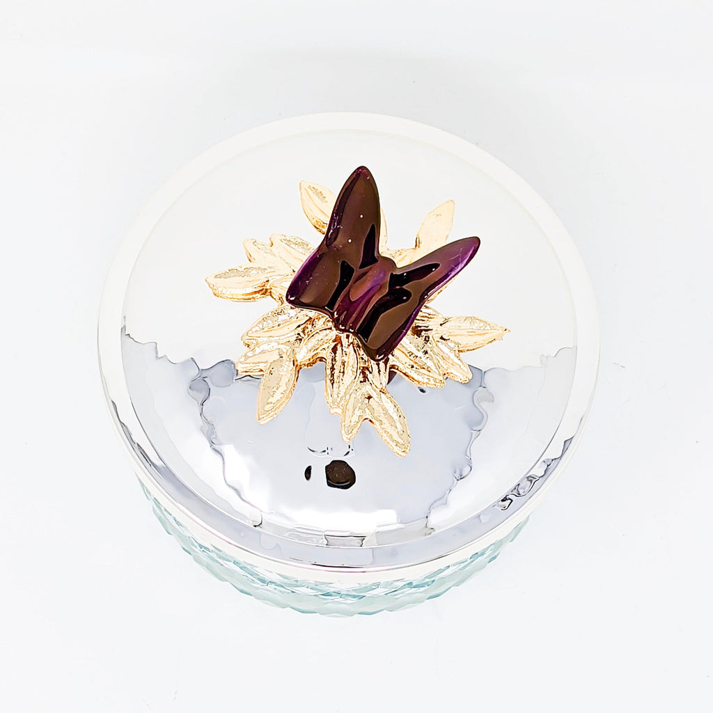 This exquisite glass jar, adorned with delicate butterfly accents, is a symbol of transformation and hope. Perfect for serving snacks or adding a decorative touch to your space, this piece is sure to elevate your home decor.