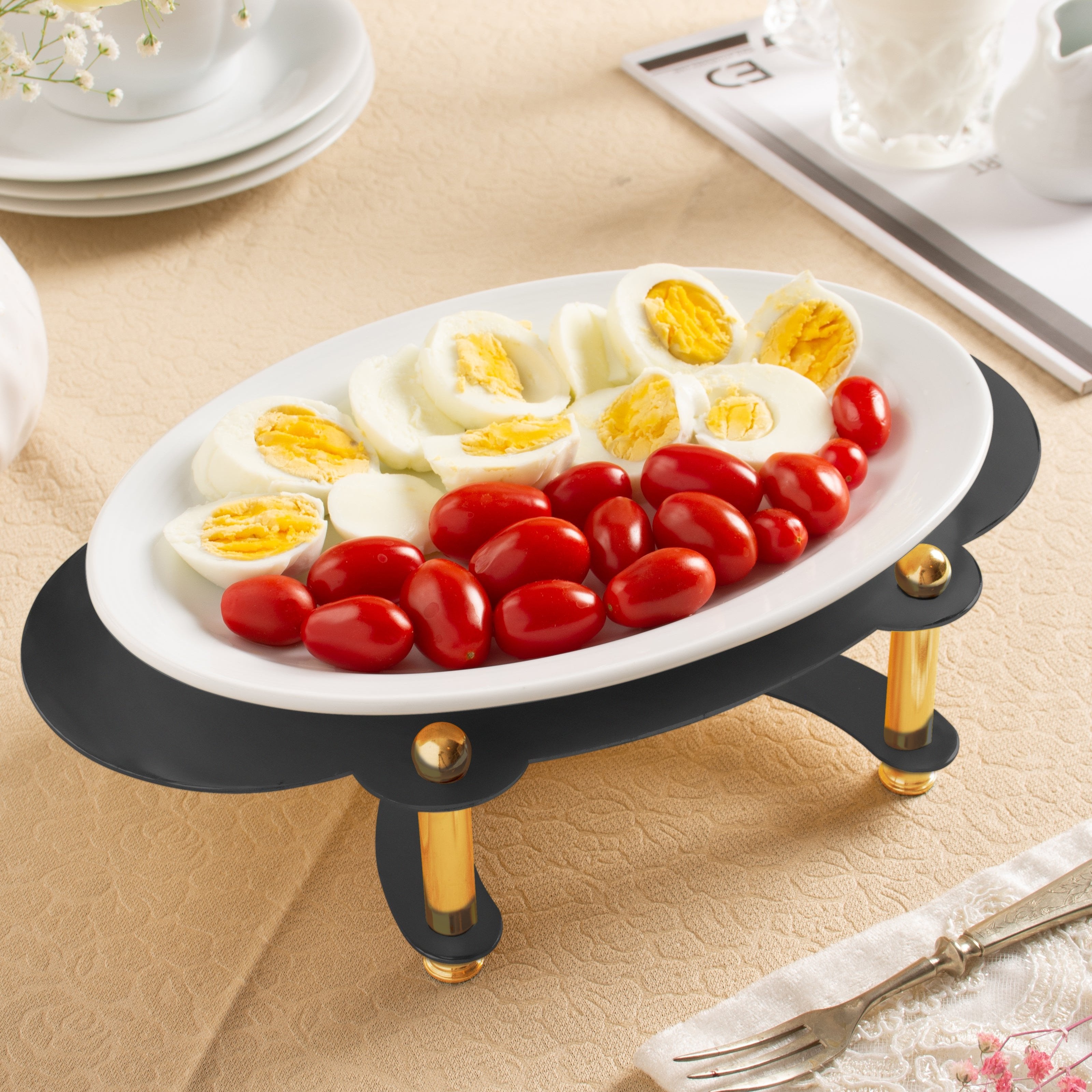 Oval Porcelain Serving Plate with Brass Stand - A Touch of Modern Elegance for Hosting