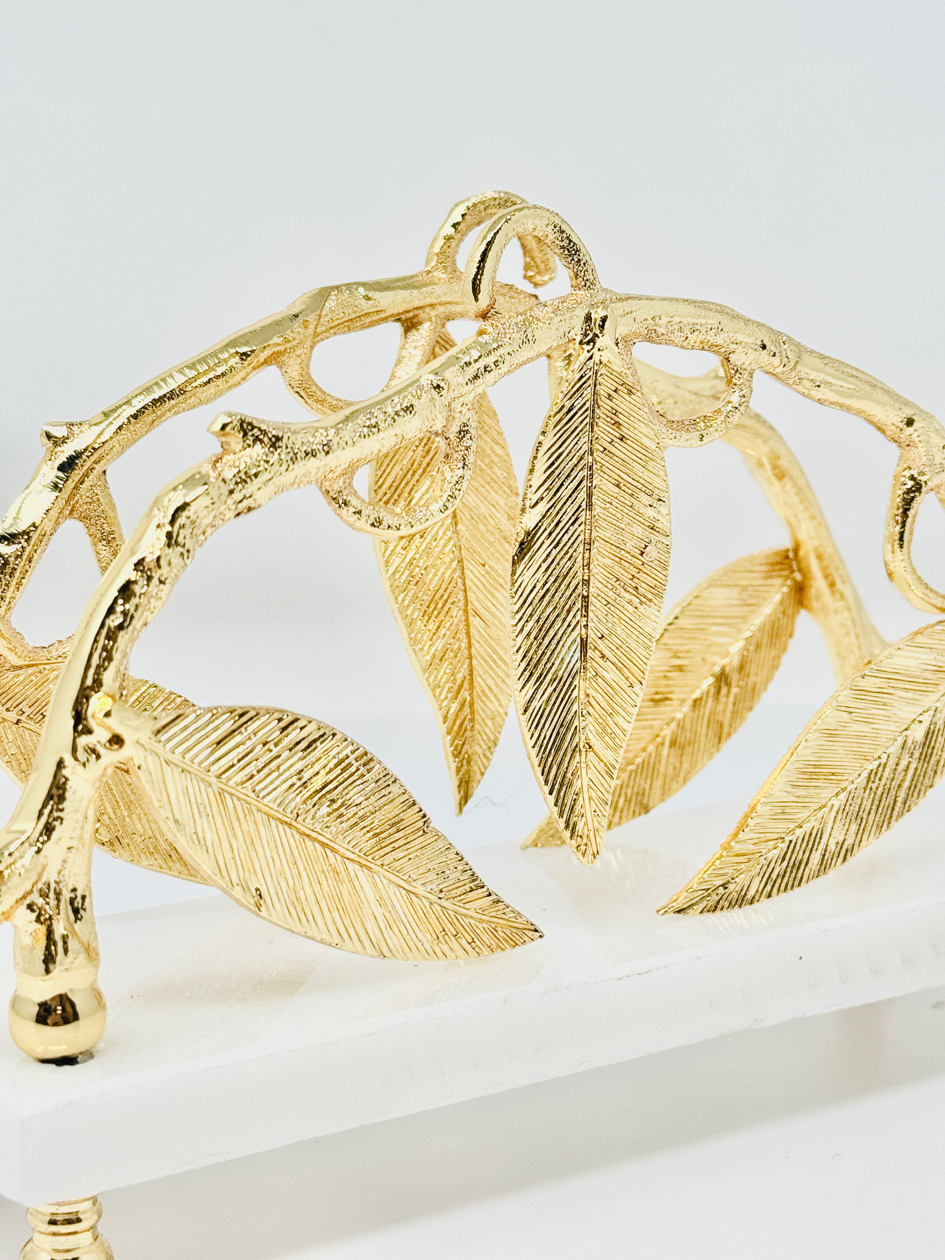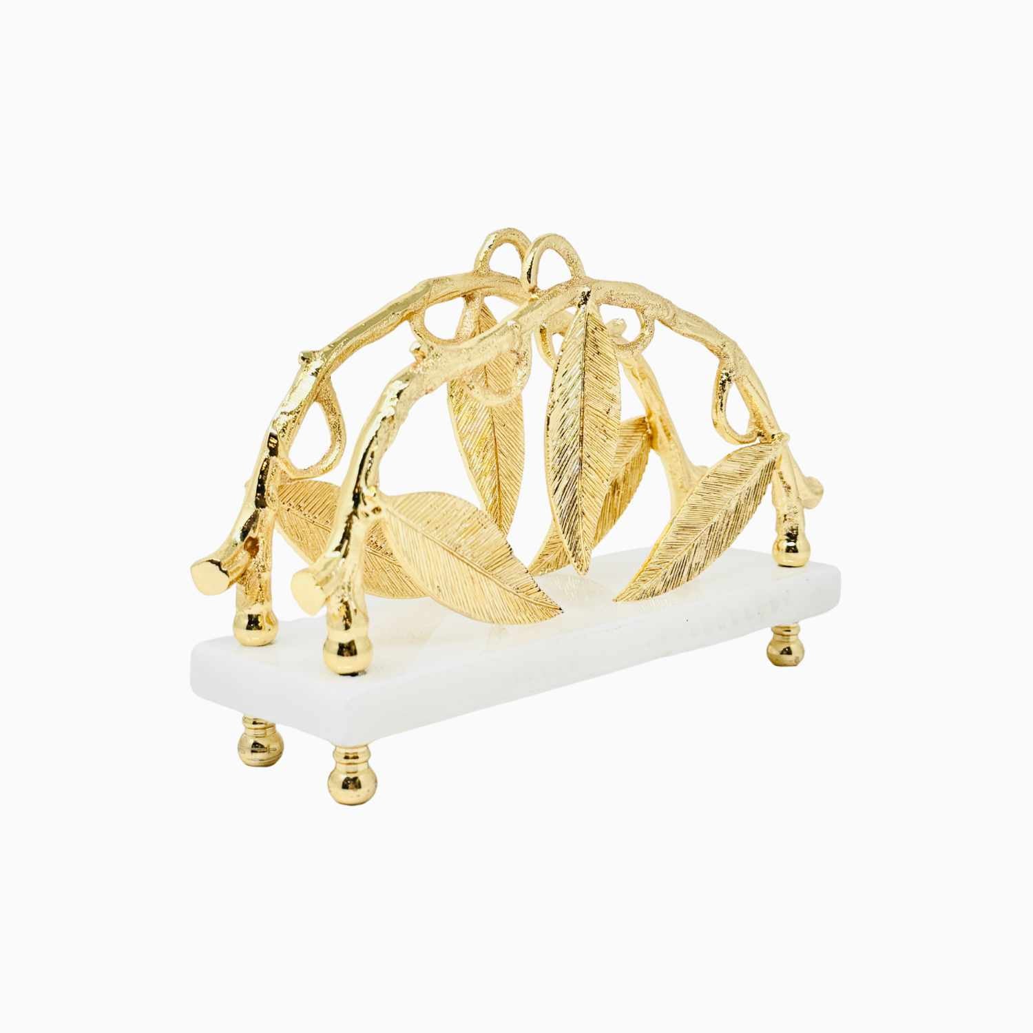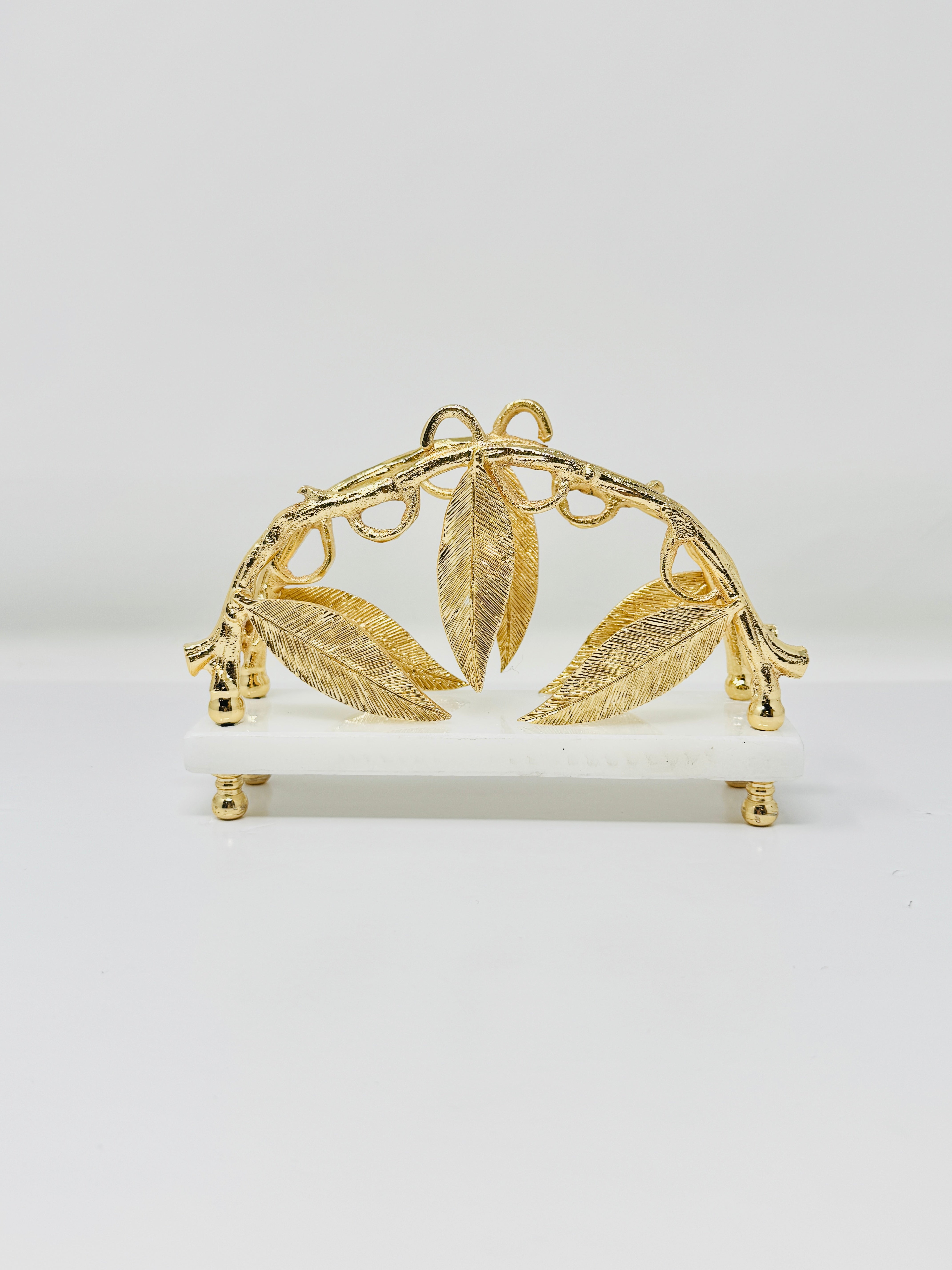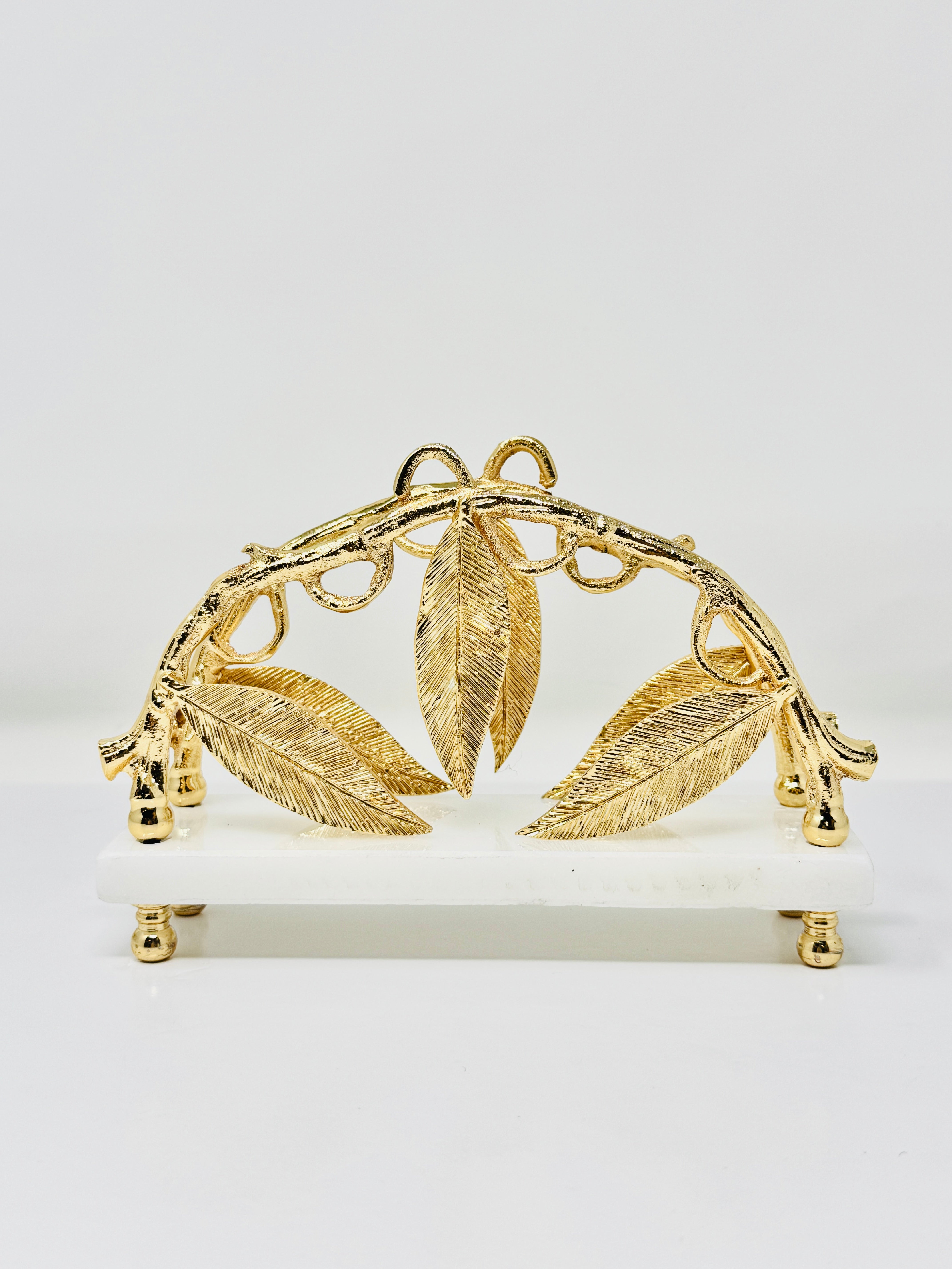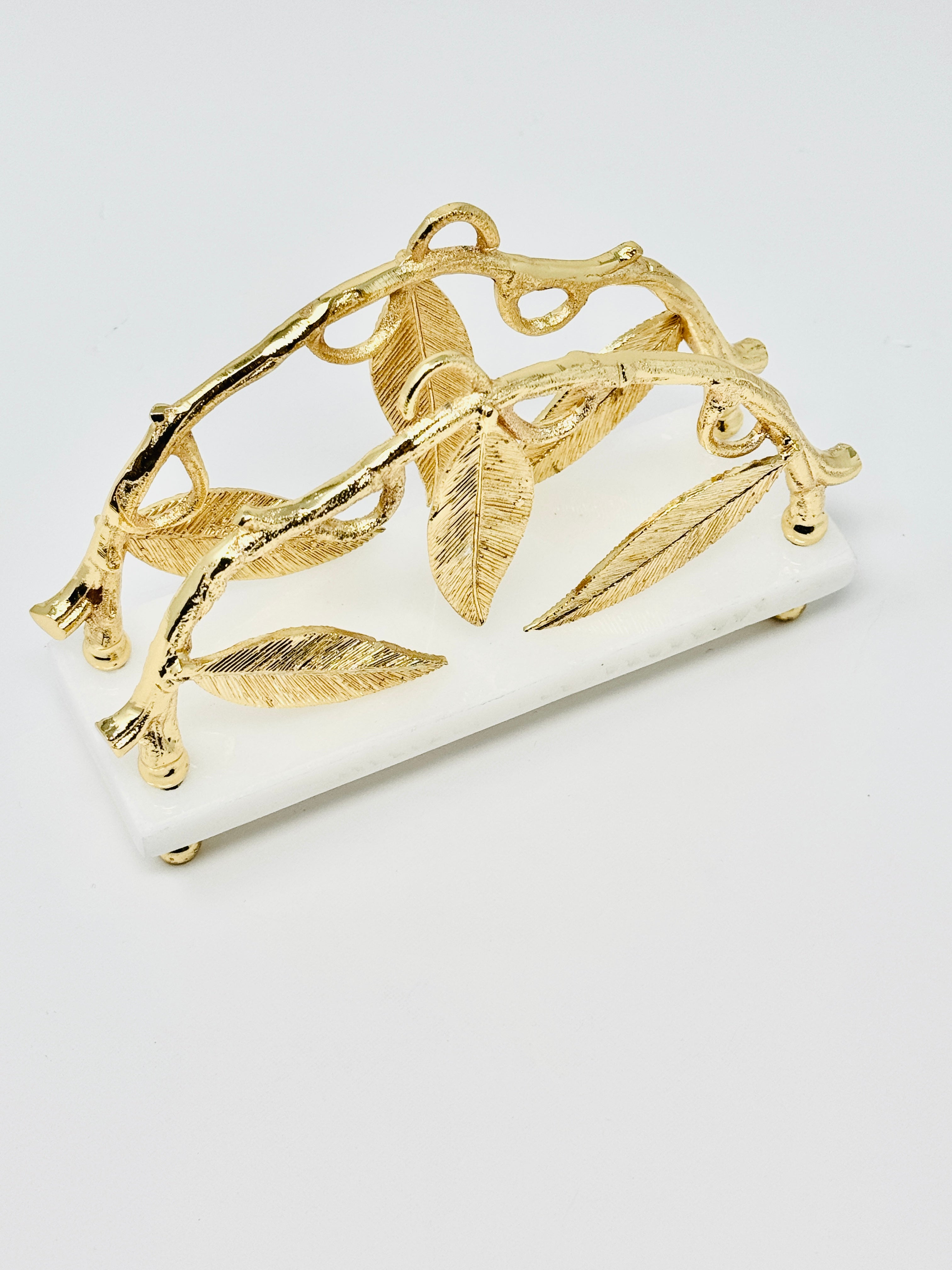 This exquisite marble napkin holder, adorned with golden Leaf accents, is a symbol of elegance and sophistication. Perfect for elevating your table setting, this piece is sure to impress your guests.