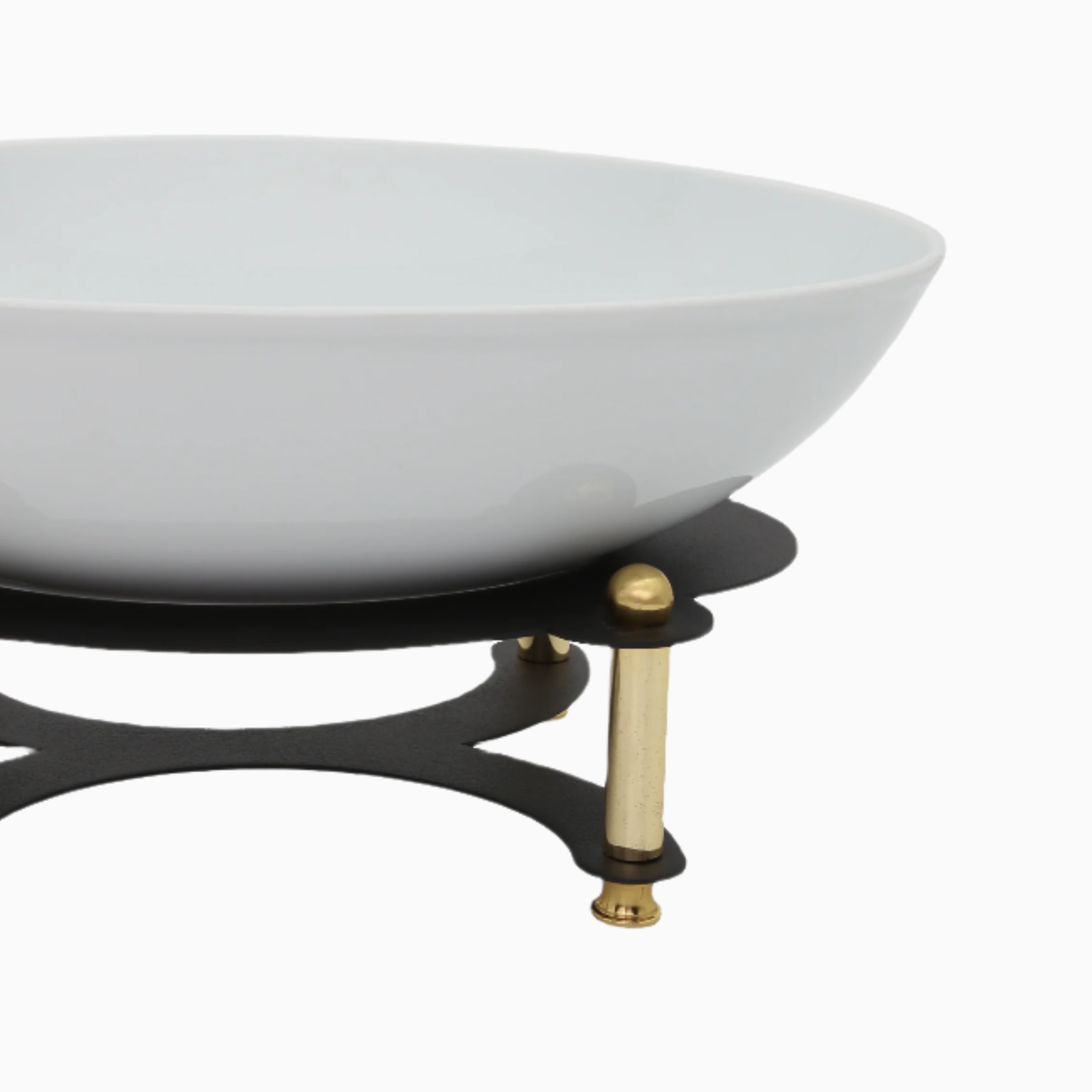 ROUND SOUP BOWL ON BLACK AND GOLD STAND