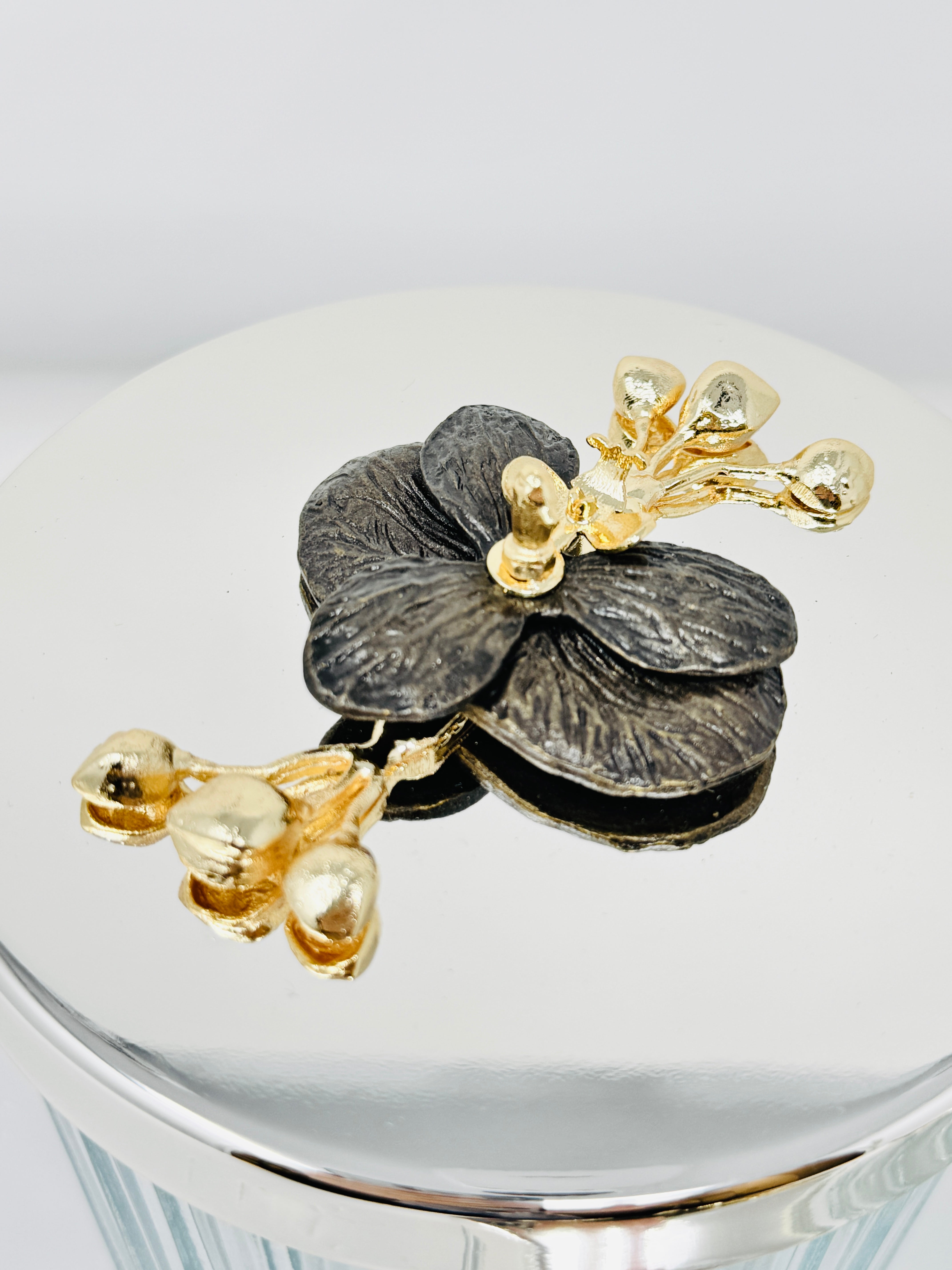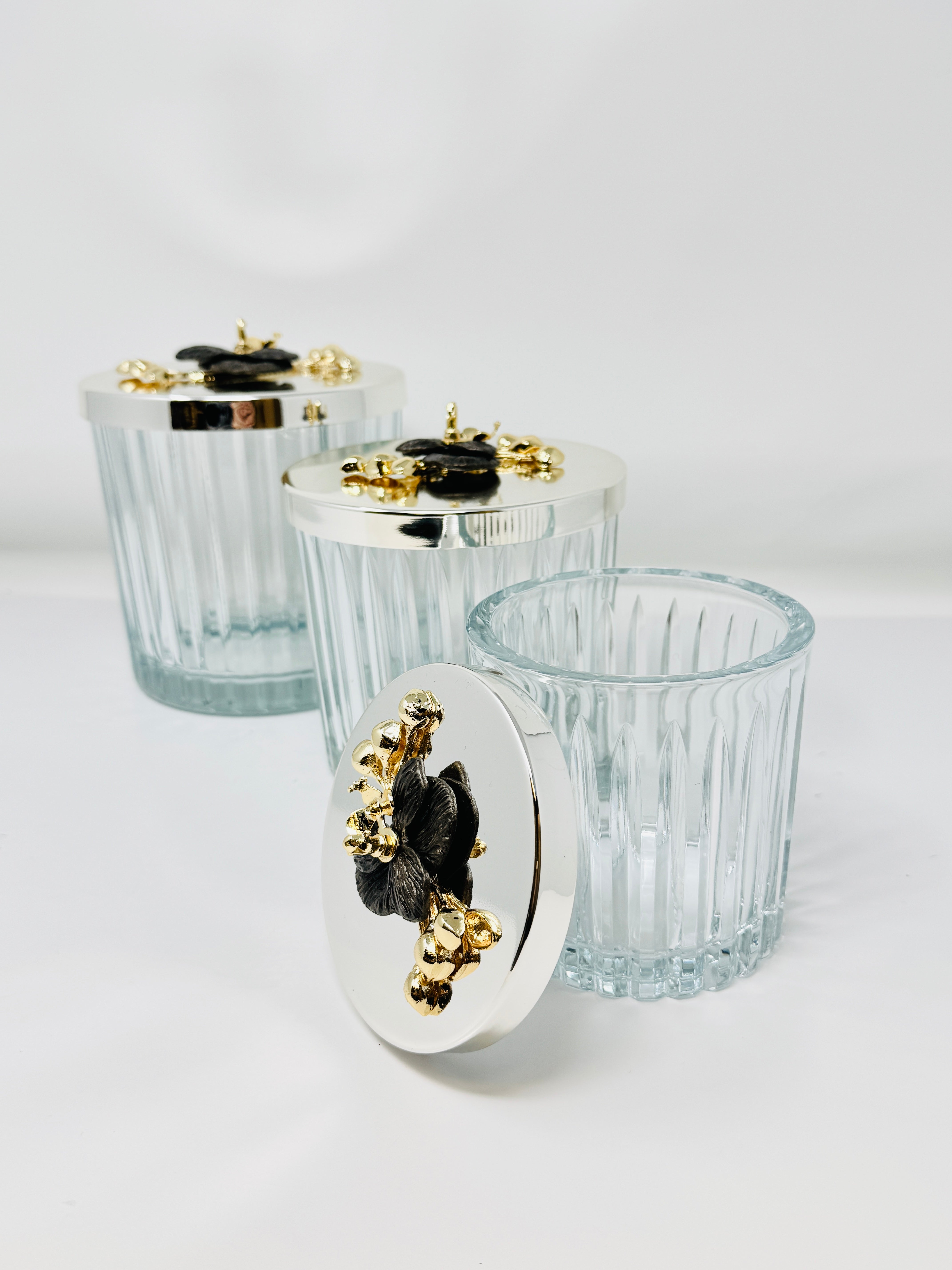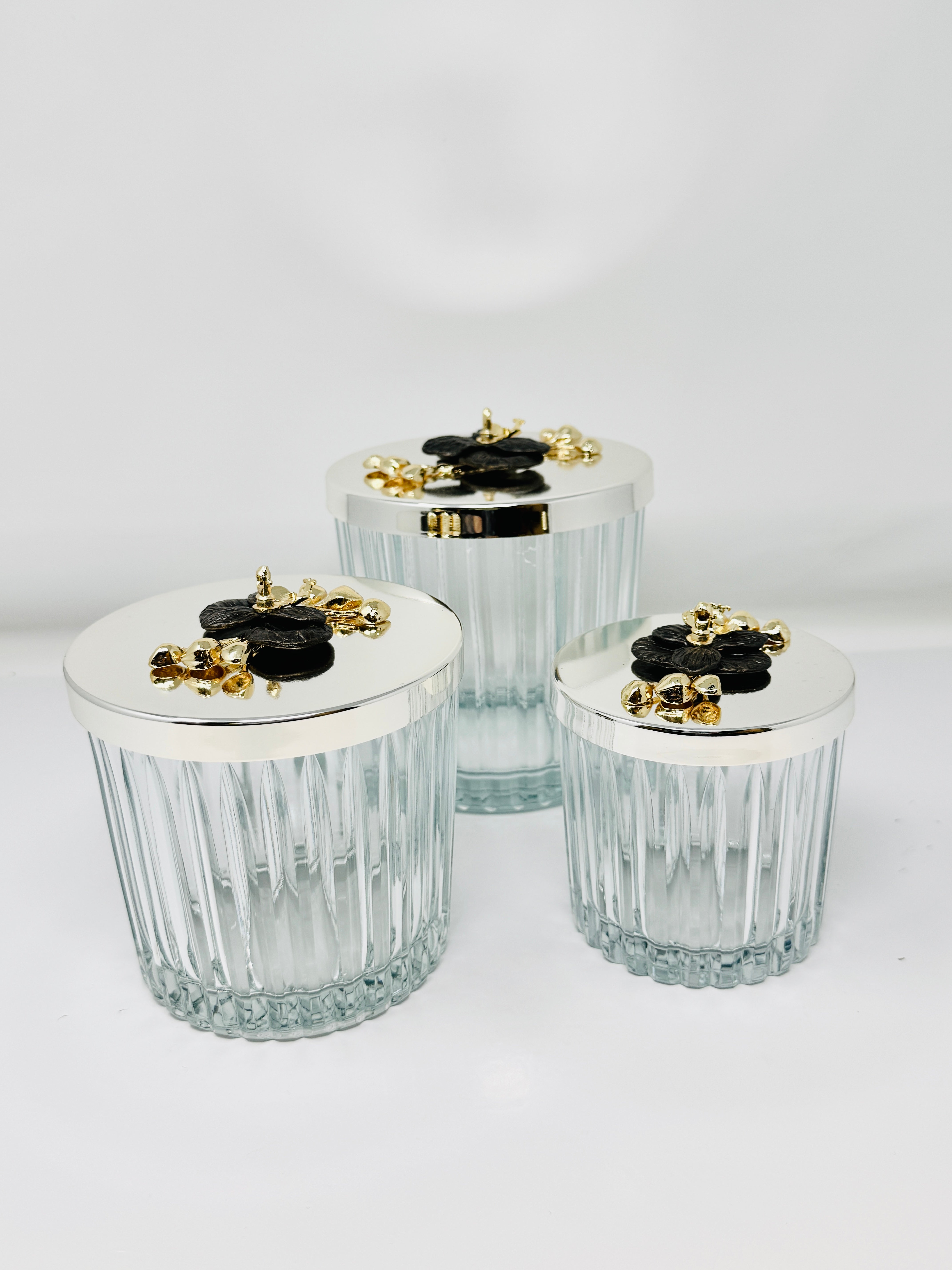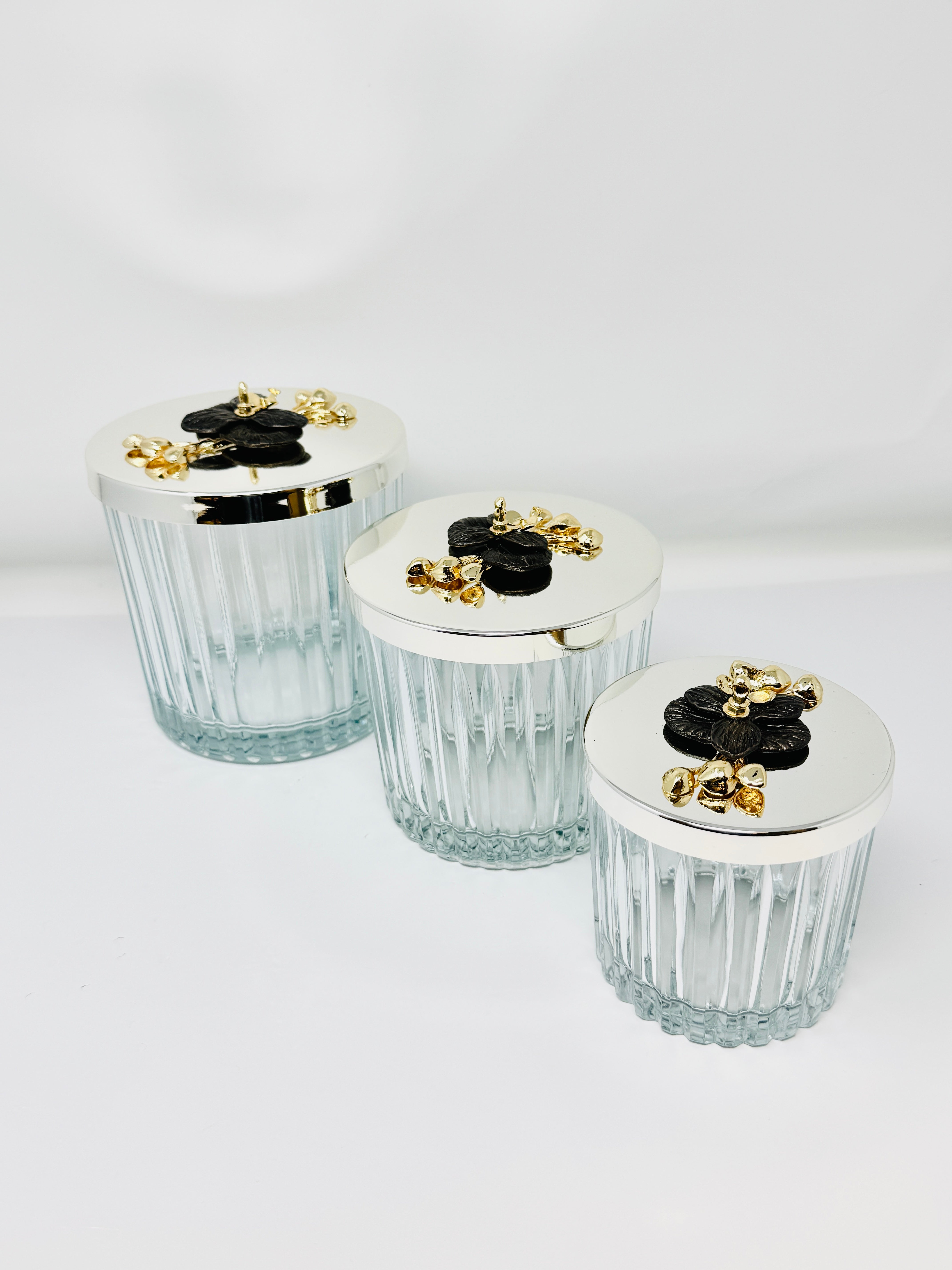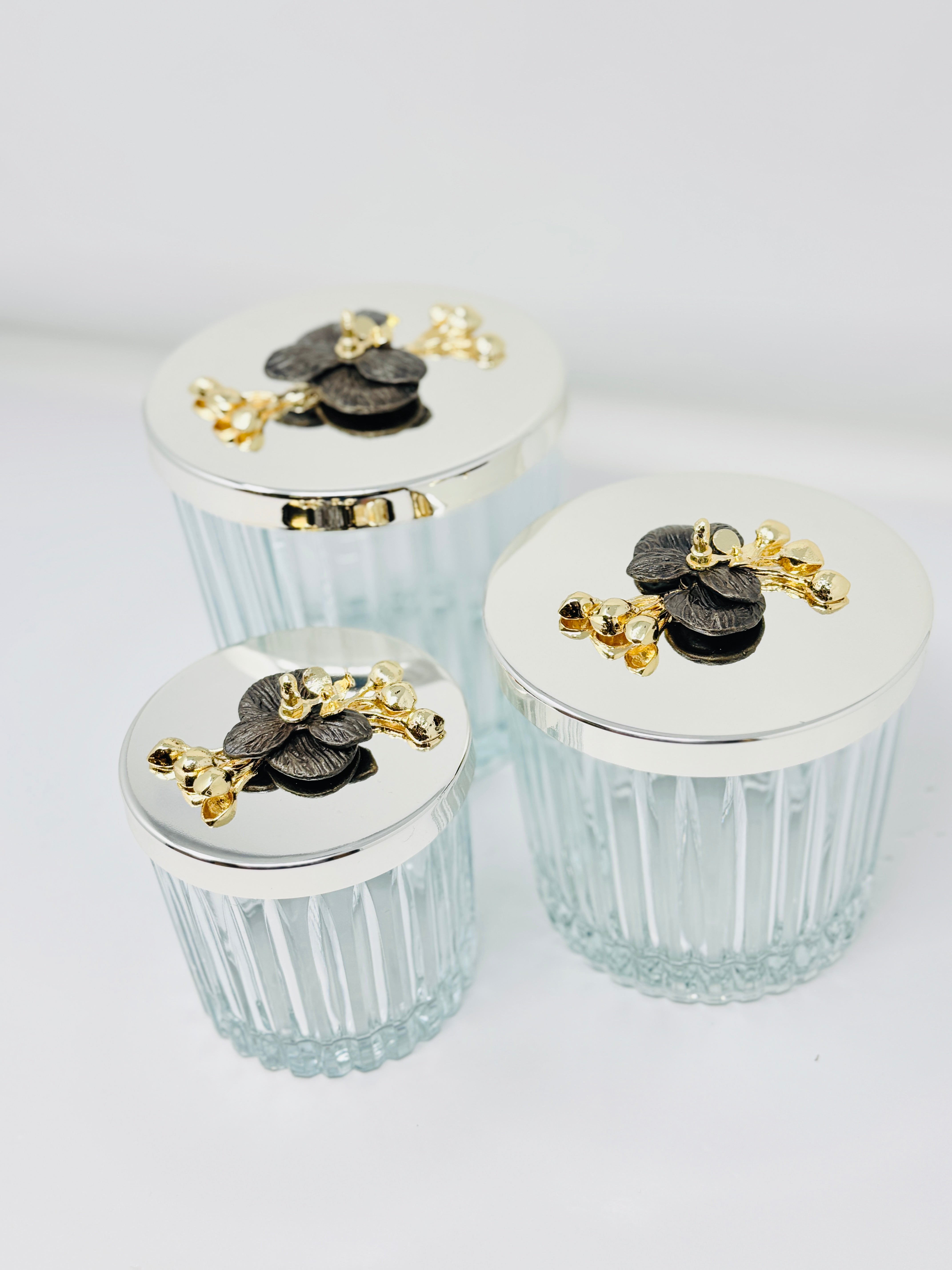 SILVER TONE GLASS JAR SET WITH LID, ORCHID COLLECTION