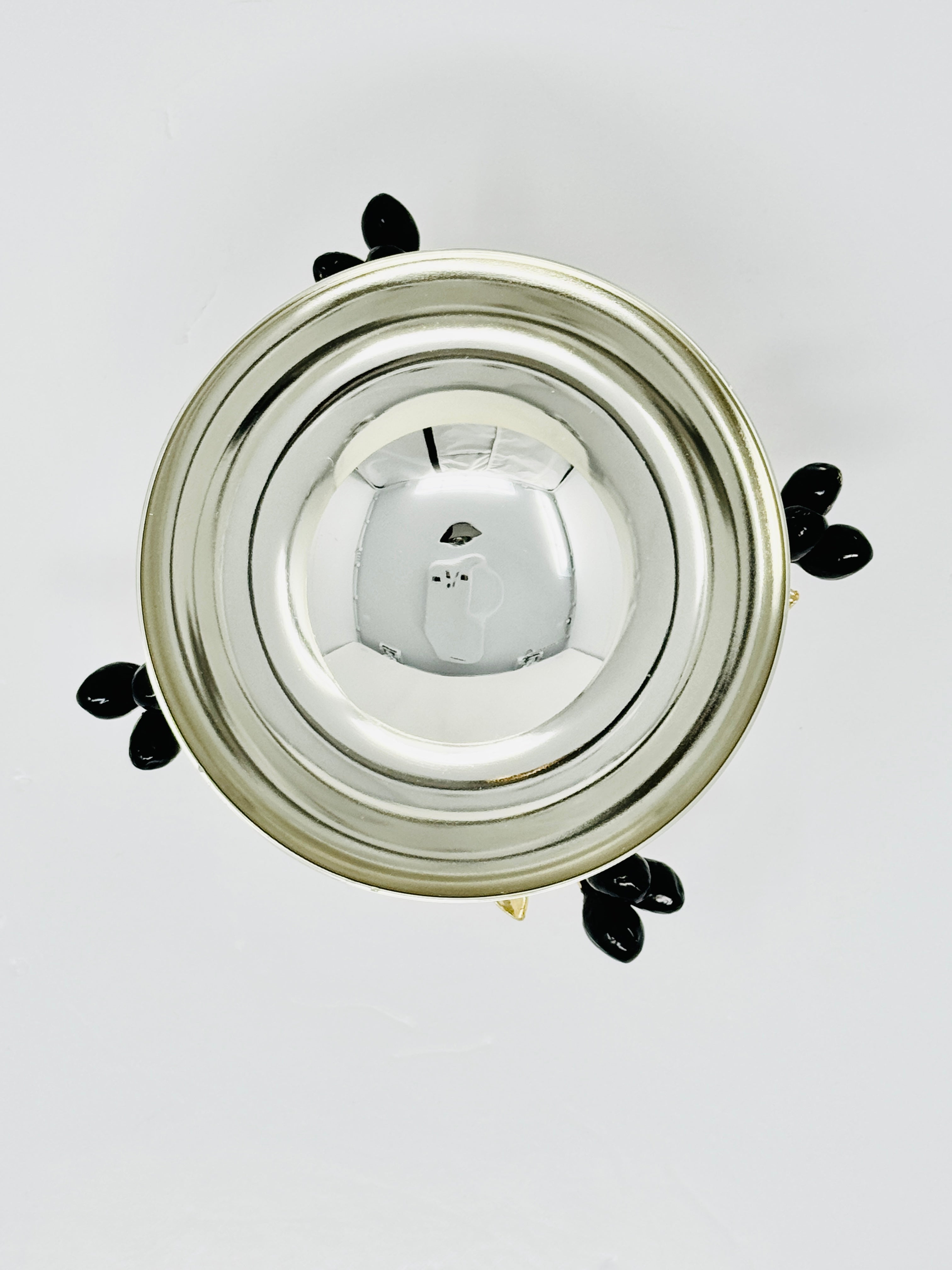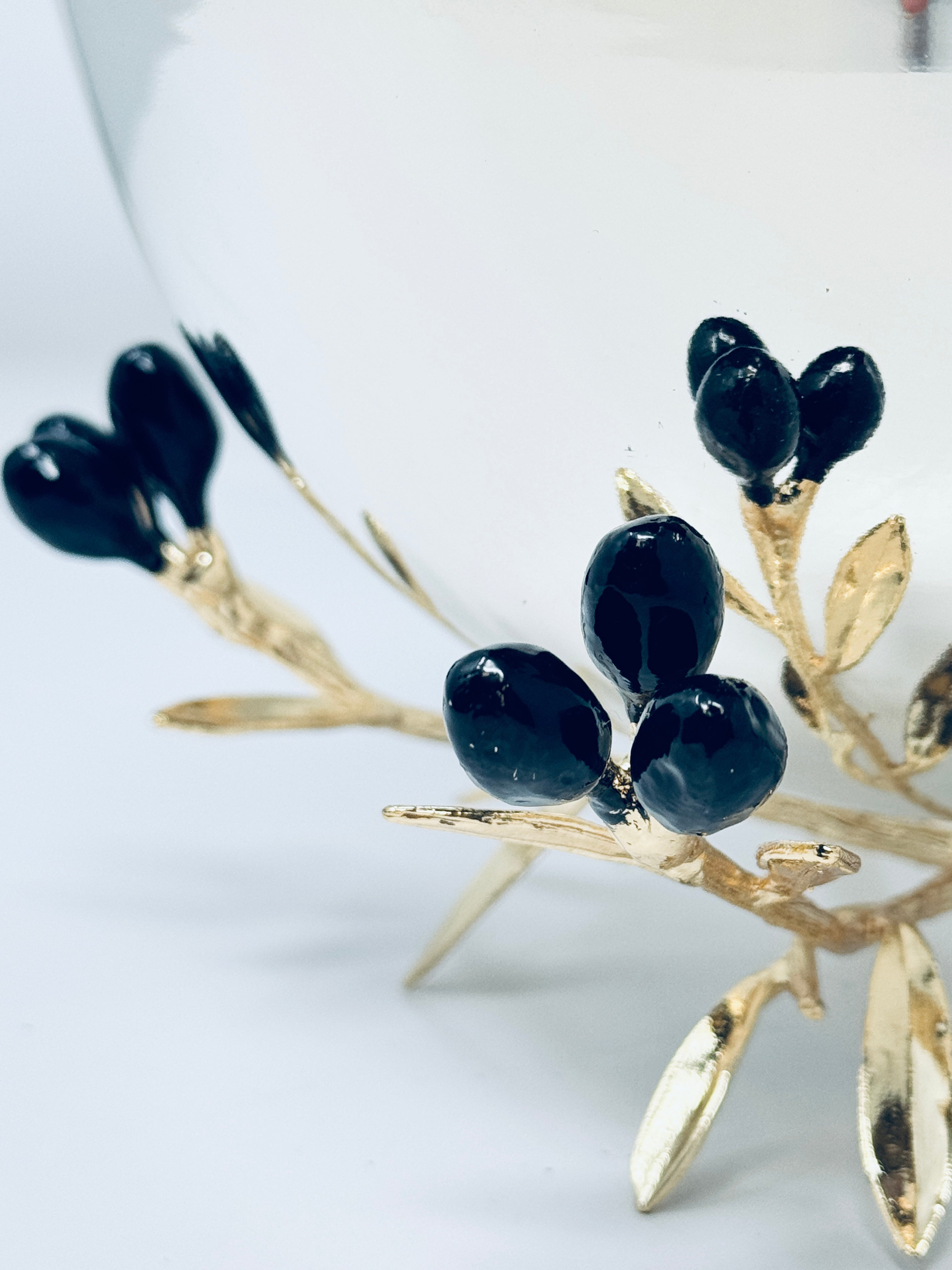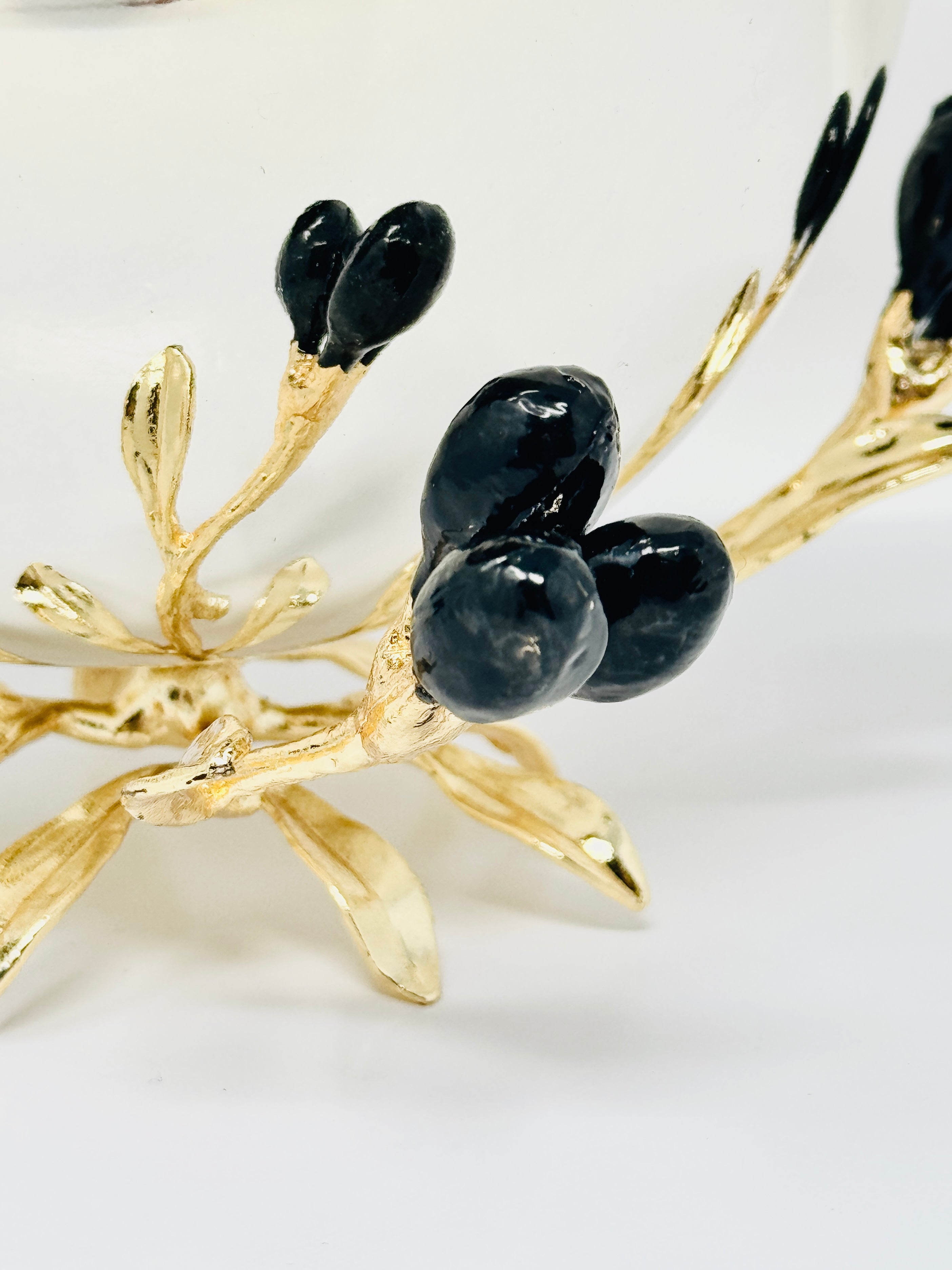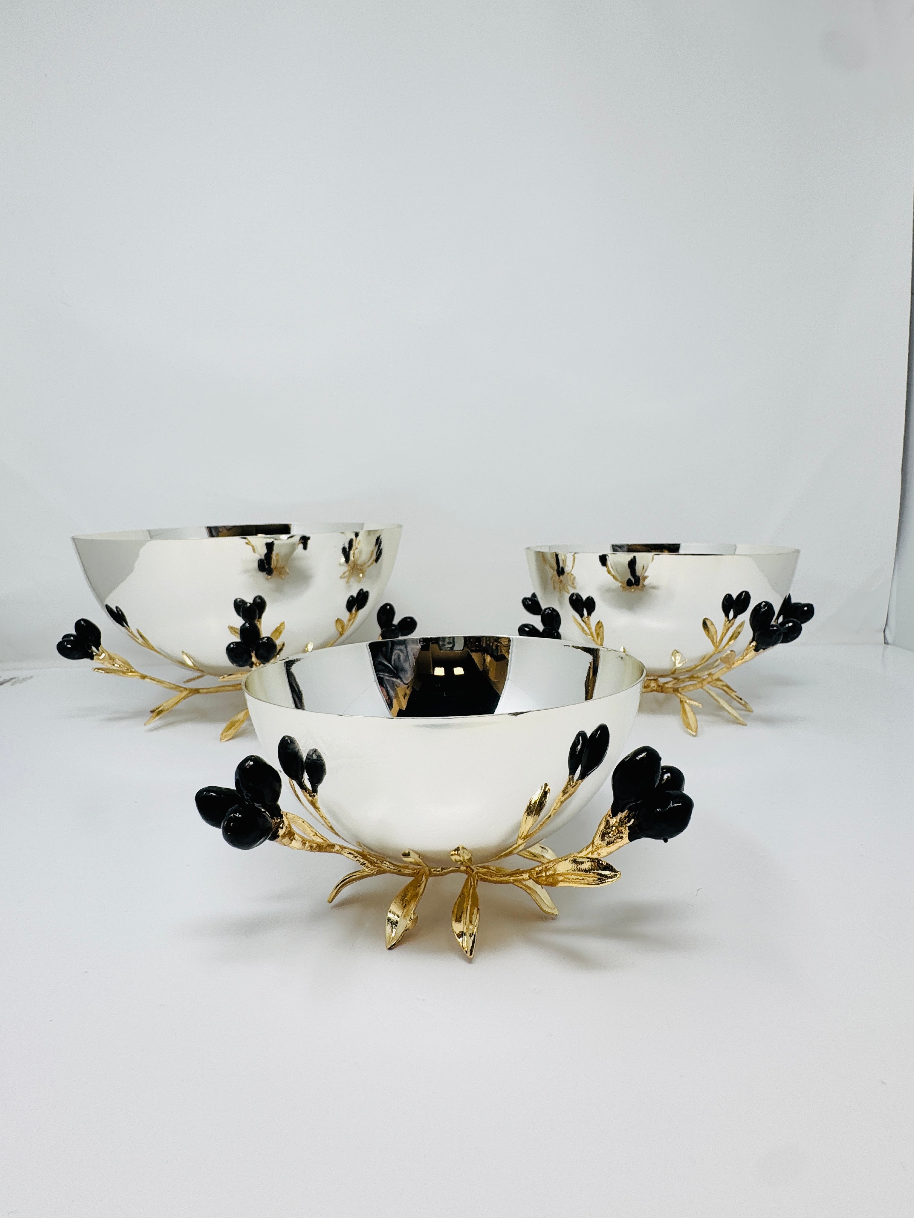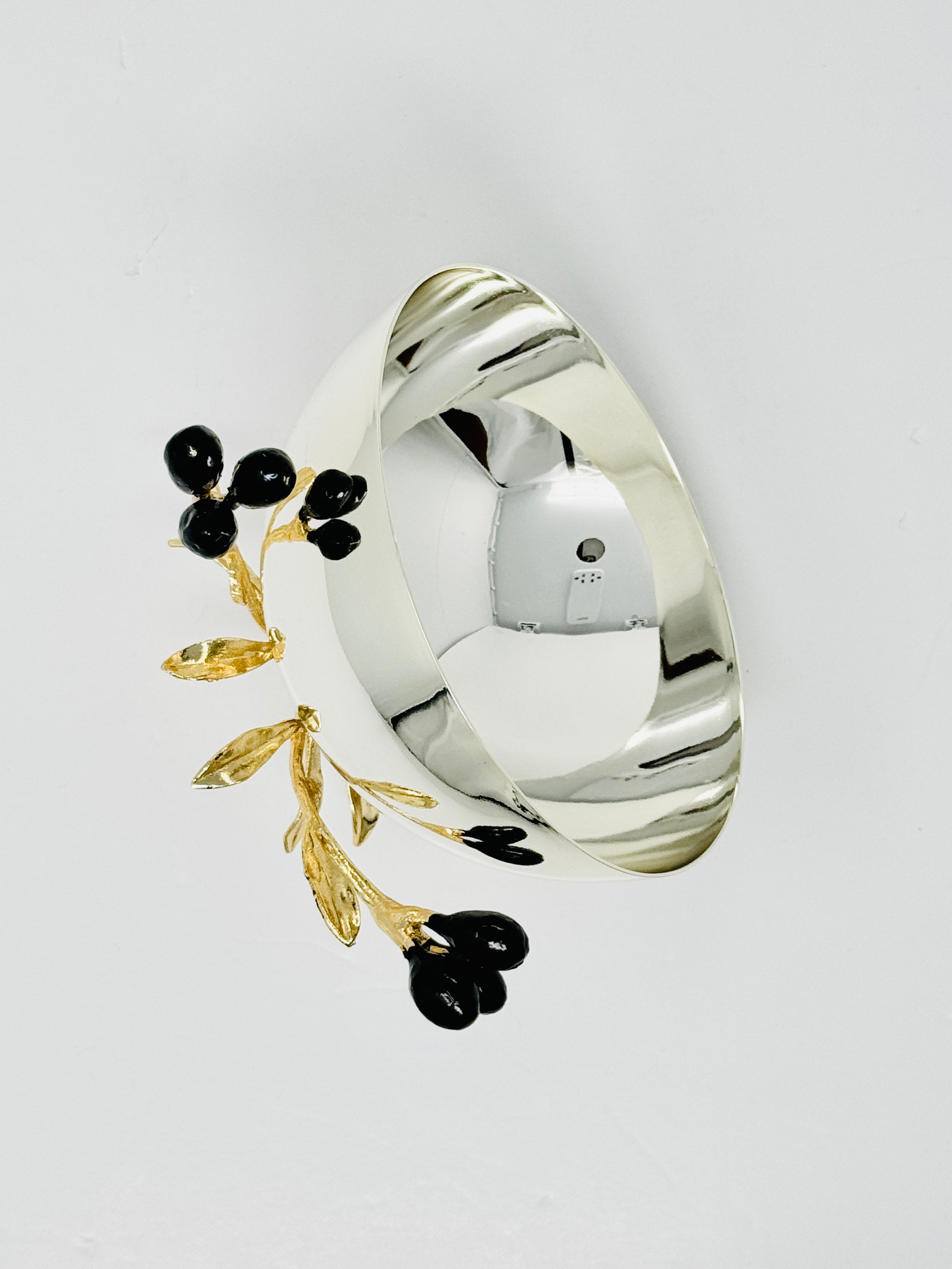This Serving Bowl on olive leaf stand is a stunning piece that effortlessly blends classic elegance with modern design. Its intricate olive leaf accents and lustrous silver finish make it a captivating addition to any tabletop.