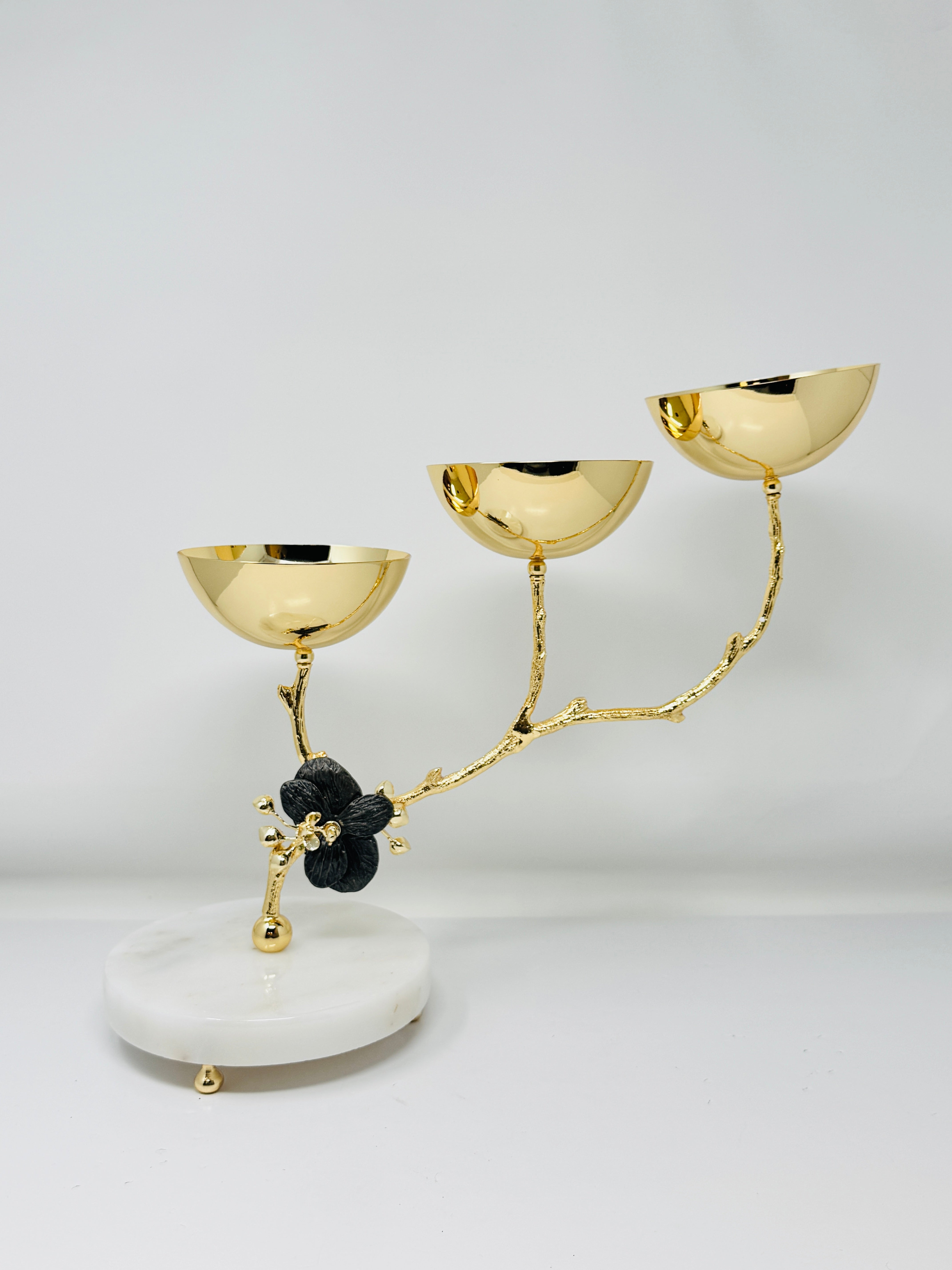 THREE SECTION GOLD TONE SNACK BOWL, ORCHID COLLECTION